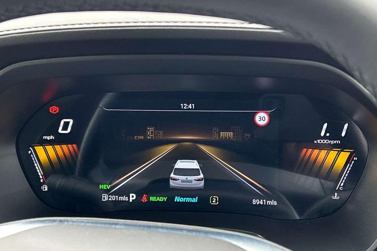 'Lights On' Reminder warning buzzer, 12.3" colour touchscreen, 3 driving modes Normal, Eco, Sport, 3 Energy regeneration modes (1, 2, 3), 360 degree camera with rear sensor, 7" Driver display, Adaptive cruise control, Android Auto, Apple CarPlay, Blind zone detection with lane change assist, Bluetooth connectivity, eCall emergency call system, Forward collision warning, Intelligent speed limit assist, iSmartphone connectivity, Lane keep assist with lane departure warning system, PAS, Rear cross traffic alert, Rear parking sensors, Satellite navigation with speed limit recognition, Traffic jam assist, Trip computer, Unsteady driving warning, 1x USB port at rear (power only) type A, 2x USB ports at Front (1x data and power type A, x1 power only type C) and 1x rearview mirror USB power only - type A, 6 speaker audio system, DAB audio, Radio/MP3 player, USB/aux input socket, Auto headlights, Body colour bumpers, Body colour door handles, Body colour electric adjustable folding heated door mirrors, Chrome side window trim, Follow me home headlights, Front and rear aero wiper, Front and rear electric windows with driver's one-touch up/down, Heated rear window, Intelligent headlamp control, LED centre brake light, LED daytime running lights, LED projector headlights, LED rear lights, Rain sensing wipers, Rear privacy glass, Rear side wing doors, Rear spoiler, Rear wiper, Silver roof rails, 12V power sockets, 2nd row 60/40 split/fold, 3 rear headrests, 3 seat bench in 2nd row, 4 way manually adjustable passenger seat, 6 way electric adjustable drivers seat, Adjustable dual height boot floor, Adjustable rear headrests, Automatic air conditioning, Boot light, Driver's footrest, Front centre armrest with storage, Front cupholders, Front grab handles, Front headrests, Front interior courtesy light with time delay and reading lights, Front reading lights, Front seat back map pockets, Front sun visors with driver and passenger mirrors, Glovebox, Heated front seats, Heated steering wheel, Illuminated switches and controls, Internal chrome door handles, Leather style upholstery, Manual lumbar support on driver seat, Multifunctional steering wheel, Rear grab handle, Single front passenger seat, Tilt adjustable steering column, 3x3 point rear seatbelts, ABS/EBD, Active emergency braking with pedestrian/Bicycle detection, Anti rolling protection, Automatic unlocking of doors in case of impact, Dual front airbags, EBA, Electric parking brake with auto hold function, ESP, Front passenger airbag deactivation switch, Front seatbelts (3-point + pretensioner + load limiter), Front side airbags, Fuel cut off safety device, Hill start assist, Rear door child safety locks, Rear isofix x2, Rear passenger seatbelt alert, Seatbelt reminder for driver and front passenger, Side curtain airbags, Tyre pressure monitoring system, Alarm system and engine immobiliser, Automatic latching door, Keyless entry, Remote Central Locking with Fold-away Key, Speed sensing door locks, 18" Sabre alloy wheels, Tyre repair kit,