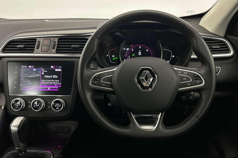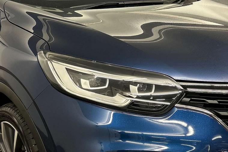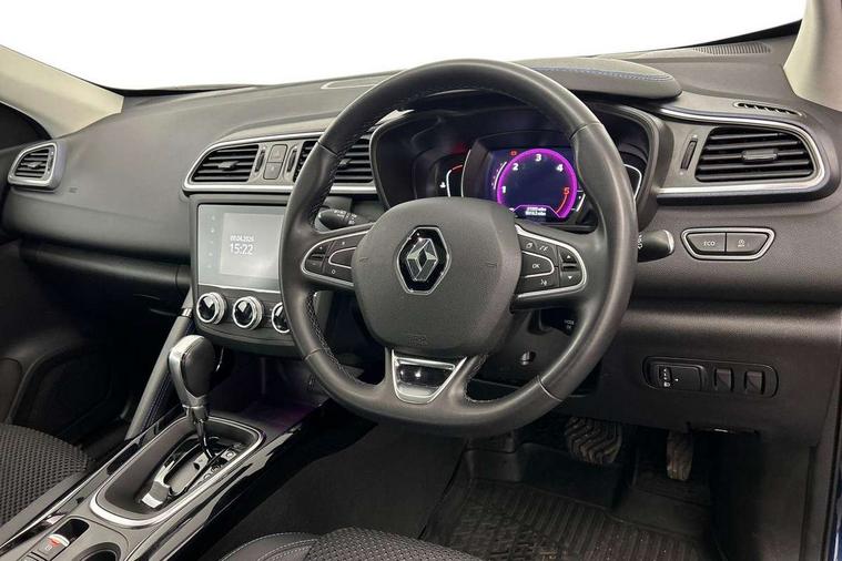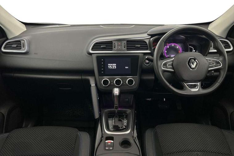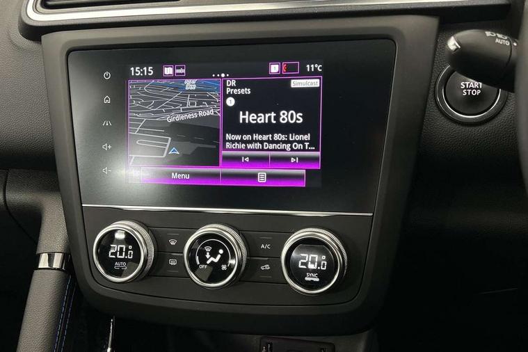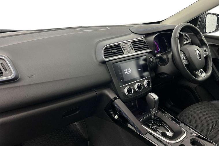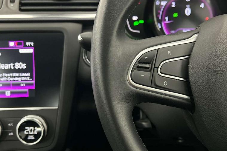 Cruise control + speed limiter, Digital speedometer with 7 TFT screen, Door/boot open warning light, Eco mode, Exterior temperature indicator, Front and rear parking sensors with rear parking camera, Gear change indicator, Lane departure warning system, Low fuel level warning light, Multi function trip computer, Oil level gauge, PAS, R-Link 2 Multimedia system + 7" touchscreen, TomTom + West European Map, DAB/FM/AM radio, bluetooth + hands free, USB/AUX, voice control, Rev counter, Smartphone integration, Diesel particulate filter, 4x35W speakers with 3D sound, Fingertip controls for audio system, Two rear USB sockets, Auto dimming rear view mirror, Automatic headlights, Automatic high/low beam, Automatic windscreen wipers with variable speed adjustment, Body colour door handles, Body coloured bumpers, Body coloured door mirrors, Bodyside mouldings with chrome inserts, Chrome fog light surround, Chrome roof rails, Chrome window surround, Electric adjustable/heated/folding door mirrors, Extra tinted glass in rear windows and tailgate, Fixed panoramic glass sunroof, Front and rear electric windows, Front and rear towing rings, Heated rear windscreen, Integrated C shape indicators with side repeaters, Integrated fuel filler cap, LED daytime running lights, LED front fog lamps with cornering function, LED high and low beam headlights with LED turn indicators, Rear wiper, Saturn grey front and rear skid plates, Shark fin antenna, Side and boot kick plates, 12V socket in front, 3 height adjustable rear headrests, 3 seat rear bench, 3D TEP fabric with synthetic leather upholstery with blue top stitching, 60/40 split folding rear seat, Accessory power point, Adjustable dashboard illumination, Air recirculation system, Centre rear armrest with cup holder, Driver sunblind with illuminated mirror and ticket holder, Driver's seat with lumbar adjustment, Driver/passenger reading lights, Dual zone automatic climate control, Easy life quick folding rear seat, Front courtesy lights, Front footwell illumination, Front/rear floor mats, Height adjustable driver's seat, Height adjustable front headrests, Height adjustable passenger seat, Height/reach adjust steering wheel, Illuminated boot, Illuminated centre console, ISOFIX child seat anchorage points attached on outer rear seats, Multi positional boot floor, Pollen filter, Rear courtesy lights, Rear passenger air vents, Sliding front centre armrest, Storage glovebox, Synthetic leather steering wheel, ABS/EBD, Driver/passenger 2 stage auto adaptive airbags, Electronic parking brake, Emergency brake assist, ESP with ASR and UCL (understeer control logical), Front and rear curtain airbags, Front lateral airbags, Front seat belts warning, Height adjustable front seatbelts with double pretensioners, Hill start assist, Manual passenger airbag deactivation function, Rear seatbelt warning indicator, Side impact protection, Three point rear center seatbelt, Traction control, Tyre pressure monitor, 3 Button retractable key, Anti-drill door locks/ignition barrel, Deadlocks, Insurance approved Cat 1 alarm system, Insurance Approved Immobiliser, Key card hands free with walk away lock function, RAID (Renault Anti-Intruder Device) with automatic door locking, Remote central locking, 19'' Zeus diamond cut alloy wheels,