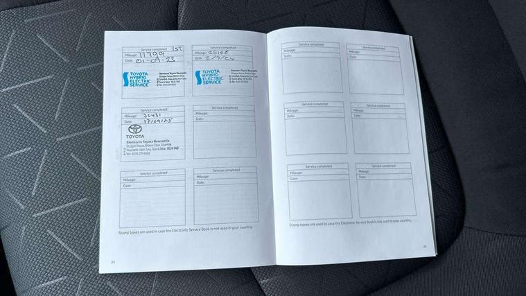 7" TFT multi information display, Analog tachometer, Apple car play and Android auto, Bluetooth system, Cyclist Detection, Drive mode selector, eCall emergency call system, ECO-driving indicator, Electric power steering, EV audible alert, Full range intelligent adaptive cruise control, Hybrid system indicator, Lane departure warning system, Lane trace assist, Lights on warning, Memory on adjustable speed limiter, MirrorLink, My T Connected services, Night Time Pedestrian Detection, Push button start, Rear parking camera, Rear parking sensors, Remote boot door release in key, Road sign assist - RSA, Traffic sign recognition, Trip computer, Vehicle Stability Control (VSC), 6 speakers, 8" Multimedia display touch screen, Auxiliary socket for external MP3 player, DAB audio, Toyota touch media system, USB connection, Adaptive automatic high beam, Automatic headlamp levelling, Automatic headlights, Automatic wipers, Automatically retractable door mirrors, Black roof rails, Body colour door handles, Body colour door mirrors, Body colour rear spoiler, Body colour roof, Body coloured bumpers, Body coloured Shark-fin antenna, Dual exhaust pipes, Electric adjustable door mirrors, Electrochromatic rear view mirror, Emergency brake-light signal (EBS), Follow me home headlights, Front fog lights, Front wipers with variable intermittent facility, Heated door mirrors, LED daytime running lights, LED High mounted stop lamp, LED rear combination lights, LED rear lights, Meshed shape upper front grille, Parabola LED headlights, Power front windows, Power rear windows, Privacy glass, Rear screen wiper - intermittent, Rear side wing doors, Rear windscreen defogger, Rear wing door, Silver front under-run, Silver rear under-run, Trailer sway control, Turning signal integrated indicators in door mirrors, 12 volt front socket, 3 rear headrests, 3 seat bench in 2nd row, 60/40 split fold rear seat back, Boot light, Clean air filter, Cloth upholstery, Driver and front passenger personal light, Driver and front passenger Whiplash Injury Lessening seats, Driver and passenger sunvisors with illuminated vanity mirrors, Dual sided deck board in boot, Dual zone automatic air conditioning, Floor mats, Folding rear centre armrest, Front and rear bottle holders, Front centre armrest, Front footwell lights, Front headrests, Front passenger seat, Front/rear roof mounted assist grips, Grey roof lining, Illuminated entry system, Isofix child seat preparation, Leather gear shift with chrome surround, Luggage area tonneau cover, Manual telescopic and tilt 3-spoke leather steering wheel with Chrome insert, Manually height-adjustable sliding and reclining driver seat, Manually reclining and sliding front passenger seat, Multimedia switches on steering wheel, Pollen filter, Rear coat hooks, Rear door armrests, Rear passenger air vents, Rear view display in display audio screen with dynamic guide lines, Reclining rear seats, Satin chrome interior door handles, Sunglasses holder, 3x3 point rear seatbelts, ABS/EBD, Acoustic vehicle alerting system, Adjustable front driver and passenger seat belt extender, Brake assist function, Brake hold function, Child proof door locks, Collision mitigation braking system, Driver/Front Passenger airbags, Driver/front passenger side airbags, Drivers knee airbag, Electronic parking brake, Electronic Stability Programme (ESP), Front and rear curtain airbags, Front and rear seatbelt reminder, Front passenger airbag detector, Hill start assist, Passenger airbag cut-off device, Pedestrian detection, Pre collision system, Seatbelt pretensioners with load limiters, Toyota safety sense, Traction control, Tyre pressure warning, Glass-breaking alarm sensors, Immobiliser, Intrusion alarm, Light - on and Key in reminder, Motion sensor alarm, Remote central locking, Speed sensitive auto door locking, Tilt detection sensors, Piano black centre console with silver insert, Soft-touch black lower dashboard, Soft-touch black upper dashboard with silver insert, 17" 5-spoke silver alloy wheels, Full size spare wheel,