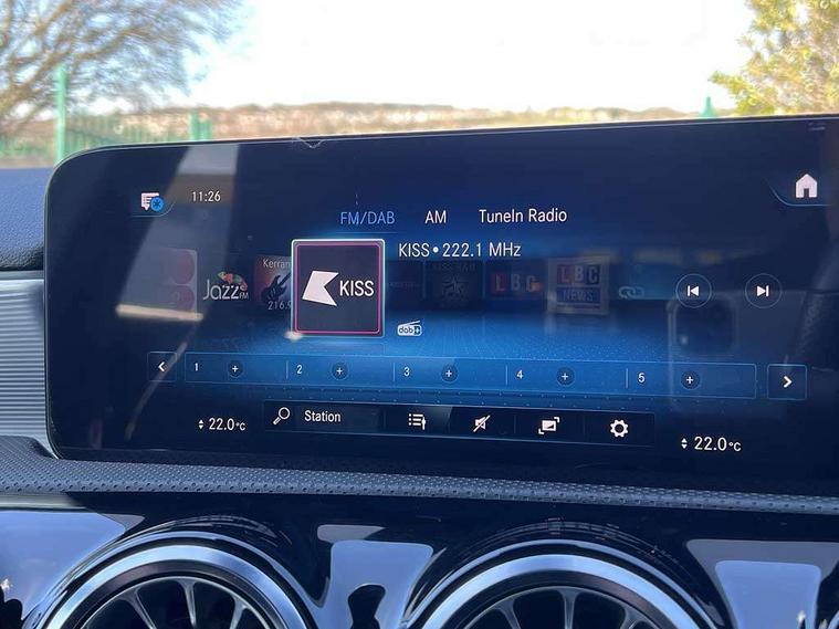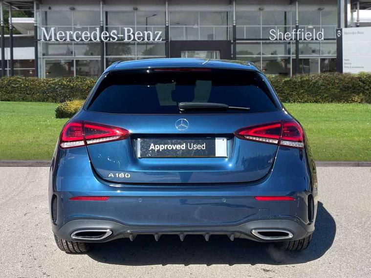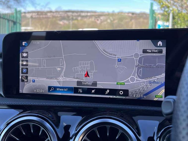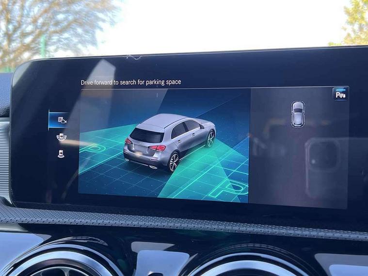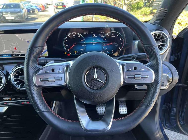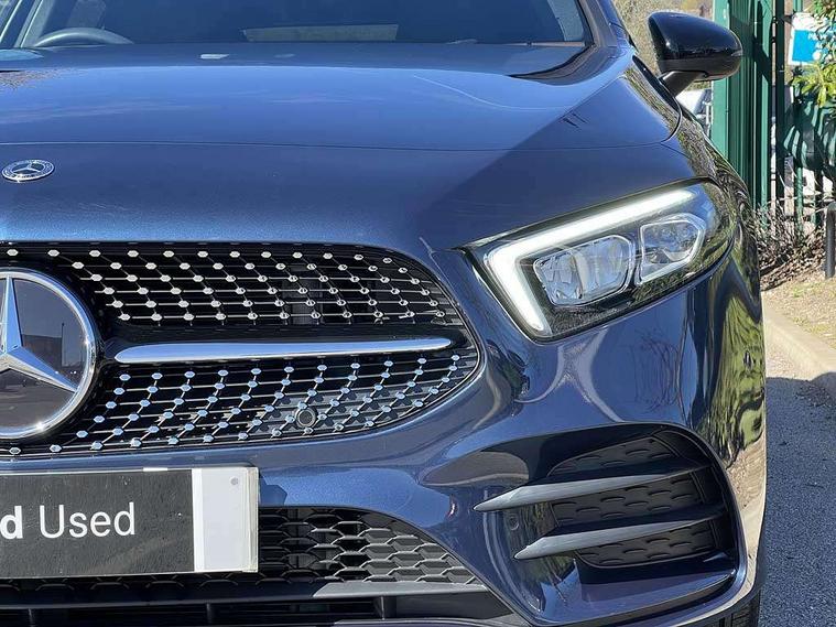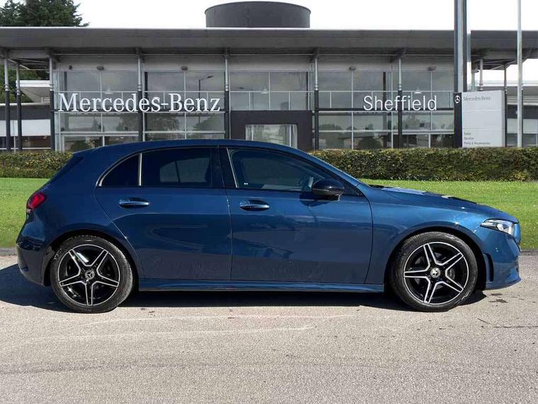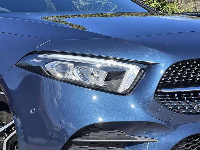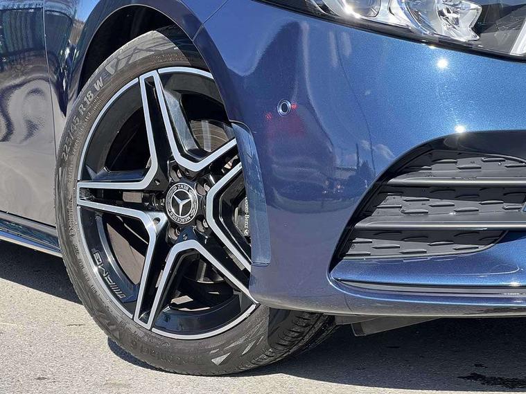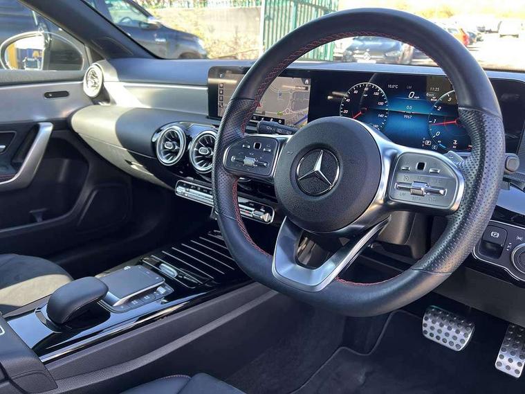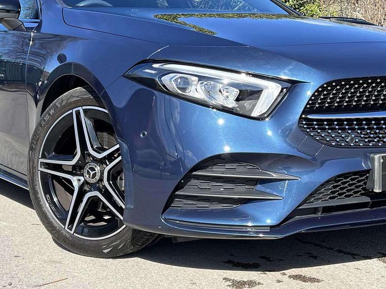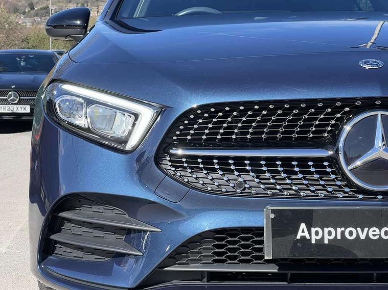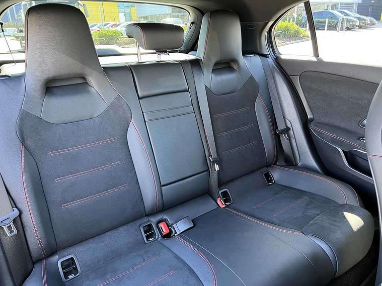 10.25" Digital instrument cluster display screen, 10.25" media display, 180 degree rear view camera with parking guidelines, Active parking assist with visual and audible warning of detected obstacles, Attention assist, Brake pad wear indicator warning light, Car wash mode, Cruise control + speed limiter, Direct steering, Dual bluetooth interfaces, DYNAMIC SELECT with a choice of driving modes (ECO, Comfort, Sport and Individual), ECO start/stop function, Fluid level warning indicator for fuel, oil, coolant and washer fluid, Hard-disk navigation, Hey Mercedes Voice activation, Lamp failure indicator, Lane keeping system, Mercedes me connect including emergency call system, accident recovery, breakdown and maintenance management, Mercedes me remote services, Outside temperature gauge, Owners manual in English, Pre-installation for private car sharing, Preinstallation for Mercedes Benz link, Service indicator (ASSYST), Smartphone integration with Apple CarPlay and Android auto, Speed limit assist, Speed sensitive power steering, Trip computer, Ultrasonic sensors positioned in the front and rear bumpers, Lowered comfort suspension, Rear axle torsion beam, 2 USB ports (type C) in rear stowage compartment and one in front of center console, 6 speakers, DAB Digital radio, MBUX multimedia system with DAB digital radio and touchpad including satellite navigation, Mercedes-Benz sound system - 100W, 4 Electric Front and Rear windows, Adaptive brake lights, AMG bodystyling - Front apron with splitter in chrome, rear apron with chrome trim and chrome visible trim elements in tailpipe, Automatic headlights, Black weather strip, Body colour bumpers, Body colour door handles with chrome inserts, Body colour side skirt, Electric adjustable and heated door mirrors with integrated LED side indicators, Exclusive diamond radiator grille, Exhaust system - Twin visible tailpipes in polished stainless steel, Headlamp assist automatic headlamp activation, Heated glass rear windscreen + timer control, LED High level third brake light, LED high performance headlamps with integrated LED daytime running lights, LED tail lamp, Privacy glass, Radio aerial, Rain sensing windscreen wipers with two sensitivity settings, Rear fog lights, Rear side wing doors, Rear wiper, 3 seat bench in 2nd row, 3 Spoke flat bottom leather multi function steering wheel with perforated leather in grip area, 40:20:40 split folding rear seats, Artico man-made leather/Microfibre Dinamica upholstery with red contrast stitching, Auto Mercedes-Benz child seat recognition sensor, Black air vents with surround in silver chrome, Black roof lining, Brushed stainless steel sports pedals with rubber studs, Controller on centre console with chrome surround, Floor mats with AMG lettering, Front centre armrest with storage compartment, Front seat backs luggage nets, Galvanished gear shift paddles on steering wheel, Heated front seats, Height/reach adjustable steering column, Illuminated Mercedes Benz lettering front door sills with changeable cover, Interior lighting - 64 colour Ambient lighting, Interior mirror with reading lamps in black and frameless, Manual height adjustable front seats, Rear armrest with 2 cupholders, Rear head restraints, Seat occupancy sensor for front passenger seat, Single front passenger seat, Sports seats with integrated headrests, Stowage compartment in centre console with retractable cover, Sunvisors with illuminated vanity mirrors, Touchpad on center console, Twin front cupholders, Two zone thermotronic luxury automatic climate control, Light and sight pack - A Class, Mirror package - A Class, Night pack - A Class Saloon/Hatchback, Seat comfort pack - A Class, 3 rear 3 point seatbelts, ABS with Brake Assist, Active bonnet, Active brake assist includes forward collision warning system with autonomous braking, Adaptive brake assist with hold function and hill start assist, Childproof locks manually operated for rear doors and electrically operated for rear power windows, Crash responsive emergency lighting, Driver and passenger head and side airbags, Drivers knee airbag, Dual stage driver/passenger airbags, Electronic parking brake, ESP curve dynamic assist, ESP with ASR, Front and rear seatbelt reminder, Front brake callipers with Mercedes Benz lettering, ISOFIX and top tether child seat fixing points in two outer rear seats, Tyre pressure monitoring system, Warning triangle and first aid kit, Window airbags, Alarm system/interior protection/immobiliser, Keyless entry lock/unlock, Keyless Go, Remote central locking and crash sensor with emergency opening function, Urban guard vehicle protection system with immobiliser and interior protection, Black seatbelts, Matrix look light longitudinal grain aluminium trim element, 18" AMG 5 twin spoke light alloy wheels aerodynamically optimised painted in black with highsheen finish, Summer tyres, Tirefit sealant kit,