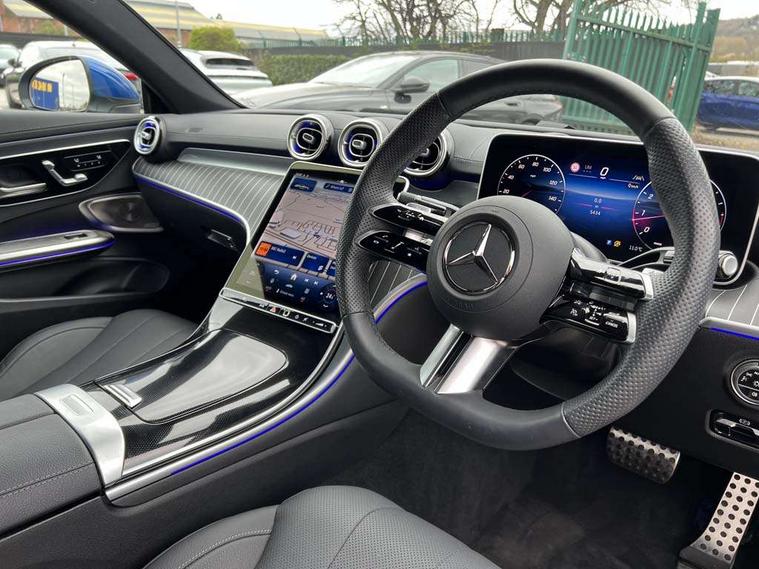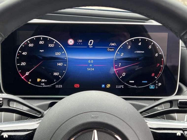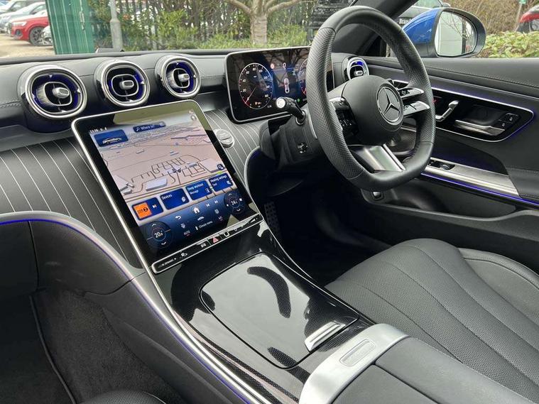 5G Communications module, Active lane keeping assist, Bluetooth connection, Car wash mode, DYNAMIC SELECT with a choice of driving modes (ECO, Comfort, Sport, Sport+ and Individual), eCall emergency call system, Fingerprint scanner, Fluorescent jacket for driver, Fully digital 12.3" driver display screen, Hard-disk navigation, Head up Display, Hey Mercedes Voice activation, MBUX augmented reality for navigation, MBUX navigation premium, PAS, Passive person presence reminder, Portrait format 11.9" touchscreen central display with driver orientation, Smartphone integration with Apple CarPlay and Android auto, Traffic sign assist, Wireless charging system for mobile devices in the front, 66 litre fuel tank, 9G TRONIC plus automatic transmission, Agility control sports suspension lowered by 15 mm, Integrated starter generator Gen 2, Sporty engine sound system, Burmester 3D surround sound system with sound personalisation, Digital radio, MBUX extended functions, MBUX multimedia system, AMG bodystyling, AMG Line exterior, Auto headlights, Electric windows, Heat insulating dark tinted glass, LED 3rd brake light, LED Day time running light, LED digital light with adaptive highbeam assist plus, Panoramic sliding sunroof, Rain sensor windscreen wipers, Rear boot, Variable front intermittent wipers, 2 individual rear seats, 2 rear head restraints, Ambient lighting premium, Ambient lighting with projection of brand logo, AMG floor mats, AMG line interior, Belt feeder, Black fabric roof liner, Climatised massage multicontour front seats, Folding rear seat backrests, Front headrests, Heated front seats, Heated steering wheel, Illuminated door sill panels with Mercedes Benz lettering, Instrument panel and beltlines in ARTICO manmade leather in nappa look, Leather upholstery, Multifunction sports steering wheel in nappa leather, Power height and reach adjustable steering column, Single front passenger seat, THERMATIC automatic climate control, Interior light pack - CLE, Keyless-Go comfort package - CLE, Memory seat pack - CLE, Mirror pack - CLE, Parking package with 360 degree camera - CLE, Stowage space package - CLE, USB package plus - CLE, Anti-lock braking system (ABS), Braking system with larger brake discs on the front axle, Centre airbag, Dual front airbags, Electric parking brake, Electronic Stability Programme (ESP), Front and rear seatbelt reminder, Hill start assist, Pedestrian protection, Rear side airbags, Tyre pressure monitoring system, Anti theft alarm system, Guard 360 degree vehicle protection plus, Increased anti-theft protection, Interior monitoring system, Black open-pore aluminium lines wood trim with mixed fabric look metal finish centre console, 20" AMG multi spoke light alloy wheels painted in black with high sheen finish - RVM, Tirefit,