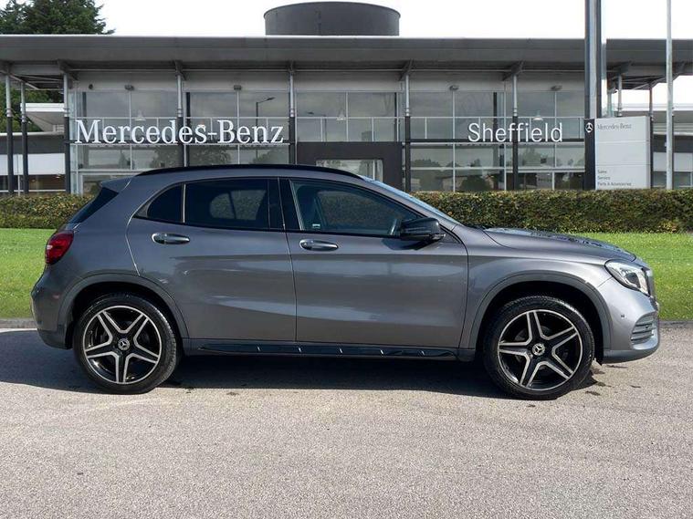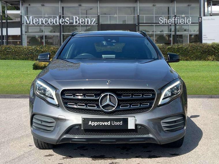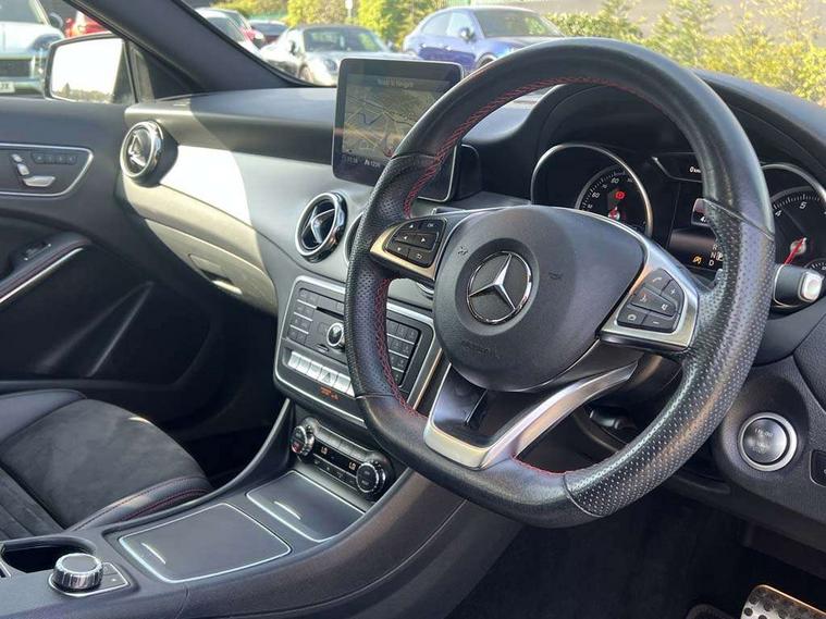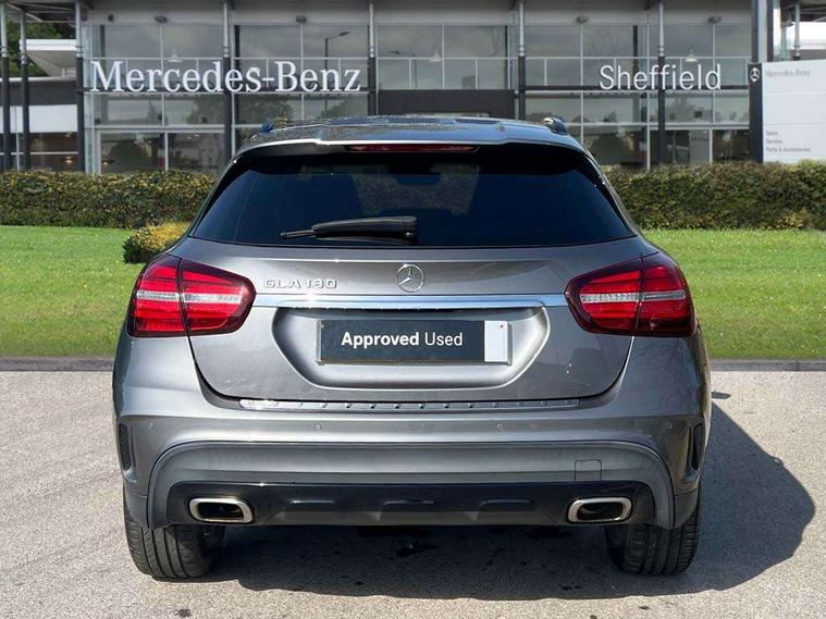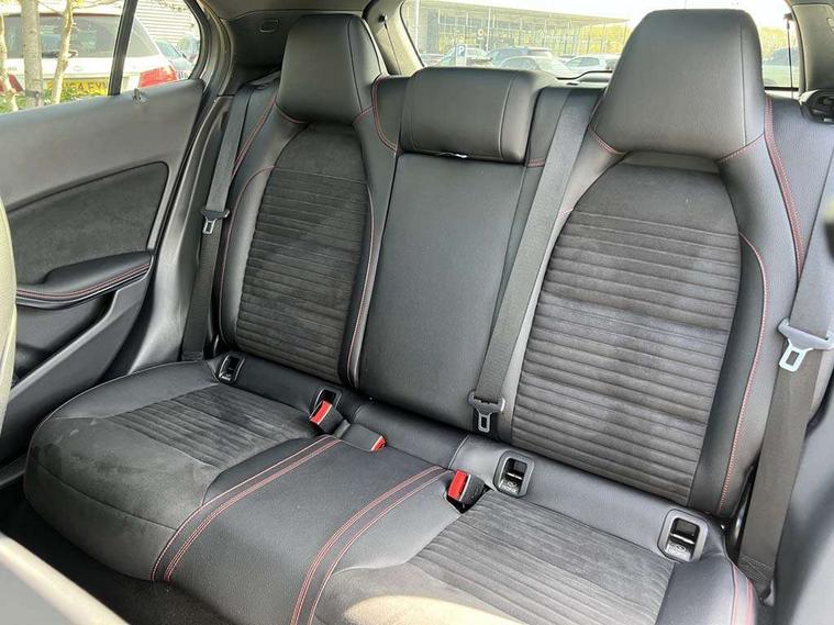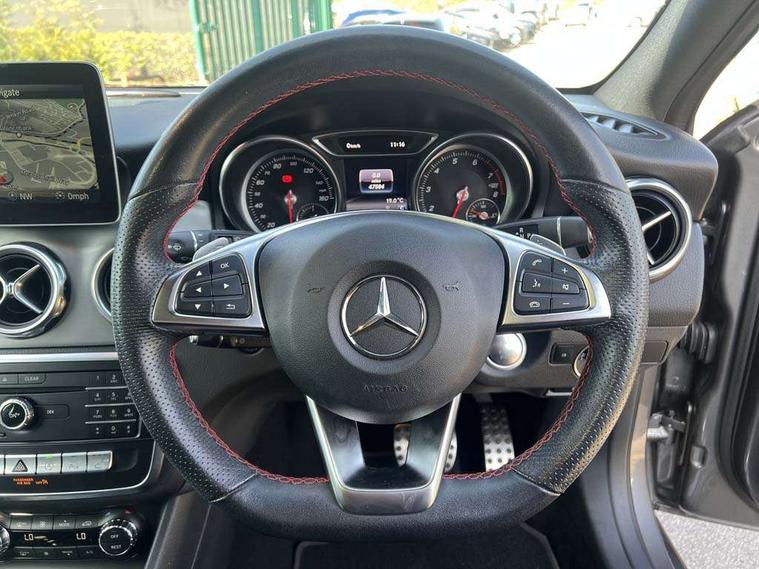 180 degree reversing camera with parking guidelines, 4 analogue dials and needles suspended in six o'clock position, Attention assist, DYNAMIC SELECT with a choice of driving modes (ECO, Comfort, Sport and Individual), Easy-pack tailgate - Powered opening/closing automatically, ECO start/stop function, Fluid level warning indicator for fuel, oil, coolant and washer fluid, Instrument cluster, Mercedes me connect including emergency call system, accident recovery, breakdown and maintenance management, Multi function trip computer, Outside temperature gauge, Parking pilot with front and rear parking sensor and steering assist, Service indicator (ASSYST), Smartphone integration with Apple CarPlay and Android auto, Sports speed sensitive direct steer system with servo assistance, Off road comfort suspension, 8" media display touchpad, Audio 20 radio/single CD/MP3, 6 speakers, telephone keypad, twin radio tuner, Bluetooth, 2 USB ports, SD card slot and Garmin Map pilot nav system, Media interface, Adaptive brake lights, Automatic headlamp activation, Body colour door handles with chrome inserts, Body coloured bumper with front and rear apron trim in matt titanium grey, Chrome beltline strips, Electric front windows, Electrically adjustable and heated door mirrors, Front door sills with Mercedes-Benz lettering, Front fog lights, Full LED tail lamps, Heat insulating dark tinted privacy glass from the B-pillar backwards, Heated glass rear windscreen + timer control, LED High performance headlamps with adaptive highbeam assist, LED third brake light, Panoramic sliding sunroof, Rain sensor windscreen wipers with two sensitivity stages, Rear windscreen intermittent wiper with automatic activation when reversing, Roof mounted radio aerial, Two pipe visible exhaust system with chrome tailpipe tips, 1/3 to 2/3 split folding rear seats, 12 colour Ambient lighting, 12V power socket in centre console, 12V socket in luggage compartment, 3 spoke and 12 button flattened bottom multifunction steering wheel trimmed in nappa leather with perforated leather grip area, Air conditioning - Two zone thermotronic luxury automatic climate control with display, Air vents with chrome surround and cruciform nozzles, Ambient lighting in front headrests, AMG brushed stainless steel sports pedals with rubber studs, AMG floor mats with AMG lettering and stiched edging, Artico man-made leather/Microfibre Dinamica upholstery with red contrast stitching, Auto Mercedes-Benz child seat recognition sensor, Black roof lining, Electrically adjustable front memory seats with four way lumbar support, Front centre armrest with stowage, Front footwell lights, Front seat cushion length adjustment, Gearshift paddles, Heated front seats, Illuminated door sills, Illuminated glove compartment stowage, Interior door handle illumination, Luggage compartment cover, Manually height and reach adjustable steering column, Rear footwell lights, Rear Reading Lamps, Sports seats with integrated head restraints, Stowage compartment beneath load compartment floor, Stowage compartment lighting, Sunvisors with illuminated vanity mirrors, Twin front cup holders, Two outer rear seat isofix and top tether child seat fixing points, White courtesy and red warning lights in front doors and boot lid, Comfort seat pack - GLA Class, Keyless go comfort pack - GLA Class, Mirror pack - GLA Class, 3 rear three point seatbelts, Active bonnet pedestrain safety measure which detects an impact and raises bonnet by 65mm, Active brake assist, Adaptive brake assist with hold function and hill start assist, Anti-lock braking system (ABS), Black seat belts, Childproof locks manually operated for rear doors and electrically operated for rear power windows, Crash responsive emergency lighting, Drivers knee airbag, Dual stage driver and front passenger airbags, Electronic parking brake, Electronic stability programme with acceleration skid control, Front and rear seatbelt reminder, Front passenger seat occupancy sensor, Front side airbags, Tyre pressure monitoring system, Warning triangle and first aid kit, Window airbags, Anti-theft alarm system/interior protection with tow-away protection and interior monitoring systems, Chrome surround in electric key, Remote central locking, Light aluminium with longitudinal grain interior trim, Run flat tyres,