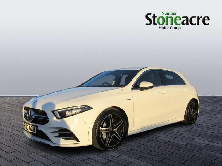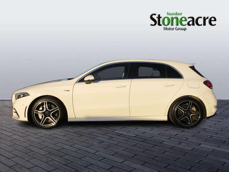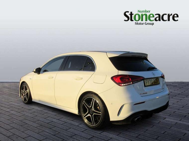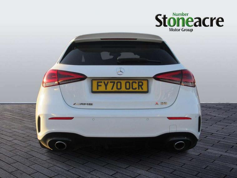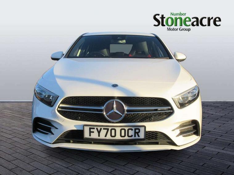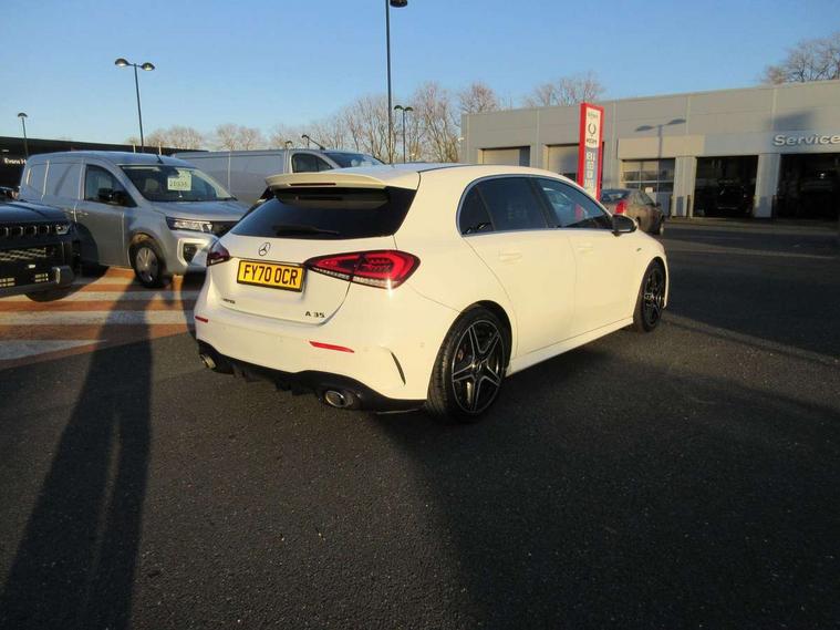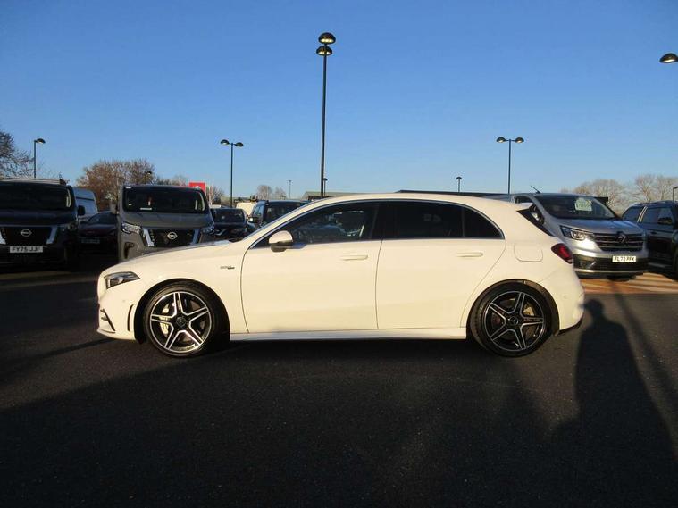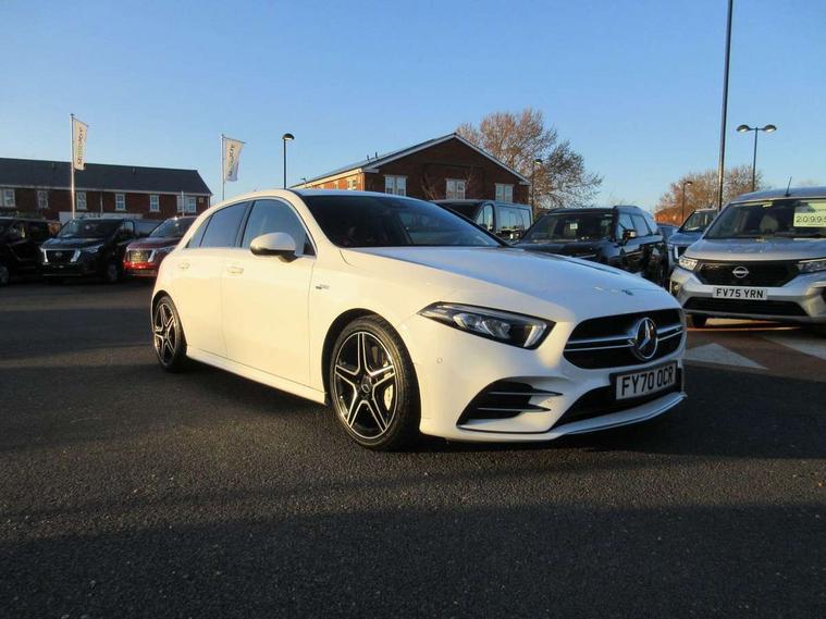 10.25" media display, 180 degree rear view camera with parking guidelines, 7" colour screen in instrument panel, Active lane keep assist, Active park assist with parktronic system including front and rear parking sensors, Attention assist, Brake pad wear indicator warning light, Car wash mode, Cruise control + speed limiter, Direct steering, Dual bluetooth interfaces, DYNAMIC SELECT with driving programs (Slippery, Comfort, Sport, Sport+ and Individual), ECO start/stop function, Fluid level warning indicator for fuel, oil, coolant and washer fluid, Hard-disk navigation, Hey Mercedes Voice activation, Lamp failure indicator, Mercedes me connect including emergency call system, accident recovery, breakdown and maintenance management, Outside temperature gauge, Owners manual in English, Pre-installation for private car sharing, Pre-installation for Vehicle Monitoring, Pre-installation for Vehicle Setup, Preinstallation for Mercedes Benz link, Service indicator (ASSYST), Smartphone integration with Apple CarPlay and Android auto, Speed sensitive power steering, Trip computer, Wireless charging, AMG performance suspension, Rear axle multi-link, 2 USB ports (type C) in rear stowage compartment and one in front of center console, 6 speakers, DAB Digital radio, MBUX multimedia system with DAB digital radio and touchpad including satellite navigation, Mercedes-Benz sound system - 100W, 4 Electric Front and Rear windows, Adaptive brake lights, AMG bodystyling - Front apron with splitter in chrome, rear apron with chrome trim and chrome visible trim elements in tailpipe, AMG Front apron with flics as air deflector elements on the outer air intakes, AMG radiator grille with twin blade lamella and AMG Lettering, AMG Rear apron with specific diffuser look with four vertical fins and two round chrome plated tailpipe trim elements with a diameter of 90 mm, AMG spoiler lip on roof, AMG Sports exhaust system with two round tailpipes measuring 90 mm in diameter attached in rear apron, AMG lettering plus ribbing on the inside of the, Black weather strip, Body colour bumpers, Body colour door handles, Body colour side skirt, Body coloured door mirrors, Chrome beltline trim, Electric adjustable and heated door mirrors with integrated LED side indicators, Front wings wheel arches with TURBO 4MATIC lettering, Headlamp assist automatic headlamp activation, Heated glass rear windscreen + timer control, LED high performance headlamps with integrated LED daytime running lights, LED tail lamp, LED third brake light, Privacy glass, Radio aerial, Rain sensing windscreen wipers with two sensitivity settings, Rear fog lights, Rear wiper, Trim elements on louvres in outer air inlets in silver chrome, Wider wheel arches for AMG wheels, Window line trim strip in chrome, 40:20:40 split folding rear seats, AMG Performance steering wheel in nappa leather, Auto Mercedes-Benz child seat recognition sensor, Black air vents with surround in silver chrome, Black roof lining, Brushed stainless steel sports pedals with rubber studs, Controller on centre console with chrome surround, Floor mats with stitched edging and AMG lettering, Front centre armrest with storage compartment, Front door sills with Mercedes Benz lettering, Front seat backs luggage nets, Front seat cushion length adjustment, Heated front seats, Height/reach adjustable steering column, Interior mirror with reading lamps in black and frameless, Manual height adjustable front seats, Rear head restraints, Seat occupancy sensor for front passenger seat, Silver coloured aluminium gear shift paddles on steering wheel, Sports seats with integrated headrests, Stowage compartment in centre console with retractable cover, Sunvisors with illuminated vanity mirrors, Touchpad on center console, Twin front cupholders, Two zone thermotronic luxury automatic climate control, Light and sight pack - A Class, Mirror package - A Class, Seat comfort pack - A Class, 3 rear 3 point seatbelts, ABS with Brake Assist, Active bonnet, Active brake assist includes forward collision warning system with autonomous braking, Adaptive brake assist with hold function and hill start assist, Childproof locks manually operated for rear doors and electrically operated for rear power windows, Crash responsive emergency lighting, Driver and passenger head and side airbags, Drivers knee airbag, Dual stage driver/passenger airbags, Electronic parking brake, ESP curve dynamic assist, ESP with ASR, Front and rear seatbelt reminder, Front brake calipers with AMG lettering, ISOFIX and top tether child seat fixing points in two outer rear seats, Perforated front brake discs, Tyre pressure monitoring system, Warning triangle and first aid kit, Window airbags, Alarm system/interior protection/immobiliser, Keyless Go, Remote central locking and crash sensor with emergency opening function, Urban guard vehicle protection system with immobiliser and interior protection, Black seatbelts, Light aluminium with longitudinal grain interior trim, 18" AMG 5 twin spoke design bicolour alloy wheels, Summer tyres, Tirefit sealant kit,