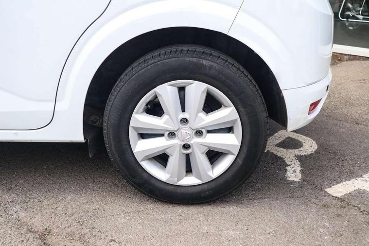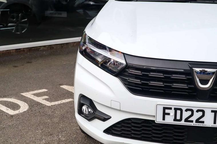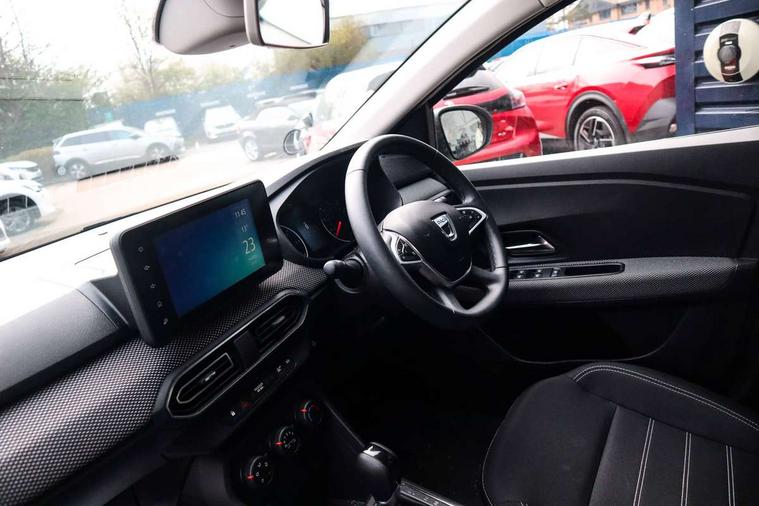 3.5" TFT instrument panel with on-board computer, Cruise control with speed limiter, eCall emergency call system, Eco mode, Electric power assisted steering, Rear parking sensors, Rev counter, Reversing camera, Stop/start system, 8" Media display - DAB radio, smartphone replication, bluetooth, 4 speakers, Apple CarPlay and Android Auto, Pre-wiring for radio and speakers, USB connection for data transfer and charging, USB socket, 3 speed windscreen wipers, Auto lighting, Automatic wipers, Black radiator grille, Body colour door handles, Body colour door mirrors, Body coloured bumpers, Electrically adjustable and heated door mirrors, Front fog lights, Heated rear window, High level third brake light, LED automatic daytime running lights, LED Y shape Dacia signature lighting, One touch electric front windows, Rain sensor, Rear electric windows, Rear side wing doors, Rear wash/wipe, Tinted windows, 1/3 to 2/3 split folding rear seats, 12 volt front socket, 12 volt rear socket, 3 height adjustable rear headrests, 3 seat rear bench, Double satin chrome air vents, Driver + passenger vanity mirrors, Fabric upholstery, Fixed smartphone holder on dashboard, Front armrest, Height adjustable driver seat, Height adjustable front headrests, Height/depth adjustable steering wheel, Isofix points for child seats in both outer rear seats, Manual air conditioning, Satin chrome interior door handles, Single front passenger seat, Soft feel steering wheel, Steering wheel controls, 3x3 point rear seatbelts, ABS and Emergency brake assist, Automatic emergency braking system, Child locks on rear doors, Door open warning, Driver airbag, ESC (Electronic Stability Control), ESP (Electronic Stability Program) + Hill Start Assist, Front curtain airbags, Front seatbelt pretensioners, Front side airbags, Height adjustable front seatbelts, Passenger airbag, Seatbelt reminder for driver and front passenger, Tyre pressure monitor, Automatic central locking, Immobiliser, Keyless entry, Remote central locking, Decopart on instrument panel and door with textile, 15" Flex wheels with full wheel cap,