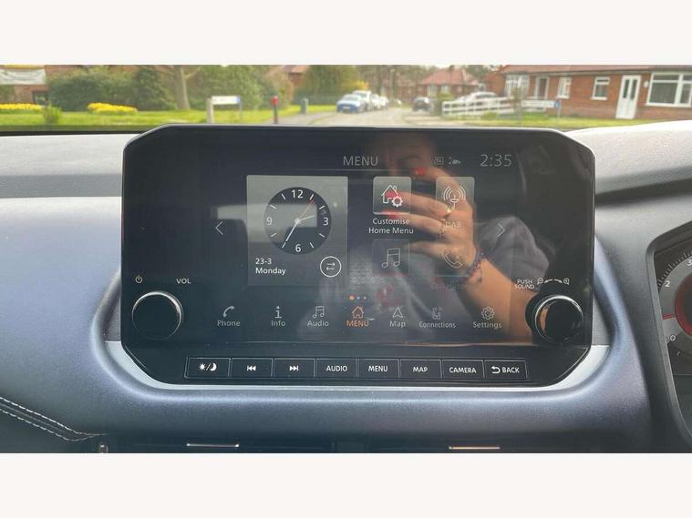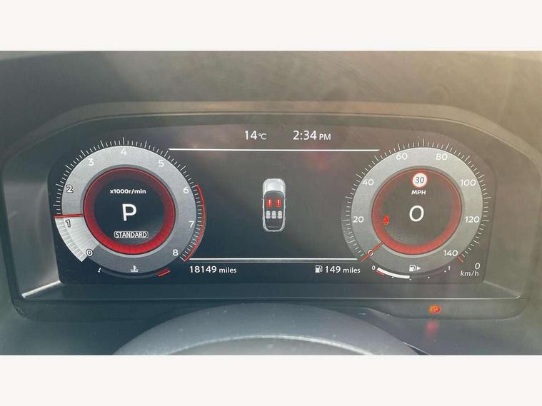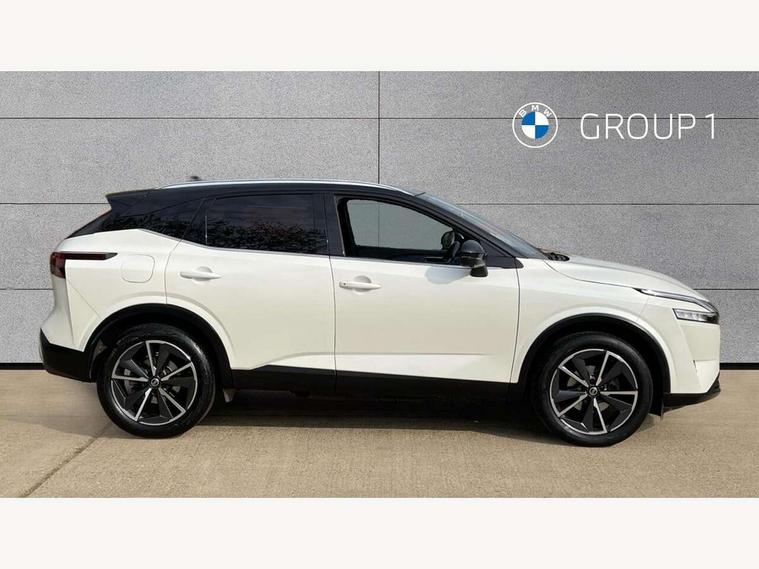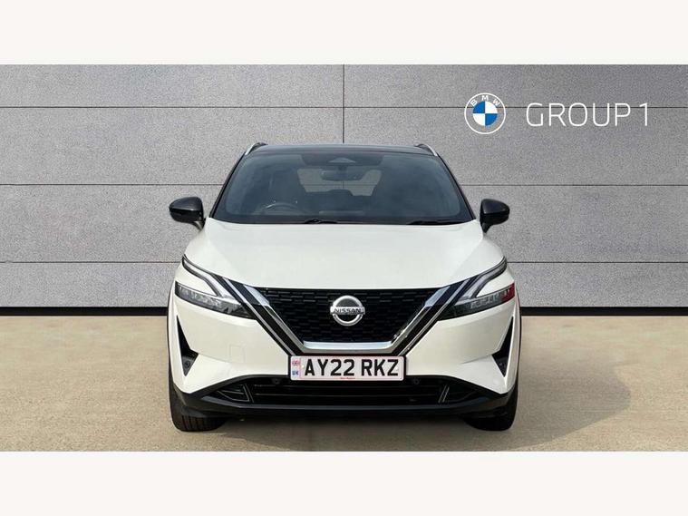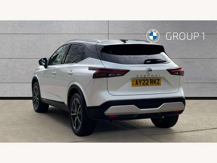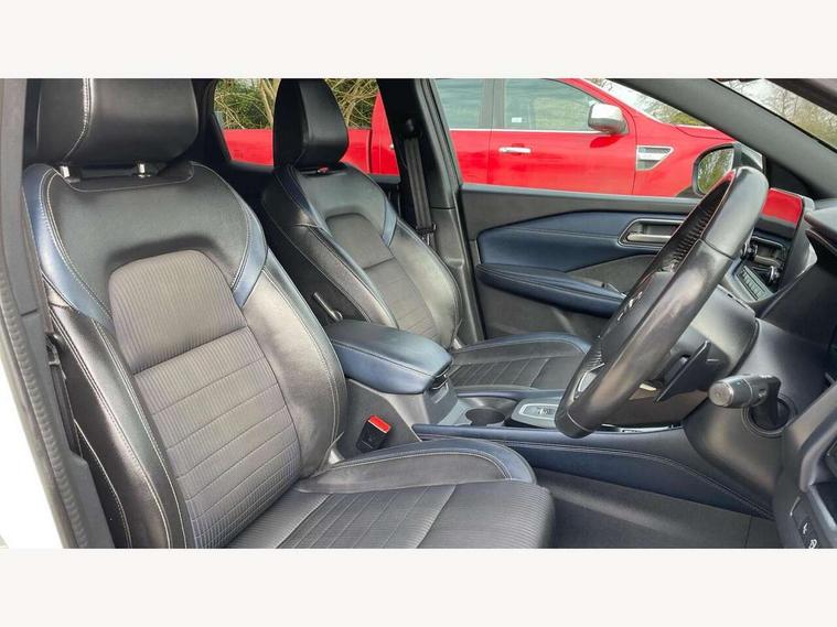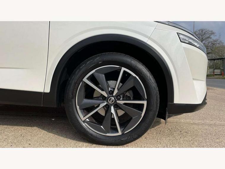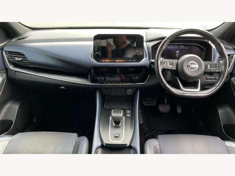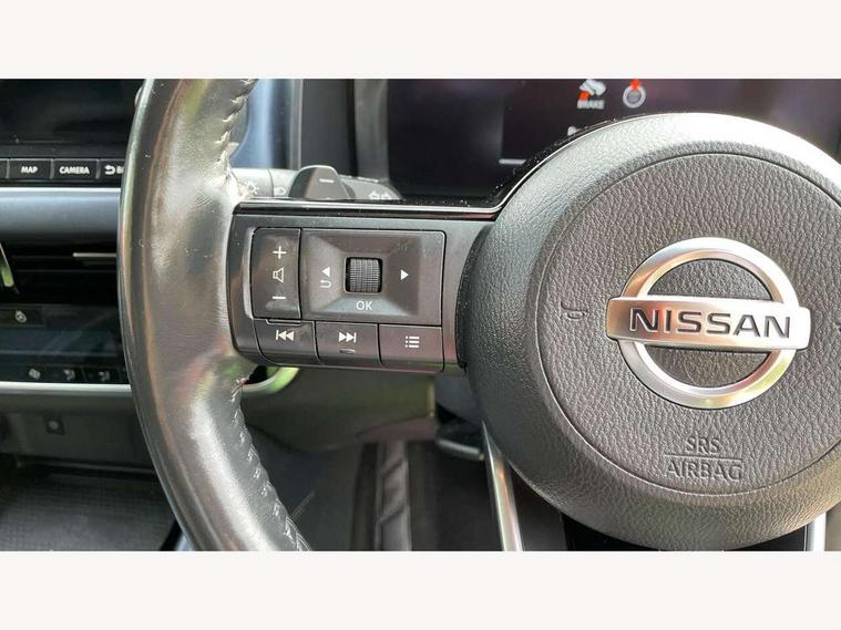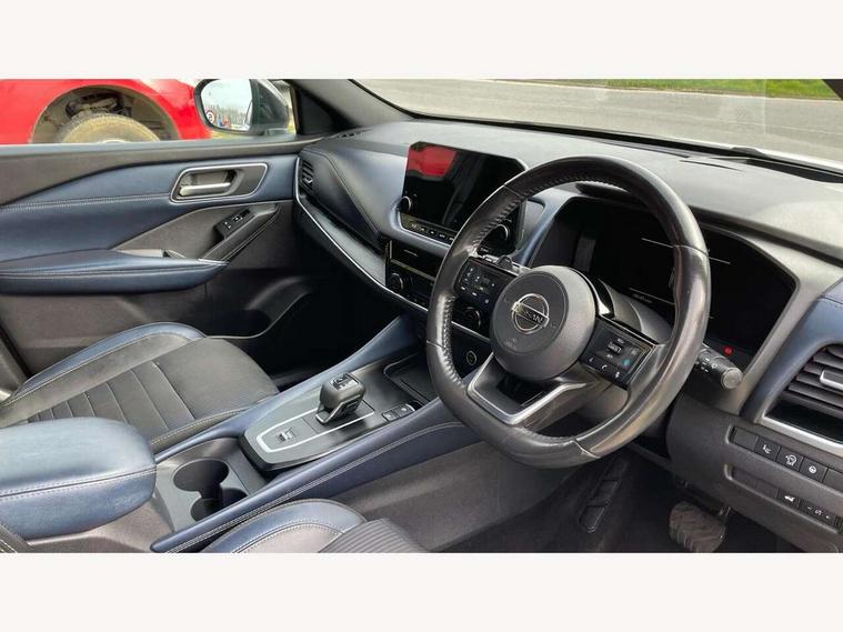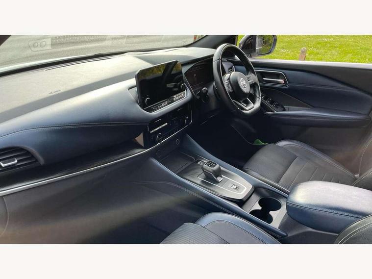 Blind spot warning, Drive modes (sport, normal, eco), Electric speed sensitive power steering, Emergency and breakdown call, Front and rear parking sensors, Full Digital 12.3" TFT Digital Combimeter, Google maps services - search, weather, 3D maps and Google street view, Hands free power tailgate, Idle stop/start system, Intelligent around view monitor, Intelligent Cruise control (ICC), Intelligent driver alert system, Intelligent forward collision warning, Intelligent lane intervention, Lane departure prevention, Lane departure warning system, Moving object detection, Nissan connect 9" touchscreen infotainment system, Nissan connect navigation, Push button starter, Rear cross traffic alert, Remote control services - door locks, lights, horn and car locator, Telematics - notifications and connectivity services, TomTom live traffic services, Traffic sign recognition with legal speed adjustment, Trip computer, Virtual personal assistant and firmware over the air capability, Wireless Apple CarPlay and wired Android Auto, Wireless charging pad, 6 speakers, AM/FM audio system with DAB, Bluetooth audio streaming, Front USB connections (Type-A and Type-C), Rear USB charging only ports (Type-A and Type-C), Auto dimming rear view mirror, Auto rear wiper when reversing, Body colour mirror caps, Body coloured door handles, Bodyside mouldings, Chrome side window finisher, Door handle with button, Dusk sensor, Electric auto folding door mirrors, Electrically adjustable and heated door mirrors with LED turn indicator, Fixed panoramic glass roof with electric sunshade, Follow me home headlights, Front and rear LED turning signals, Intelligent auto headlights, LED daytime running lights, LED rear lights, One touch front and rear electric windows with remote opening and closing, Partially body coloured bumpers, Privacy glass, Rear roof spoiler, Rear side wing doors, Rear styling plate, Roof rails, Shark fin antenna, Splash free rain sensing wipers, Super UV and infrared cut glass, Three blink turn signal, 12v power socket in dashboard and luggage, 2 way electrical driver lumbar adjustment, 2x Rear coat hooks, 3 bench rear seats in 2nd row, 3 rear headrests, 4 folding assist grip, 6 Luggage hooks - 4 on floor, 2 on side, 60/40 split folding rear seat bench, 8 way electric adjustable drivers seat, Ambient lighting around centre console, Ambient lighting in front doors, Centre console storage tray, Chrome interior door handles, Cloth/syntech leather monoform upholstery, Dark headlining, Driver and front passenger sunvisors with illuminated vanity mirrors, Driver seat back pocket, Dual zone automatic climate control with pollen filter, Front and rear door storage, Front cupholders x 2, Front door with bottle holders, Glovebox with light, Hard trunk cover, Height adjustable front headrests, Leather steering wheel, Luggage board system, Luggage space lighting, Manual lumbar support on passenger seat, Manually adjustable passenger (slide recline + lifter), Multifunction steering wheel, Passenger seat back pocket, PVC front centre console and armrest, Rear armrest with 2 cupholders, Rear door bottle holders, Single front passenger seat, Soft PVC kneepad, Steering wheel gearshift paddles, Steering wheel switches, Tilt/telescopic adjustable steering wheel, Two rear isofix child seat anchorage points with top tether, Welcome light and doors with console tray ambient lighting, Heat pack - Qashqai, Tech Pack (ProPILOT + HUD), 3x3 point rear seatbelt pretensioners + load limiters, ABS, ESP, EBD and brake assist, Active brake limited slip, Auto hold function, Child locks on rear doors, Curtain and front side, far side airbags, Driver and passenger airbags, Driver, passenger and 2nd row rear seat belt reminder, Electronic parking brake, Front seatbelt pretensioners + load limiters, Height adjustable front seatbelts, Hill start assist, Intelligent blind spot intervention, Intelligent front emergency braking with pedestrian, cyclist recognition and junction assist, Intelligent rear automatic braking, Tyre pressure monitoring system, Vehicle dynamic control, Capless fuel filler, Engine immobiliser, Nissan i-key, Rear bumper with silver insert, Remote central door locking with deadlocking, Thatcham Cat.1 alarm, 19" Alloy wheels,