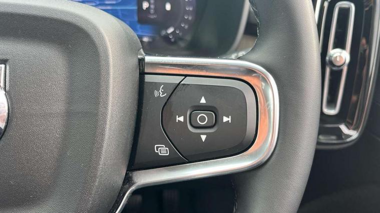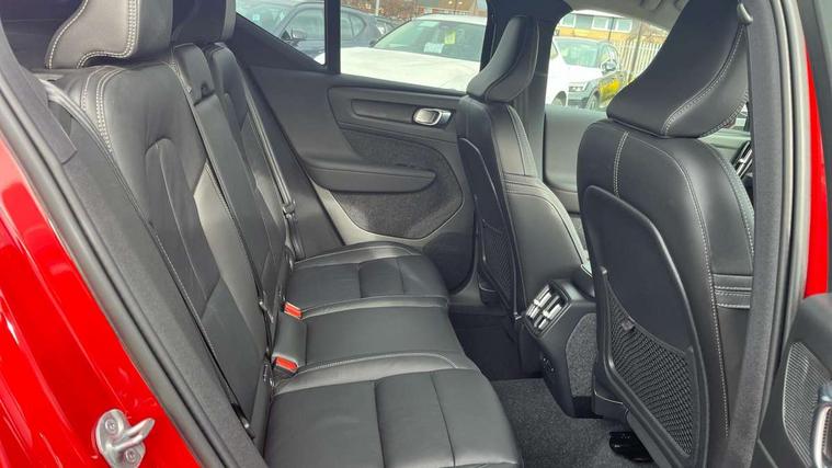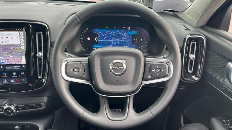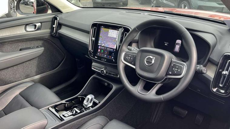 12.3" Progressive Driver Display, 9" centre console portrait touch screen, Adjustable steering wheel force, Bluetooth hands free telephone kit, Cruise control, Driver awareness - blind spot information system with steer assist, cross traffic alert with autobrake, rear collision warning and migitation, E-call, Front park assist, Google automatic services - Nav with google maps, apple carplay/android auto, voice recognition with google assistant, Hands free power tailgate, Lane keep assist with driver alert control, Oncoming Lane Mitigation, Rear park assist, Rear park assist camera, Speed limiter, Speed sensitive steering, Wireless/Inductive Mobile Phone Charging, Dynamic chassis, DAB Digital radio, High performance sound, 8 speakers/250W, front USB and 2 rear type C USB, Steering wheel mounted remote controls, Adaptive brake lights with high level LED brake lights, Auto dimming feature for exterior door mirrors, Auto dimming interior mirror, Automatic headlamp levelling, Automatic LED Headlights + Active high beam incorporating daytime running lights, Front aluminium tread plates, Front and rear electric windows, High gloss black front and rear skid plate, High gloss black mesh front grille with high gloss black surround, High gloss black window trim, Home safe and approach lighting, Integrated roof rails in high gloss black, LED front fog lights, Puddle lights, Rain sensor with automatic windscreen wiper activation, Rear side wing doors, Rear wiper, Roof antenna, Roof spoiler, Visible VIN plate, 12V socket in front tunnel console and luggage compartment, 2-Zone electronic climate control with CleanZone air quality system and pollen filter, 3 seat bench in 2nd row, 3 Spoke tailored steering wheel with chrome trim, 60/40 versatile split folding rear seat, A-pillar parking ticket holder, Ambient front door and instrumental panel lighting, Centre console cupholders and storage, Flexible load floor and grocery bag holder, Floor mats, Front door pocket and front cupholder illumination, Front footwell illumination, Front headrests, Front reading light and theatre lighting, Front seat cushion extensions, Front tunnel pocket, Glovebox bag hook, Heated front seats, Height adjustable passenger seat, Height/reach adjustable steering column, High gloss centre tunnel deco, Illuminated glovebox, Illuminated luggage compartment, Illuminated tailgate, Illuminated vanity mirrors, Integrated waste bin, Isofix attachments on outer rear seats, Load protection net, Multi directional lumbar support, Power driver seat with memory + exterior mirrors memory, Rear armrest / integral cup holders / storage tray, Rear headrests, Rear reading and courtesy lights, Single front passenger seat, Underfloor cargo storage, Climate pack without heated front seats - XC40, 3x3 point rear seatbelts, City safety with steering support with Pedestrian + cyclist + front collision warning with full auto brake and rear auto brake, Drivers knee airbag, Dual stage driver/passenger airbags, Electronic parking brake with auto hold, First aid kit, Front and outer rear seatbelt reminder and pretensioners, Front seats SIPS airbags, Hill descent control, Hill start assist, Inflatable curtain, Passenger airbag cut-off device, Power child locks on rear doors, Road sign information display, Run off Road Mitigation, Run off Road Protection, SIPS (Side Impact Protection System), Slippery road and hazard light alert, Stability and Traction Control with Spin control, Engine Drag Control and Corner Traction Control, Tyre pressure monitoring system, Vehicle deceleration control with Anti-lock Brake System, Electronic Brake Distribution and Emergency Brake Assist, Warning triangle, WHIPS whiplash protection system - front, Anti-theft alarm including immobiliser/volume sensor + level sensor, Key integrated remote control central locking + fuel flap with deadlocking system and auto open/close power windows, Keyless drive includes keyless entry and keyless start, Locking wheel nuts,