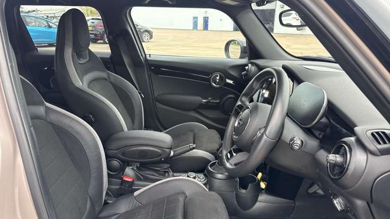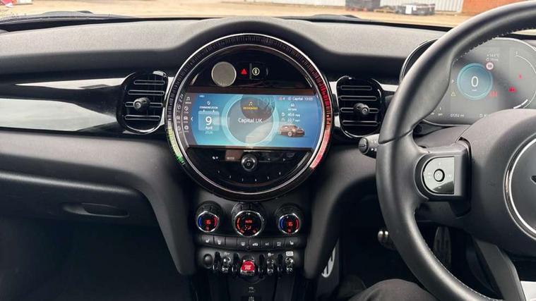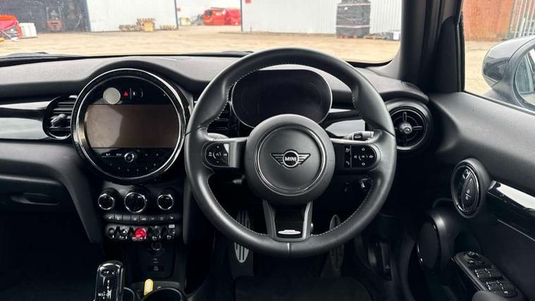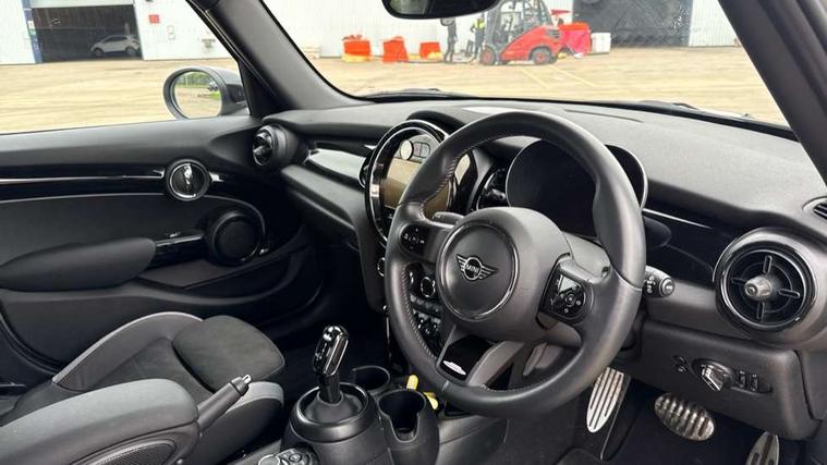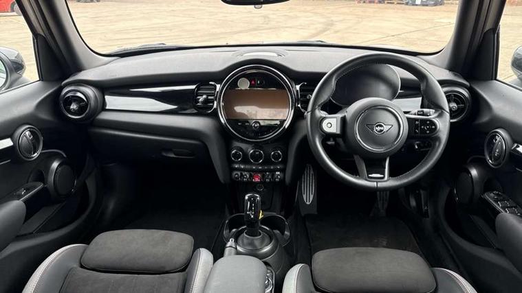 Apple CarPlay, Automatic start/stop function with brake energy recuperation, Compatible mobile phone bluetooth with audio streaming, Electro-mechanical speed dependant steering assistance, Flexible car sharing preparation, MINI Driving Modes - centre toggle switch to control driving setting (sport, mid and green), Mini E-call, MINI TeleServices, On board computer, Rear park distance control, Service interval indicator, Adaptive suspension, Double Vanos system, Fully variable valve control, Gear change indicator display, High precision injection, Performance Control, Steptronic transmission with double clutch, 8.8" touchscreen with LED ring, FM tuner and DAB digital radio, 3rd brake light, Automatic headlight activation switch, Body colour fuel filler cap, Chrome border high gloss black slats radiator grille, Dynamic brake lights, Electric front+rear windows, Exhaust tailpipe on left with chrome finisher, Heated rear window, Heated windscreen washer jets, JCW Aerodynamic kit - Front and rear bumpers with sporty JCW styling and part-painted side sills with MINI John Cooper Works door sill finishers, John Cooper Works rear spoiler, Metal door sill strips with MINI imprint, Model logo Cooper on right of tailgate, Rain sensor window wipers, Rear fog lights, Rear LED lights with union jack design, Rear side wing doors, Rear window wiper, Side scuttle panel with integrated indicator, Sun/heat protection glass, White indicator lenses, 12V Accessory socket in centre console, 3 seat bench in 2nd row, 4 lashing eyes in luggage compartment, 60/40 split folding rear seat, Anthracite headliner including grab handles and clothes hooks, Carbon black colour line - Knee roll and door armrest, Chrome interior highlights, Cupholders, Front and rear isofix with front passenger airbag deactivation, Front and rear velour floor mats, Glove compartment, Height and length steering column adjustment, Interior lighting with 12 different colours across the dashboard, underneath door bezel with illuminated laser-engraved design on central display, JCW Sport seats with integrated headrests, adjustable thigh support and John Cooper Works logo, Leatherette gearshift lever and handbrake gaiters, LED reading lights, vanity mirror lights, front foot well light and spotlight on front seats, Mechanical seat adjustment - forward/back & backrest for front seats and driver seat height adjust, Multifunction steering wheel, Single front passenger seat, Storage compartments in doors, Sunvisors with vanity mirrors, Walknappa leather steering wheel with grey seam and John Cooper Works badge on Piano Black lower steering wheel spoke, Piano black exterior pack - Mini Hatchback Cooper, 3 point seatbelts on all five seats, 6 Airbags - front, side, head and seat belt tensioners, Anti-lock braking system (ABS), Child locks on rear doors, DSC - Dynamic Stability Control, Front and rear disc brakes, Hill start assist, Single tone fanfare horn, Tyre pressure monitoring system, Alarm system with tilt sensor, monitoring doors, bonnet interior and tailgate, Electronic vehicle immobiliser, Start/stop toggle with keyless go, Piano black interior trim, Tool kit,