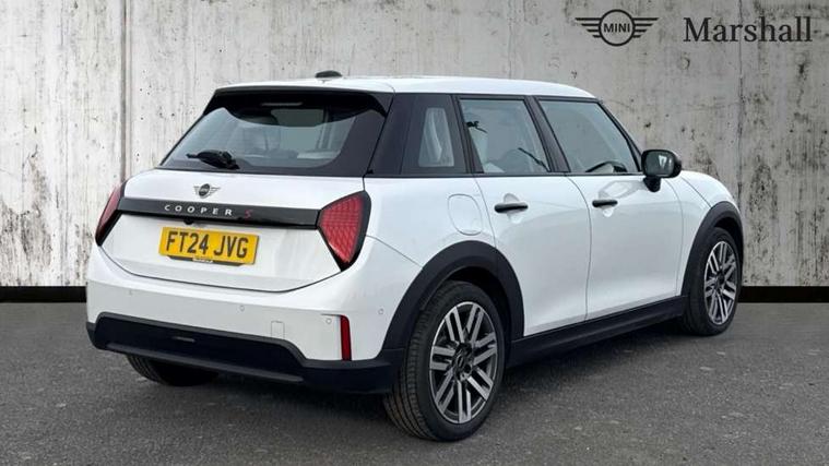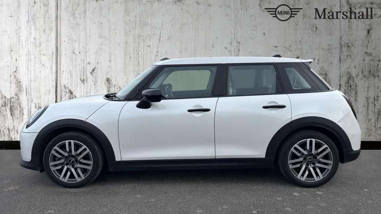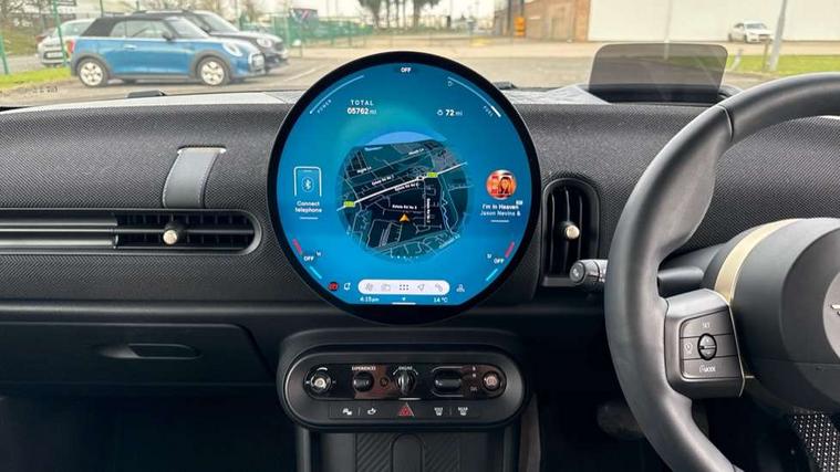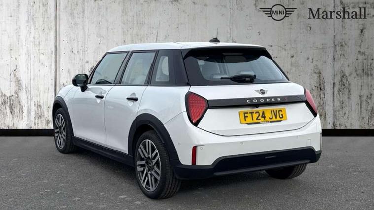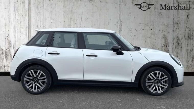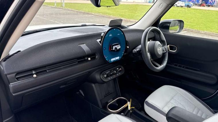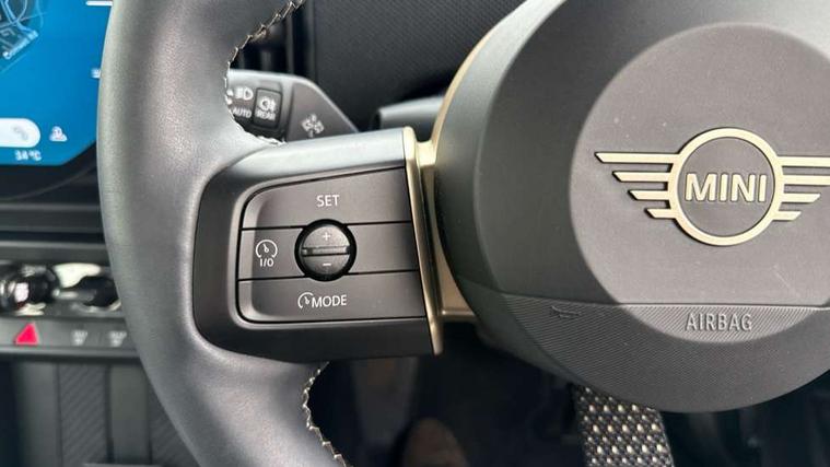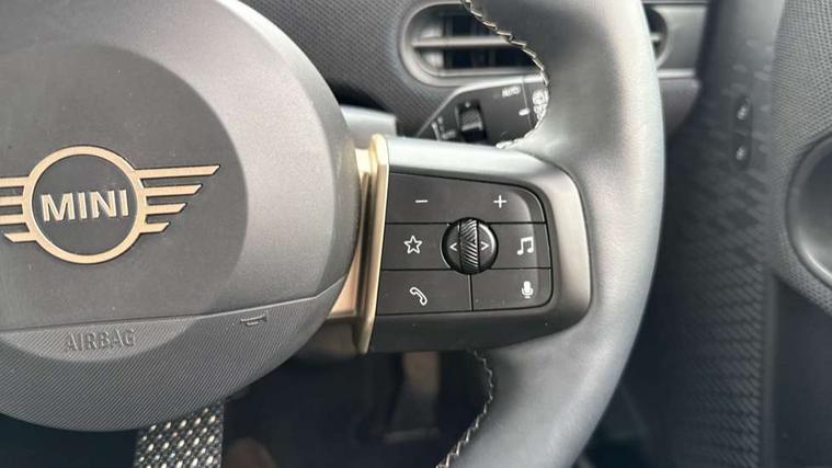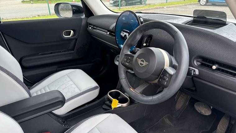 Central toggle bar, Circular OLED Screen, Compatible mobile phone bluetooth with audio streaming, Cruise control, Digital instrument cluster, Electro-mechanical speed dependant steering assistance, Emergency call service, MINI Experience Modes, Mini navigation system, On board computer, Service interval indicator, 7 speed steptronic transmission with double clutch, DAB Digital radio, Personal eSim, Adaptable light signatures, Auto headlights, Electric adjustable heated door mirrors, Electric front+rear windows, Heated rear window, Heated windscreen washer jets, LED daytime running lights, LED indicator lights, LED rear lights, Rain sensor window wipers, Rear fog lights, Rear side wing doors, Rear window wiper, 2 zone automatic air conditioning, 3 seat bench in 2nd row, 60/40 rear seat bench, Ambient lighting, Cupholders, Floor mats, Front and rear head restraints, Front compact armrest, Heated steering wheel, Height adjustable passenger seat, Light headliner, Luggage compartment lighting, Single front passenger seat, Sport Vescin Steering Wheel black with vibrant silver accents, Sunvisors with vanity mirrors, Vescin/Cloth upholstery, Driving assistant pack - Cooper Hatchback, Level 1 pack - Mini Hatchback, Park assistant pack - Cooper Hatchback, 3 point seatbelts on all five seats, 6 Airbags - front, side, head and seat belt tensioners, Acoustic pedestrian protection, Anti-lock braking system (ABS), Child locks on rear doors, DSC - Dynamic Stability Control, Electronic parking brake, Front and rear disc brakes, Front ISOFIX (iSize), Front passenger airbag deactivation, Traction control, Tyre pressure monitoring system, Alarm, Immobiliser, Remote central locking, Black/Blue dashboard knit, Tyre repair kit,