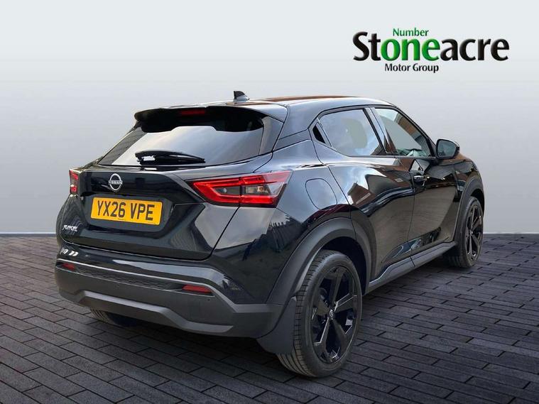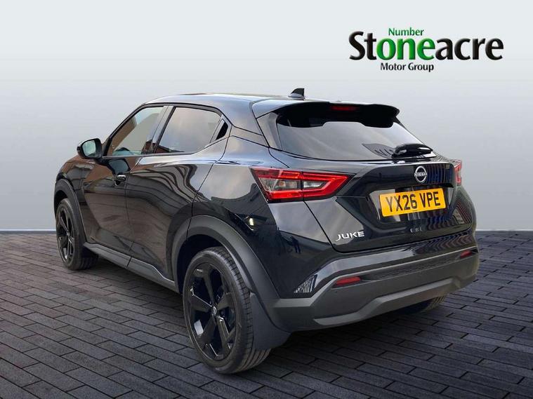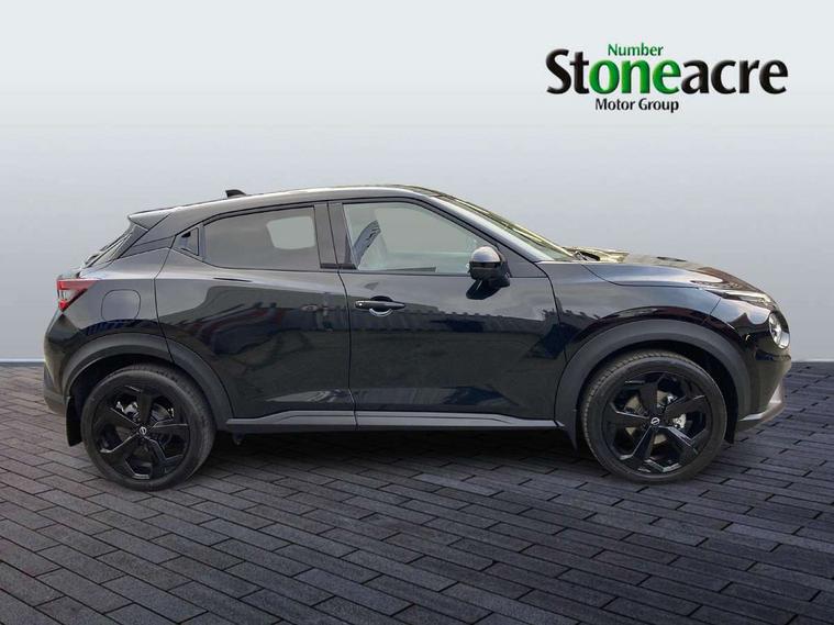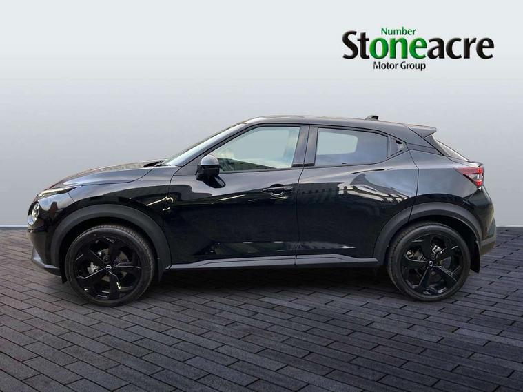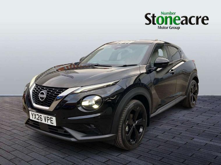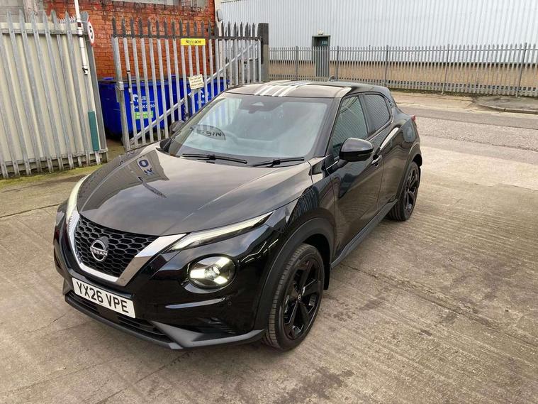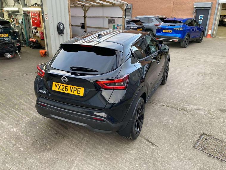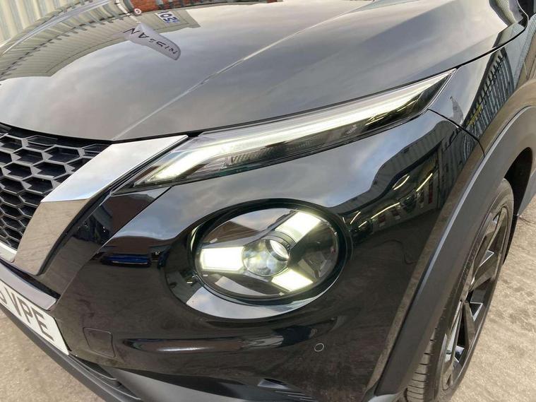 12.3" full colour TFT screen combimeter, Drive modes select (Eco, normal and sport), Emergency and breakdown call, Front parking sensor, Idle start/stop system, Intelligent driver alert system, Intelligent lane intervention, Lane departure warning system, Nissan connect 12.3" touch screen entertainment system, Nissan connect nav with TomTom traffic, Nissan connect services, Outside temperature sensor, Power Steering, Rear parking sensor, Speed limiter, Stop/start button, Traffic sign recognition, Trip computer, Voice recognition, WiFi connectivity, Wireless Apple CarPlay and Google Android auto, Wireless Smartphone charger, 10 Bose speakers 8 speakers and 2 headrest speakers for driver/passenger seats, 2 X Rear console USB port, Bluetooth system, USB, Aux-in and 12V socket, Bose personal plus audio system, DAB Digital radio, Auto-dimming framed rear view mirror, Automatic hazard signal with emergency stop signal, Body colour door handles, Electrically adjustable door mirrors with integrated indicators, Follow me home headlights, Front and rear electric window with one touch driver window, High beam assist, LED 3rd brake light, LED daytime running lights, LED headlamps, LED rear fog lamp, LED rear lamps, One touch passenger window, Rear privacy glass, Rear side wing doors, Rear wiper, Roof spoiler, Shark fin roof antenna in solid Black, Solid black door mirrors, Three blink turn signal, 3 height adjustable rear headrests, 3 seat bench in 2nd row, 60/40 split folding rear seat, Card holder on driver sunvisor, Door ambient lighting, Driver seat back pocket, Driver side rear coat hanger, Driver/passenger sunvisors and vanity mirrors, Front and rear cabin lights, Front armrest, Front door pockets with bottle holders, Front head restraints, Gear console ambient circle lighting, Height adjustable driver's seat, Internal chrome door handles, Luggage board, Luggage space lighting, Monoform sporty seats, Multifunction steering wheel, Passenger seat back pocket, PVC fabric upholstery, Rear door bottle holders, Single front passenger seat, Smooth synthetic leather steering wheel, Steering wheel mounted gearshift paddles, Synthetic leather kneepad, Synthetic leather shift knob, Telescopic steering wheel adjustment, Two cupholders in front centre console, Two rear isofix child seat anchorage points with top tether, Welcome light and console tray ambient lighting, Comfort pack - Juke, Heat pack with height adjustable passenger seats - Juke, ProPilot pack - Juke Auto, ABS with EBD and brake assist, Active ride control, Active Trace Control, Driver and passenger airbags, Driver and passenger side airbags, Electric handbrake with auto hold function, Electronic Stability Programme (ESP), Front and rear curtain airbags, Height adjustable seatbelts, Hill start assist, Intelligent emergency braking with pedestrian and cyclist recognition, Rear door child safety locks, Seatbelt reminder for driver/front passenger and rear seats, Three 3 point rear seatbelts, Traction control, Tyre pressure monitoring system, VDC Dynamic Vehicle Control, Alarm, Immobiliser, Intelligent key and start push button with walk away lock and approach unlock functions, Remote central locking, 19" Alloy wheels, Tyre puncture repair kit,