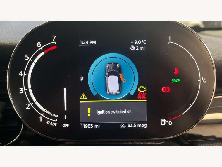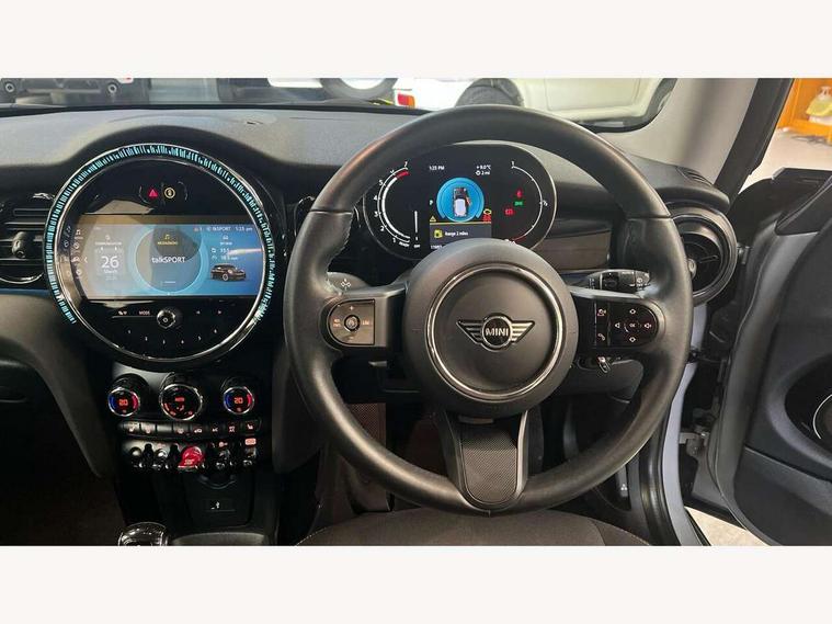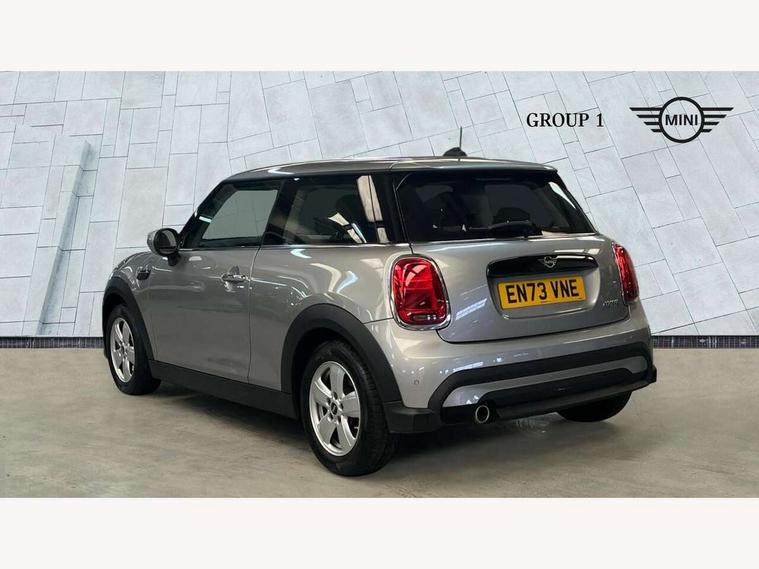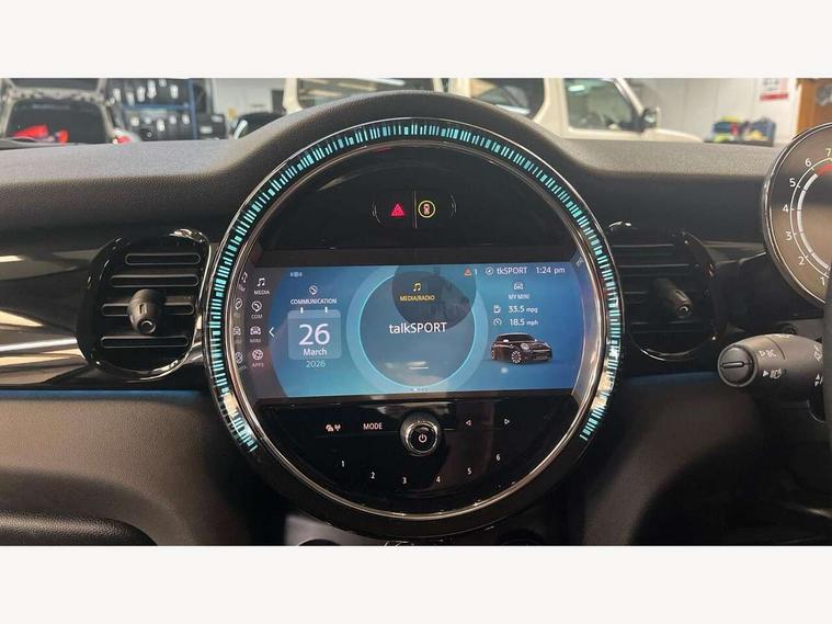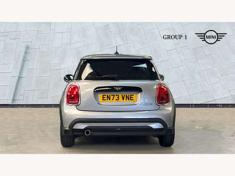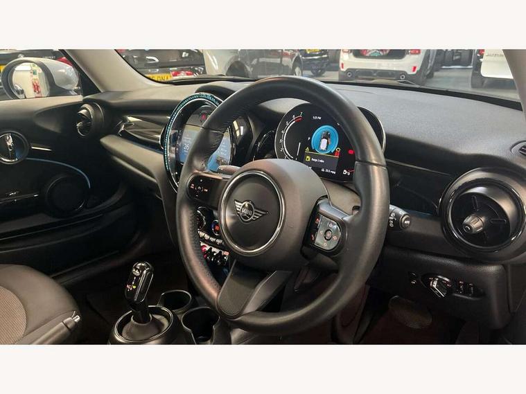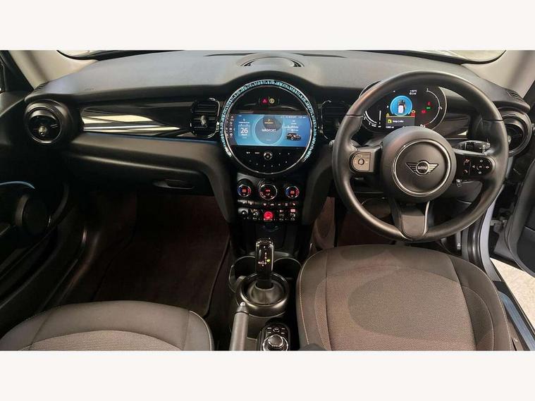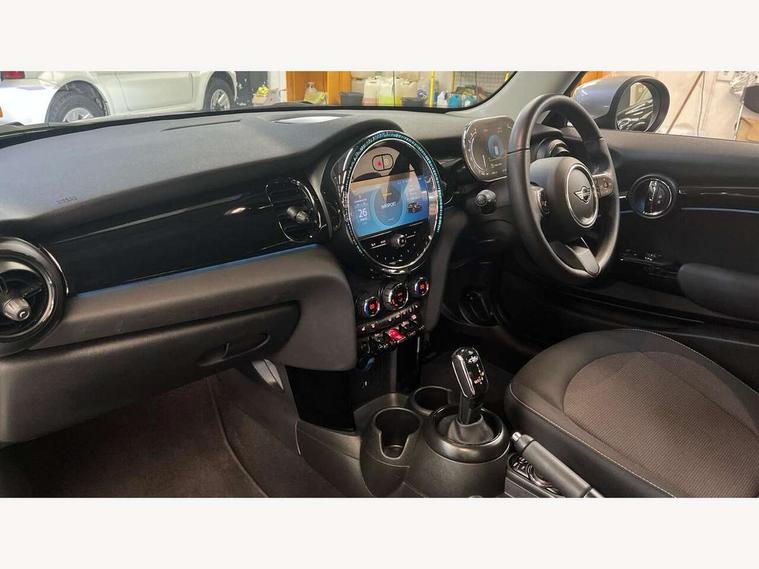 Apple CarPlay, Automatic start/stop function with brake energy recuperation, Compatible mobile phone bluetooth with audio streaming, Cruise control with brake assist, Electro-mechanical speed dependant steering assistance, Flexible car sharing preparation, Instrument cluster, Mini E-call, MINI TeleServices, On board computer, Service interval indicator, Double Vanos system, Fully variable valve control, High precision injection, Performance Control, Steptronic transmission with double clutch, 8.8" touchscreen with LED ring, FM tuner and DAB digital radio, 3rd brake light, Automatic headlight activation switch, Body colour fuel filler cap, Chrome border high gloss black slats radiator grille, Dynamic brake lights, Electric front windows, Exhaust tailpipe on left with chrome finisher, Heated rear window, Heated windscreen washer jets, LED headlight with closed ring and daytime driving lights, Metal door sill strips with MINI imprint, Model logo Cooper on right of tailgate, Rain sensor window wipers, Rear fog lights, Rear LED lights with union jack design, Rear window wiper, Side scuttle panel with integrated indicator, Sun/heat protection glass, White indicator lenses, 12V Accessory socket in centre console, 2 seat bench in 2nd row, 4 lashing eyes in luggage compartment, 60/40 split folding rear seat, Ambient lighting, Carbon black colour line - Knee roll and door armrest, Chrome interior highlights, Cupholders, Front and rear head restraints, Front and rear isofix with front passenger airbag deactivation, Front floor mats in velour, Glove compartment, Height and length steering column adjustment, Interior lighting with 12 different colours across the dashboard, underneath door bezel with illuminated laser-engraved design on central display, Leatherette gearshift lever and handbrake gaiters, LED reading lights, vanity mirror lights, front foot well light and spotlight on front seats, Manual air conditioning, Mechanical seat adjustment - forward/back & backrest for front seats and driver seat height adjust, Multifunction steering wheel, Passenger seat height adjuster, Satellite grey headlining including grab handles and clothes hooks, Single front passenger seat, Sport leather steering wheel with speed limiter and audio/communication controls, Storage compartments in doors, Sunvisors with vanity mirrors, 3 point seatbelts on all four seats, 6 Airbags - front, side, head and seat belt tensioners, Anti-lock braking system (ABS), DSC - Dynamic Stability Control, Front and rear disc brakes, Single tone fanfare horn, Tyre pressure monitoring system, Alarm system with tilt sensor, monitoring doors, bonnet interior and tailgate, Electronic vehicle immobiliser, Start/stop toggle with keyless go, Piano black interior trim, Tool kit, Tyre repair kit,