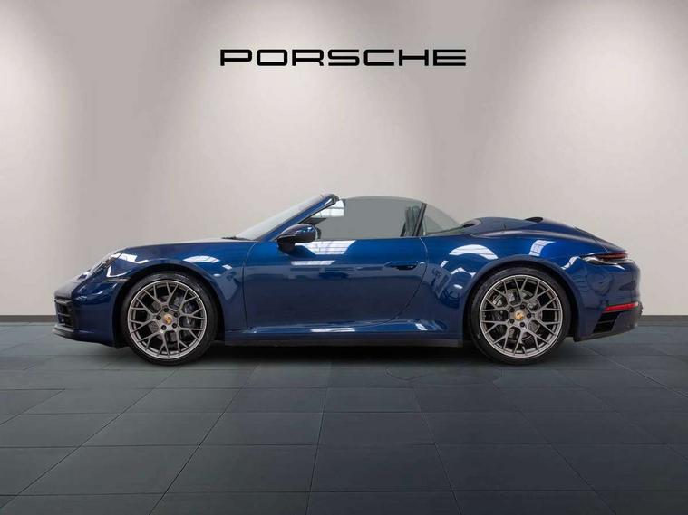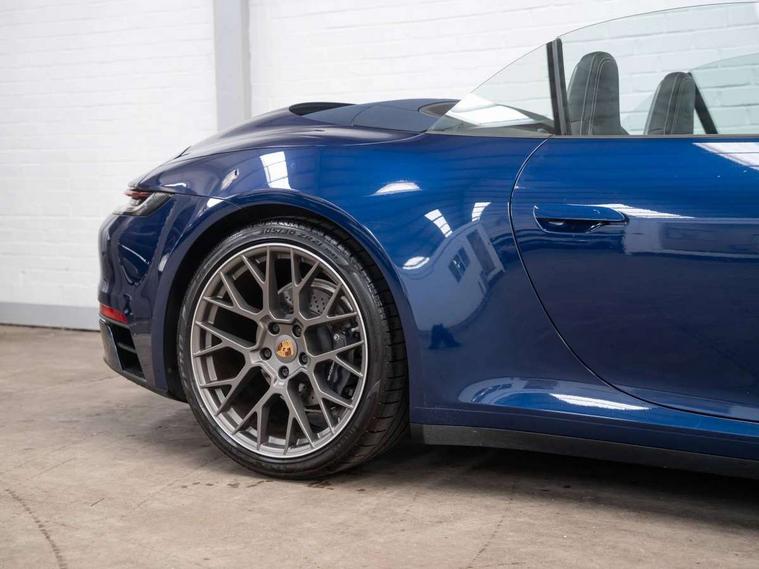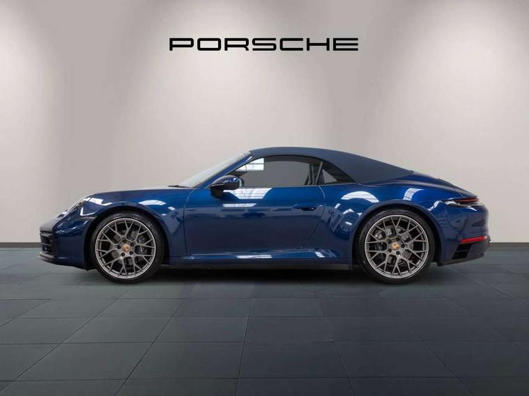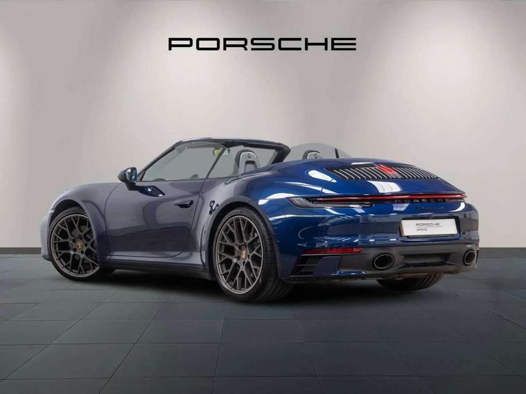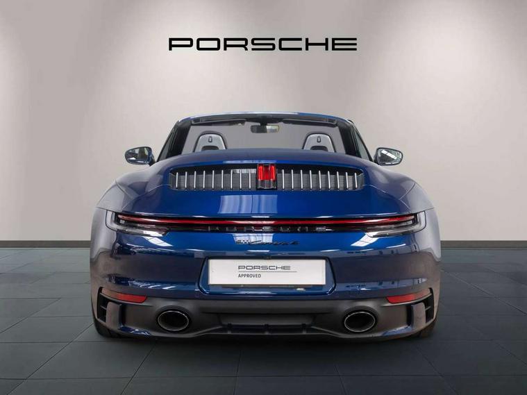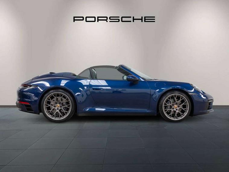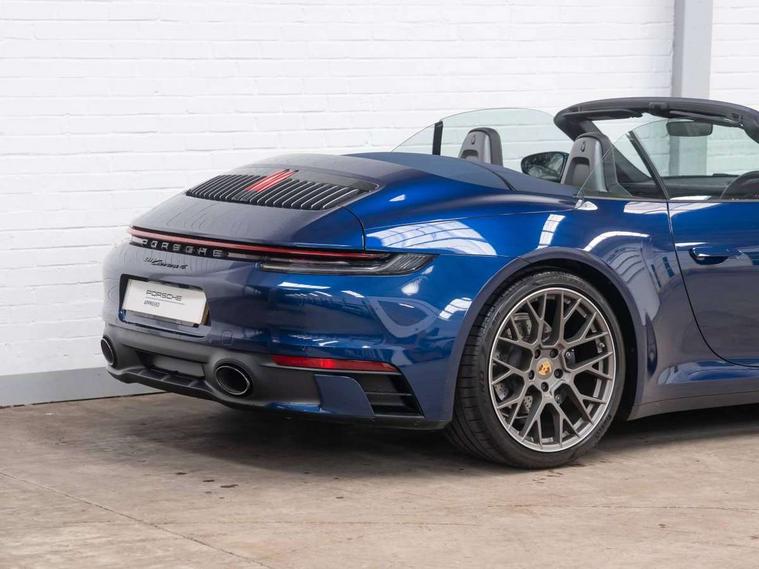 10.9 inch centre display, Automatic start/stop system, Digital display for selected gear in rev counter, eCall emergency system, Instrument cluster with central analogue rev counter and two 7-inch TFT displays, Porsche Communication Management (PCM) including online navigation module, mobile phone preparation, audio interfaces and voice control system, Porsche connect plus, Apple carplay, LTE telephone module with Sim card reader, wireless internet access and other Porsche connect services, Porsche WET Mode, Service indicator, Stationary management with HOLD function, Trip computer, Warn and Brake Assist with intergrated front cameras, 8 Speed Porsche Doppelkupplung (PDK), All wheel drive with map controlled multi plate clutch Porsche Traction Management (PTM), Aluminium block and cylinder heads, Direct fuel injection (DFI), Expansion intake manifold, Four valve per cylinder, Integrated dry-sump lubrication with an on-demand oil pump, McPherson-strut suspension with anti-roll bar at front, Multi-link suspension with anti-roll bar at rear, Porsche Active Suspension Management (PASM), Porsche Stability Management (PSM), ABS with extended brake functions, Twin turbocharger intercooled, Two gasoline particulate filter, Two three-way catalytic converters and on-board diagnostics for monitoring emission control system, VarioCam Plus variable valve timing and switchable valve lift, Water cooled with thermal management, DAB Digital radio, Two USB charging and connectivity ports in the front centre console storage compartment, "PORSCHE" lettering integrated in taillight strip, Auto deploying rear spoiler, Automatic headlight activation including welcome home lighting, Body coloured bumpers, Electrically adjustable heated exterior mirrors on door waist rails, aspherical on driver's side, Engine compartment cover grille with vertical slats in silver colour (high-gloss), Fully automatic fabric roof, electrically operated rigid glass rear screen, operable approx 30 mph and convenient operation by key remote, Green tinted heat insulating glass, Heated rear windscreen, Integral electrically powered wind deflector, Intelligent lightweight body in Aluminium/Steel composite construction, LED auxiliary light units in the front end with position lights, direction indicators and side indicators, Power windows with one touch operation and door seal protection, Retractable door handles, Side air intakes at front with active cooling flaps and air blades, Taillight strip including integral parking lights and rear driving lights, Trims on sideskirts in black, Windscreen washer system with aero wiper blades and washer jets, 12V socket in front passenger footwell, 2+2 seater with rear engine, Clothes hooks on seat backrests, Front and rear head restraints, Heated front seats, Hood lining in black fabric, ISOFIX child seat mounting points on front passenger seat, Luggage compartment at front, One individual cupholder (passenger side) and one individual cupholder in centre console, Particle/pollen filter with active carbon filter, PDK gear selector with automatic mode, manual gear selection via shift paddles on the steering wheel, Split folding rear seats, SPORT button to activate dynamic driving settings for engine and transmission, Storage compartments in each doors, Two zone auto climate control with separate temperature settings for driver/front passenger, automatic air recirculation mode incl air quality sensor, 3 point inertia reel seatbelts, 4 piston aluminium monobloc fixed + brake calipers at front and rear + brake calipers with black finish, Auto deploying roll over protection system, Brake discs with 330mm diameter at front and rear, internally vented and cross-drilled, Electric parking brake, Electromechanical power brake, Full size two stage airbags for driver and front passenger, Porsche side impact protection system (POSIP) includes side impact protection in doors, head/thorax airbags for driver and front passenger, Tyre pressure monitoring system, Engine immobiliser with remote central locking and alarm system with radar based interior surveillance, Porsche vehicle tracking system (PVTS Plus),