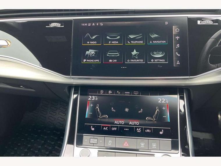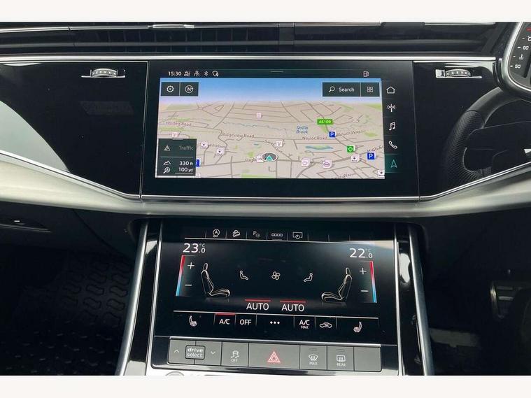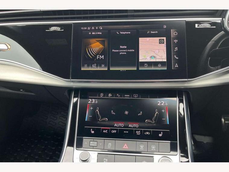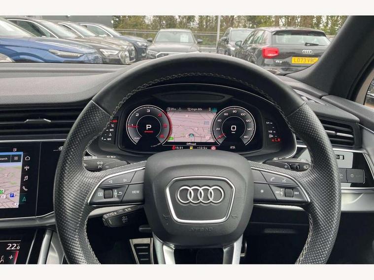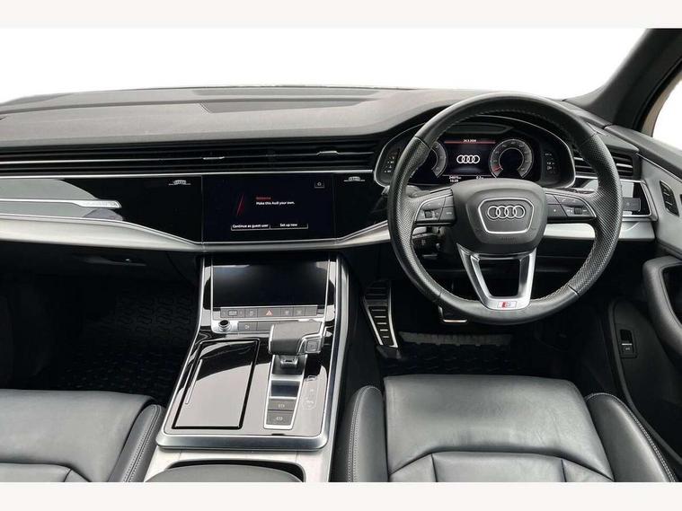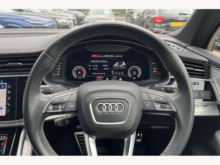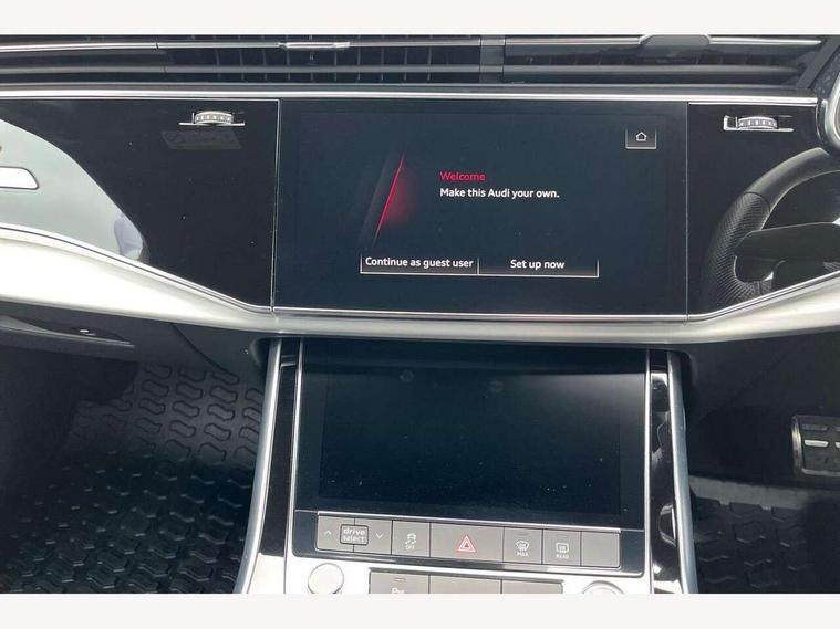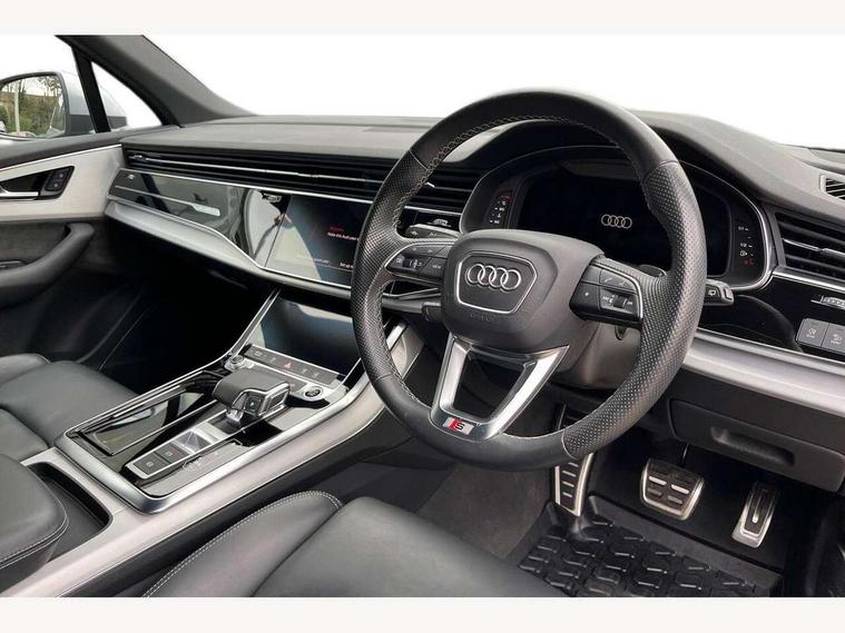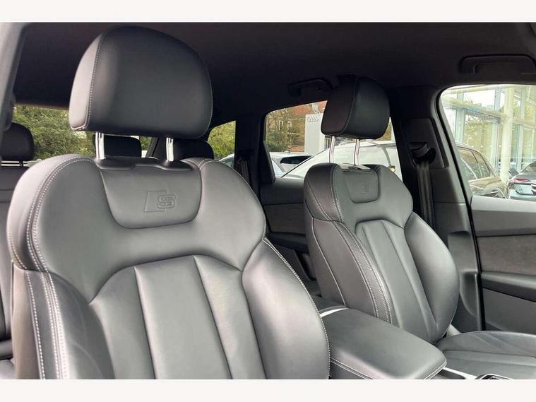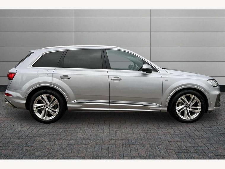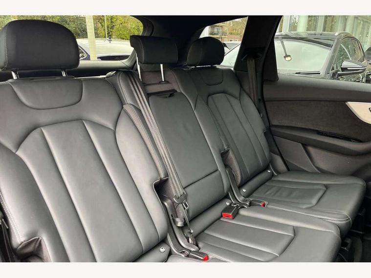 Audi connect safety and service (e-call), Audi drive select (Auto, Comfort, Dynamic, Individual, Off-road and All road), Audi phone box with wireless charging, Audi smartphone interface includes wireless Apple carplay/Android Auto, Camera based traffic sign recognition, Electromechanical steering, MMI navigation plus with MMI touch screens includes 10.1" and 8.6" screens with haptic feedback, Natural voice recognition, Parking system plus with 360 degree display (front, rear and side sensors) - acoustic and visual park assist system, Power operated tailgate, Rear view camera, Start/stop system, 48V Mild hybrid technology, Adaptive air suspension, Quattro all wheel drive with self locking centre differential, Audi music interface - front 2 USB-C ports with charger and data functions, Audi sound system with 6 channel amplifier, 180 watt amplifying capacity and 10 loudspeakers including subwoofer, DAB digital radio module, Aluminium roof rails, Aluminium window trim, Audi matrix LED headlights with dynamic front and rear indicators, Auto dimming frameless rear view mirror, Body coloured door mirrors, Electrically adj heated/folding + automatically dimming exterior mirrors with memory + automatic kerb side function for passenger side exterior mirror, Heat insulating glass in windshield, Integrated LED indications in door mirrors, LED daytime running lights, LED rear tail lights, Privacy glass - dark tinted rear and rear side windows from B-pillar backwards, S Line badge on wings, S line bumpers in full body colour paint finish, S line roof spoiler, S line styling side ventilation grilles and side skirts, 2 zone automatic climate control, 7 seat layout with ISOFIX points for the front passenger seat and rear passenger seat, Black cloth headlining, Comfort front centre armrest, Folding rear seats, Front head restraints, Front/rear floor mats, Heated front seats, Illuminated door sill trims with S logo, LED interior ambient lighting, Luggage compartment cover, Luggage compartment sill protection in stainless steel, Rear head restraints, Stainless steel pedals, Sunvisors with illuminated vanity mirrors, Tool kit, 3 point seatbelts on all rear seats, Audi pre sense front, Driver and front passenger, front side and curtain airbags, Electromechanical parking brake, Electronic Stabilisation Control (ESC) including ABS, ASR and EDL, Extended pedestrian protection measures, Hill hold assist, Seatbelt monitoring, Tyre pressure loss indicator, Warning triangle and first aid kit, Anti theft alarm, Anti-theft wheel bolts and wheel loosening detection, Keyless Go, Remote central locking, Darkened matt brushed aluminium inlays, Tyre repair kit,
