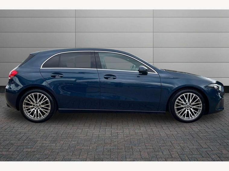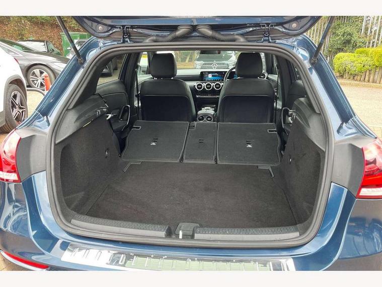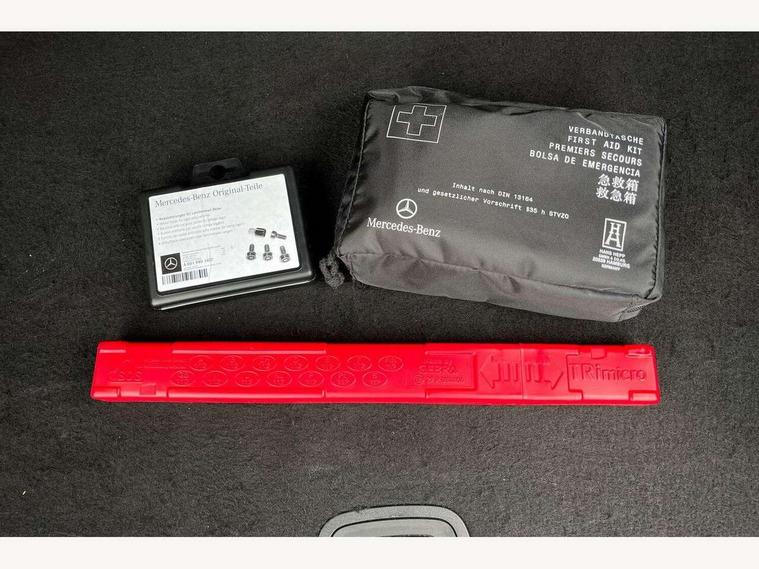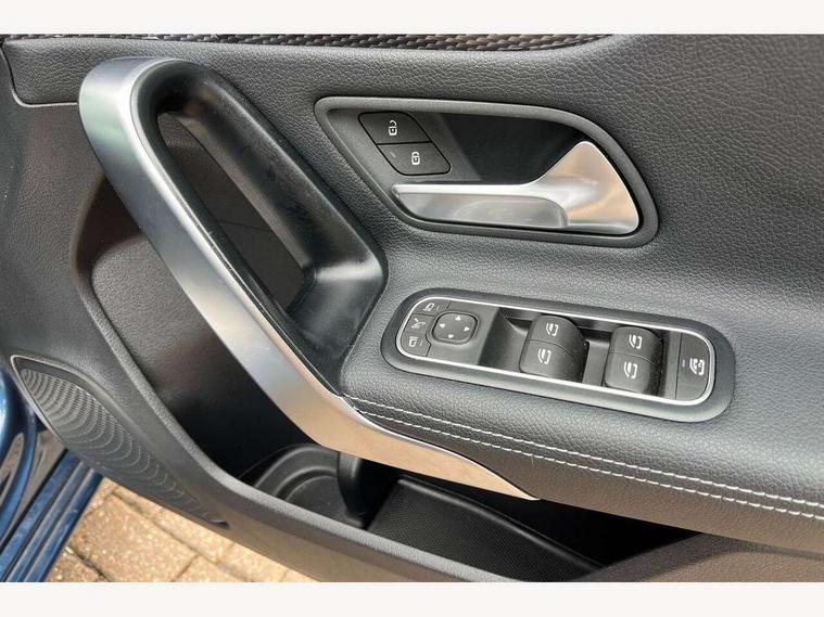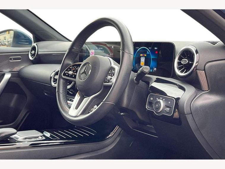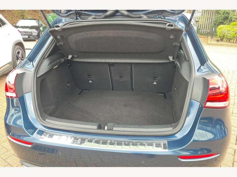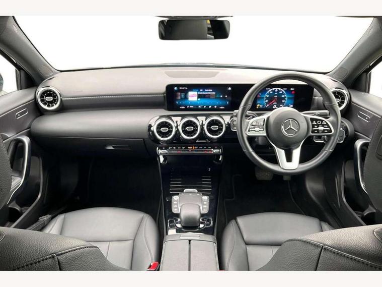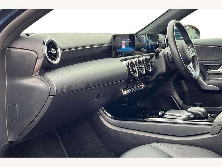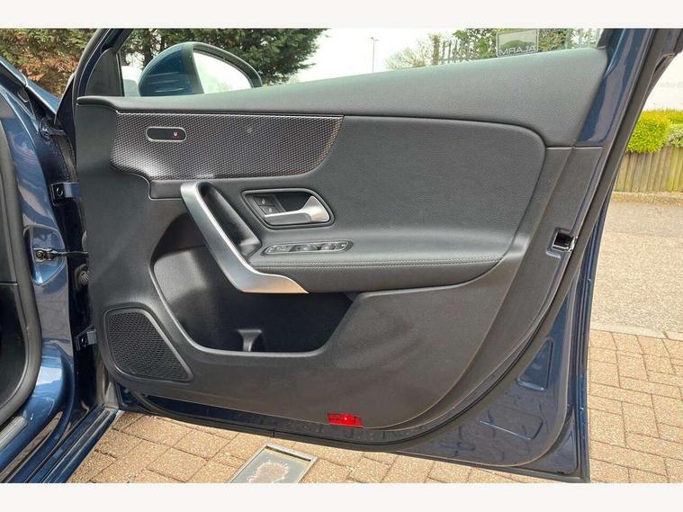 10.25" media display, 180 degree rear view camera with parking guidelines, 7" colour screen in instrument panel, Active parking assist with visual and audible warning of detected obstacles, Attention assist, Brake pad wear indicator warning light, Car wash mode, Cruise control + speed limiter, Direct steering, Dual bluetooth interfaces, DYNAMIC SELECT with a choice of driving modes (ECO, Comfort, Sport and Individual), ECO start/stop function, Fluid level warning indicator for fuel, oil, coolant and washer fluid, Hard-disk navigation, Hey Mercedes Voice activation, Lamp failure indicator, Lane keeping system, Mercedes me connect including emergency call system, accident recovery, breakdown management and maintenance, Mercedes me remote services, Outside temperature gauge, Owners manual in English, Pre-installation for car sharing, Preinstallation for Mercedes Benz link, Service indicator (ASSYST), Smartphone integration with Apple CarPlay and Android auto, Speed sensitive power steering, Trip computer, Ultrasonic sensors positioned in the front and rear bumpers, Lowered comfort suspension, Rear axle torsion beam, 2 USB ports (type C) in rear stowage compartment and one in front of center console, 6 speakers, DAB Digital radio, MBUX multimedia system with DAB digital radio and touchpad including satellite navigation, Mercedes-Benz sound system - 100W, 4 Electric Front and Rear windows, Adaptive brake lights, Automatic headlights, Black weather strip, Body colour bumpers, Body colour door handles, Body colour side skirt, Body coloured door mirrors, Chrome beltline trim, Diamond radiator grille with black pins with one louvre in silver + chrome insert, Electric adjustable and heated door mirrors with integrated LED side indicators, Exhaust system - Twin visible tailpipes in polished stainless steel, Headlamp assist automatic headlamp activation, Heated glass rear windscreen + timer control, LED High level third brake light, LED high performance headlamps with integrated LED daytime running lights, LED tail lamp, Privacy glass, Radio aerial, Rain sensing windscreen wipers with two sensitivity settings, Rear fog lights, Rear side wing doors, Rear wiper, Window line trim strip in chrome, 3 seat bench in 2nd row, 3 Spoke leather multi function steering wheel, 40:20:40 split folding rear seats, Artico man-made leather upholstery, Auto Mercedes-Benz child seat recognition sensor, Black air vents with surround in silver chrome, Black roof lining, Controller on centre console with chrome surround, Front centre armrest with storage compartment, Front comfort seats with adjustable head restraints, Front door sills with Mercedes Benz lettering, Front seat backs luggage nets, Front seat cushion length adjustment, Gearshift paddles on steering wheel, Heated front seats, Height/reach adjustable steering column, Interior mirror with reading lamps in black and frameless, ISOFIX and top tether child seat fixing points in two outer rear seats, Manual height adjustable front seats, Rear head restraints, Seat occupancy sensor for front passenger seat, Single front passenger seat, Stowage compartment in centre console with retractable cover, Sunvisors with illuminated vanity mirrors, Touchpad on center console, Twin front cupholders, Two zone thermotronic luxury automatic climate control, Velour floor mats, Light and sight pack - A Class, Mirror package - A Class, Seat comfort pack - A Class, 3 rear 3 point seatbelts, ABS with Brake Assist, Active bonnet, Active brake assist includes forward collision warning system with autonomous braking, Adaptive brake assist with hold function and hill start assist, Black seatbelts, Childproof locks manually operated for rear doors and electrically operated for rear power windows, Crash responsive emergency lighting, Driver and passenger head and side airbags, Drivers knee airbag, Dual stage driver/passenger airbags, Electronic parking brake, ESP curve dynamic assist, ESP with ASR, Front and rear seatbelt reminder, Tyre pressure monitoring system, Warning triangle and first aid kit, Window airbags, Alarm system/interior protection/immobiliser, Keyless Go, Remote central locking and crash sensor with emergency opening function, Urban guard vehicle protection system with immobiliser and interior protection, Dark carbon fibre interior trim, 18" multi spoke light alloy wheels painted in himalayas grey with a high sheen finish, Summer tyres, Tirefit sealant kit,