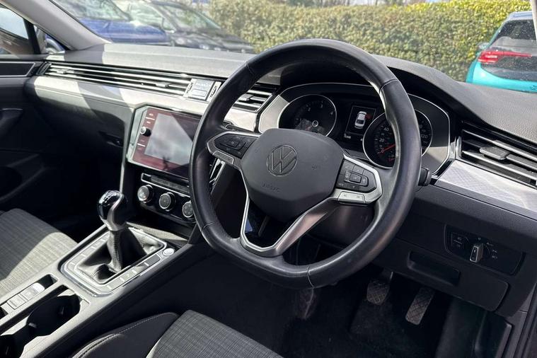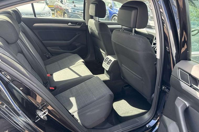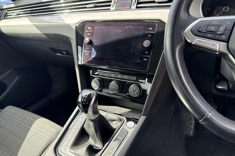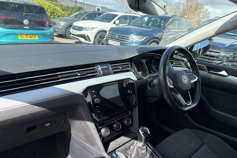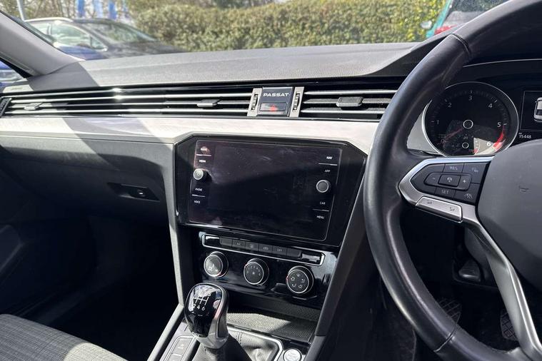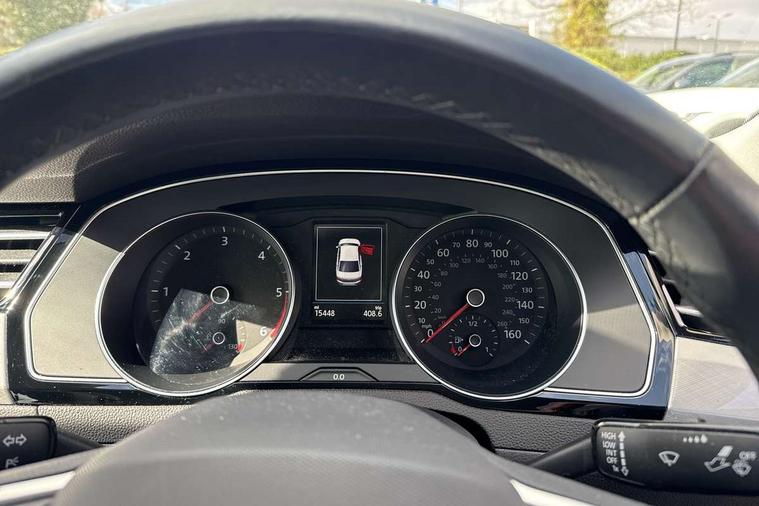 Adaptive cruise control including Front Assist, radar sensor controlled distance monitoring system, City emergency braking system, Driver alert system, Driver profile selection, Exterior temperature gauge with frost alarm, Lane assist, Low washer fluid warning light, Multifunction computer includes visual gear, One touch indicator turn signal, Proactive occupant protection, Remote tailgate unlocking, Security and service including e-call, Speed sensitive power steering, Speedo and rev counter, electronic odometer, trip, service interval display and fuel gauge, Start/Stop function, Traffic jam assist, Warning buzzer and light for front seatbelts unfastened, Wireless app connect, Battery regeneration during braking, Diesel particulate filter, Misfuel prevention device, Aerial for radio integrated into rear windscreen, DAB Digital radio receiver, Auto dimming interior rear view mirror, Automatic headlights with dusk sensor, Automatic leaving home and manual coming home lighting functions, Black radiator grille with chrome louvres, Body colour bumpers, Body colour door handles, Body coloured door mirrors with intergrated indicators, Chrome side window surrounds, Electrically adjustable and heated door mirrors, Front and rear electric windows, Fully galvanised body, Gloss black finish on B pillar, Heated rear window, High level 3rd brake light, LED rear lights, LED rear number plate lights, Rain sensor, Warning lights for open tailgate and doors, White instrument lighting, Windscreen wipers/ intermittent wipe + 4 position delay, 12V socket in front centre console, 12V socket in luggage compartment, 60:40 split folding rear seat with backrest, Driver's door storage compartment for 1.0 litre bottle, Front + rear carpet mats, Front and rear interior lighting with delay and dimming function, Front centre armrest with storage compartment and two rear air vents, Front cupholders x2 with covers, Front passenger storage compartment for 1.5 litre bottle, Height adjustable rear seat head restraints (x3), Height/reach adjust steering wheel, Illuminated vanity mirrors, Isofix child seat preparation, outer rear seats, Load lashing points x 4 in luggage compartment, Load through provision, Lockable, illuminated, cooled glovebox, Luggage compartment lighting, Rear seat centre armrest with storage compartment, Storage compartment in rear doors, Storage compartment in roof console with cover, Discover navigation pack - Passat, 3x3 point rear seatbelts, ABS (Anti locking brake system) includes BAS (Brake assist) and EBD (Electronic brake pressure distribution), Automatic post collision braking, Disc brakes front and rear, Door open warning reflectors, Driver/Front Passenger airbags, Drivers and front passengers safety optimised head restraints, longitudinal and height adjustable, Drivers knee airbag, Electronic parking brake with auto hold, First aid kit, Front and rear passenger curtain airbags, Front passenger airbag deactivation switch, Front side impact airbag, Height adjustable front 3 point seatbelts + pretensioners, Hill hold function, Pre crash preventive occupant protection, Rear seat side impact airbags, Rigid safety cell with front and rear crumple zones, Tyre pressure loss indicator, Volkswagen roadside assistance, Warning light for rear seat belts if unfastened, Alarm with interior protection and deactivation via infotainment system, Electronic engine immobiliser, Chrome air vent and instrument surround, Cross hatch decorative inserts in dash and door panels,