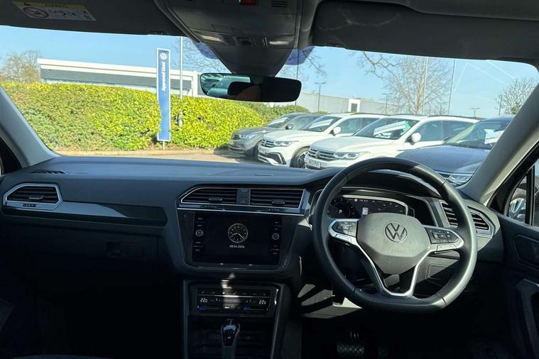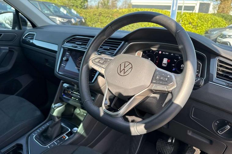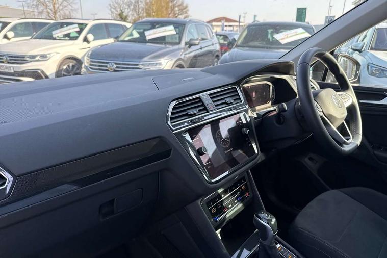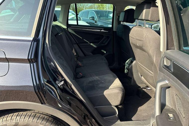 Adaptive cruise control ACC stop and go including speed limiter, App-Connect incl. App-Connect Wireless for Apple CarPlay and Android Auto, Bluetooth phone integration system, Distance control assist, Driver alert system, Driver profile selection, Dynamic road sign display, eCall emergency call system, Electromechanical speed sensitive power steering, Engine start/stop button, Lane keeping system Lane Assist, Lights on warning, Motorised electric tailgate operated via key fob, drivers door and foot movement under tailgate, Multifunction front facing camera, Outside temperature display, Premium multifunction display with multi colour display, Remote control boot opening, Rev counter, Revision / skills operating concept travel assistant, Service interval indicator, Speed limit display, Start/stop system with regenerative braking, Tailgate/trunk lid unlocking from outside, Trip computer, Warning sound and light for doors and tailgate open, Battery regeneration during braking, XDS electronic differential lock for improved traction and handling, 4 X 20 watt output, 8 Speakers, Diversity antenna for FM reception, Radio, SD card slot, Simultaneous pairing of 2 compatible mobile devices, SMS functionality - read, compose and send SMS messages using touch-screen display, Title and cover art display, USB C ports, Aluminium door sill protectors, Auto dimming interior rear view mirror, Automatic headlight control system, Body colour door handles, Body coloured bumpers, Body coloured door mirrors with integrated indicators, Coming/leaving home lighting function, Dynamic headlight range control, Front and rear electric windows, Heated rear window, High level 3rd brake light, IQ light-Adv high beam, Dynamic light assist for LED matrix headlamp+LED separate DRL+DCL, dark red rear LED tech, Poor weather light+ cornering light, Laminated safety glass windshield, heat and sound insulating, LED rear number plate lights, Poor weather light and cornering light, Privacy glass for rear side windows and rear window, Rain sensor windscreen wipers, Rear exhaust tailpipe, Rear fog lamp, Rear side wing doors, Rear windscreen washer and wiper with interval delay, Side and rear windows in heat insulating glass, Tilting and sliding panoramic sunroof with rear panoramic sunroof, Trailer Stability Programme, Windscreen wipers/ intermittent wipe + 4 position delay, 12V outlet in center console rear and in luggage compartment, 12V outlet in front and tray, 2 cup holders in front, 2 LED front reading lights, 2 LED rear reading lights, 3 bench rear seats in 2nd row, 3 rear headrests, 4 load lashing points, 40:20:40 split folding rear seats, Air Care Climatronic 3 zone automatic climate control with enhanced air filter and controls in the rear, Backrest release for left front seat, Climate control unit rear with touch function, Door and side trim panel in foam film and woven fabric, Front centre armrest, Front footwell illumination, Front seats head restraints (x-adjustment), Height adjustable front seats, Height/reach adjust steering wheel, Instrument lighting white adjustable panel illumination, Interior light with delay, Isofix Preparation 2 Rear child seats, Leather gear knob, Lockable cooled glovebox, Luggage compartment lighting, Luggage net, Rear bench seat asymetrically split folding, longitudinally movable and folding with load-through hatch and center armrest, Remote unlocking for rear seat backrest, Removable luggage cover, Removable rear headrests, Safety optimised front head restraints, Single front passenger seat, Sliding/reclining rear seats, Standard rear seat release, Storage compartment in driver's door, Storage compartment in passenger's door, Storage compartment in rear doors, Storage compartments in luggage area left and right, Storage tray on dashboard, Sun visors with illuminated vanity mirrors, Top front comfort seats, Variable boot floor, height adjustable and removable, Easy open and close pack with safelock - Tiguan, 3 point seat belt for centre rear seats, 3 point seat belts with seat belt pretensioners for the outer rear seats, Active bonnet, Curtain airbags for front and rear passengers, Driver/Front Passenger airbags, Drivers knee airbag, Electronic parking brake with auto hold, Electronic Stability Control with driver steering recommendation, ABS, ASR, EDL, EDTC and trailer stabilization, Front assist with autonomous emergency braking (for Adaptive Cruise Control ACC up to 130 mph), Front disc brakes, Front passenger airbag deactivation, Front side airbags, Height adjustable front 3 point seatbelts + pretensioners, Hill hold control, Manual child proof rear door locks, Pedestrian monitoring system, Power assisted brakes, Proactive passenger protection system in combination with front assist, Rear disc brakes, Rigid safety cell with front and rear crumple zones, Two tone horn, Warning sound and light for front seat belts if unfastened, Anti theft alarm system with interior monitoring, backup horn and towing protection, Anti theft wheel bolts, Central locking system with safelock radio remote control and 2 remote control folding keys, Electronic engine immobiliser, Tool kit,