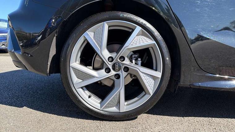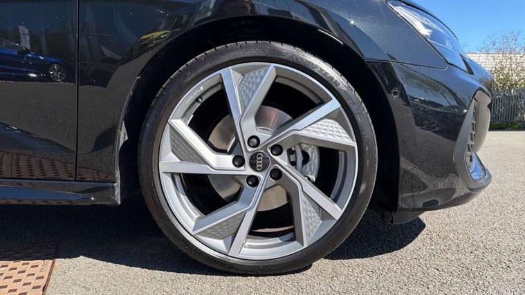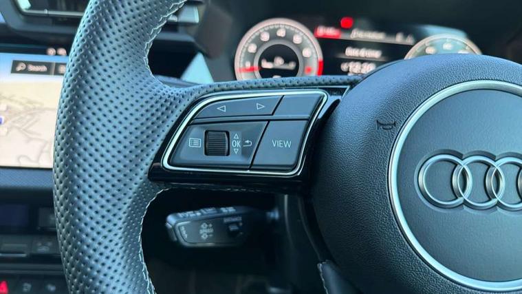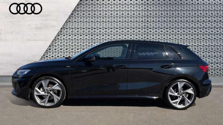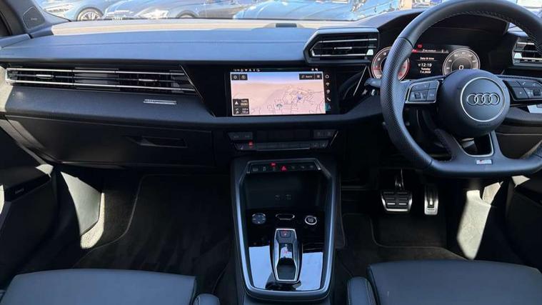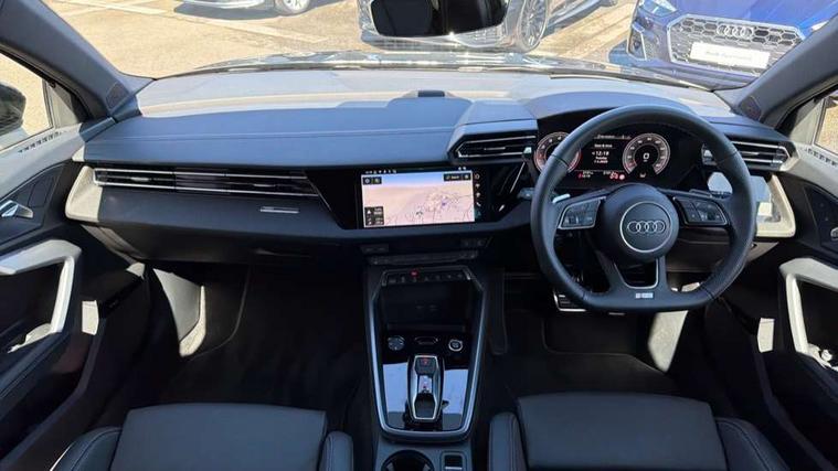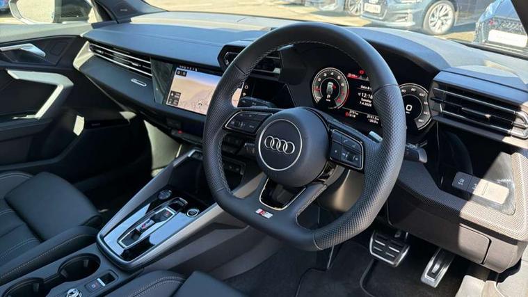 Adjustable speed limiter, Audi drive select, Audi smartphone interface with app store includes wireless Apple carplay, Android auto and Amazon alexa integration, Audi virtual cockpit plus - 12.3" full HD resolution dynamic digital instrument cluster, Automatic start/stop system with recuperation, Bluetooth interface, Camera based traffic sign recognition, Collision avoidance assistant, Cruise control, Distraction and Fatigue warning, e-Call (emergency call), Electromechanical power speed sensitive steering, Emergency assist, Lane departure warning system, MMI Navigation Plus with high resolution 10.1" colour touch screen display, Park Assist with parking system Plus, Service indicator, Tailgate, Trip computer, Voice control system with natural language interaction, Sports suspension, Audi Phonebox light with wireless charging, Audi sound system - 10 loudspeakers including centre loudspeaker and subwoofer, DAB Digital radio, USB ports with charging function in the rear, Acoustic glass windscreen, All weather light, Anthracite grey Audi rings (front and rear), Audi beam uses LEDs to project the Audi logo onto the ground as you exit your A3, Auto dimming frameless rear view mirror, Automatic dynamic range control, Black accents front and rear bumpers, Black accents in the area of the Audi single frame grille, Black accents window trims strips, Dipped beam, main beam, position light and turning light, Electrically adjustable/heated/folding/auto dimming door mirrors with integrated LED indications + kerb view function for passenger side, Exterior model badging, Front and rear side air inlets in grained matt black with dark liquid chrome frame, Front electric windows, Heat insulating glass windscreen, Illuminated door sills with aluminium inserts at the front with S logo, Intersection light, LED 3rd brake light, LED brake lights, LED daytime running x3, LED headlights with LED rear lights and dynamic rear indicators, LED rear number plate lights, LED reverse light, LED tail lights, Light and rain sensors, Manoeuvring light, Motorway light, Privacy glass - dark tinted rear window, rear door and side windows, Rear diffuser and grill in grained matt black with inlay in dark liquid chrome, Rear electric windows, Rear side wing doors, Rear wiper, S roof spoiler, Static cornering light, 12V socket and storage compartment in front centre console, 3 seat bench in 2nd row, 3 spoke flat bottomed leather multifunction sport steering wheel with gear shift paddles, 3-zone deluxe automatic air conditioning, 4 way electrically adjustable lumbar support for driver and front passenger, 40/20/40 split folding rear seat bench, Black cloth headlining, Black front and rear floor mats, Front and rear centre armrest in artificial leather with contrasting stitching on armrests and instrument panel, Front and rear headrests, Heated front seats, Height and reach adjustable steering wheel, Manual boot compartment lid, Manually adjustable front seats, Rear centre armrest with cupholder, S badging on the steering wheel, Seat side bolsters, Single front passenger seat, Stainless steel pedals and front footrest in black, Twin leather upholstery with front sports seats S embossed logo, Aluminium interior elements pack - A3, 3x3 point rear seat belts, Driver and front passenger airbag with passenger airbag deactivation, Electronic Stabilisation Control (ESC) including ABS, ASR and EDL, First aid kit with warning triangle and 2 safety vests, Front side airbags with head airbags and interaction airbag, Hill hold assist, Pre-sense front with pedestrian and cyclist detection, Seatbelt monitoring, Tyre pressure loss indicator, Anti theft alarm, Anti-theft wheel bolts, Electronically operated child locks, Immobiliser, Remote central locking with safelock, Black dashboard,