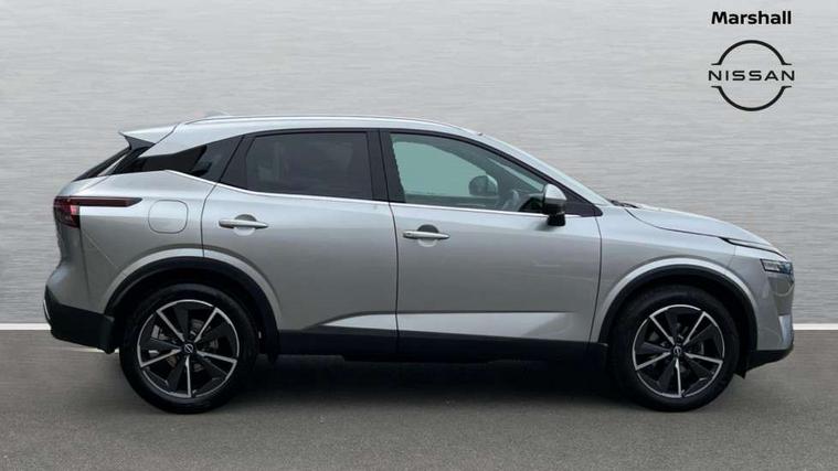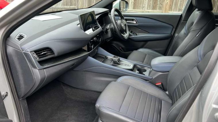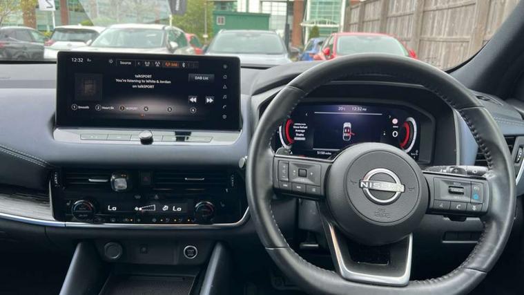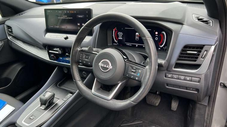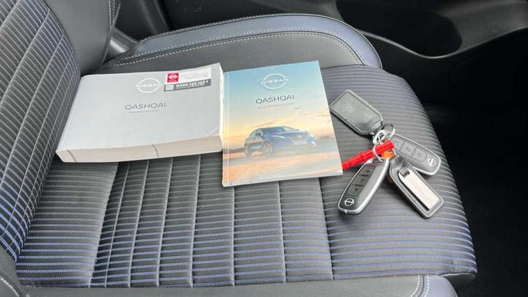 Advanced windscreen head up display, Android auto/Apple CarPlay (Wired), Blind spot warning, Drive modes (sport, normal, eco), Electric speed sensitive power steering, Emergency and breakdown call, Front and rear parking sensors, Full Digital 12.3" TFT Digital Combimeter, Google maps services - search, weather, 3D maps and Google street view, Hands free power tailgate, Idle stop/start system, Intelligent around view monitor, Intelligent Cruise control (ICC), Intelligent driver alert system, Intelligent forward collision warning, Intelligent lane intervention, Lane departure prevention, Lane departure warning system, Lane keep assist, Moving object detection, Nissan connect 12.3 inch touchscreen infotainment system, Nissan connect navigation, ProPilot, Push button starter, Rear cross traffic alert, Rear view camera, Remote control services - door locks, lights, horn and car locator, Telematics - notifications and connectivity services, TomTom live traffic services, Traffic jam pilot, Traffic sign recognition with legal speed adjustment, Trip computer, Virtual personal assistant and firmware over the air capability, Wireless apple carplay, Wireless charging pad, 6 speakers, AM/FM audio system with DAB, Bluetooth audio streaming, Front USB connections (Type-A and Type-C), Rear USB charging only ports (Type-A and Type-C), Auto dimming rear view mirror, Auto rear wiper when reversing, Automatic hazard signal with emergency stop signal, Body colour mirror caps, Body coloured door handles, Bodyside mouldings, Chrome side window finisher, Door handle with button, Electric auto folding door mirrors, Electrically adjustable and heated door mirrors with LED turn indicator, Follow me home headlights, Front and rear LED turning signals, Headlights auto levelling system, Intelligent auto headlights, LED daytime running lights, LED headlights with adaptive driving beam, LED rear lights, One touch front and rear electric windows with remote opening and closing, Partially body coloured bumpers, Privacy glass, Rear bumper with graphite insert, Rear reversing light (bulb lighting), Rear roof spoiler, Rear side wing doors, Rear styling plate, Shark fin antenna, Splash free rain sensing wipers, Super UV and infrared cut glass, Thermaclear heated windscreen, Three blink turn signal, 12v power socket in dashboard and luggage, 2x Rear coat hooks, 3 bench rear seats in 2nd row, 3 rear headrests, 4 folding assist grip, 6 Luggage hooks - 4 on floor, 2 on side, 60/40 split folding rear seat bench, Ambient lighting around centre console, Ambient lighting in front doors, Centre console storage tray, Chrome interior door handles, Cloth/syntech leather monoform upholstery, Dark black/blueish PVC wrapping, Dark headlining, Driver and front passenger sunvisors with illuminated vanity mirrors, Driver seat back pocket, Dual zone automatic climate control with pollen filter, Electrically adjustable driver seat, Electrically adjustable lumbar support for driver, Front and rear door storage, Front centre console and armrest, Front cupholders x 2, Front door with bottle holders, Glovebox with light, Hard trunk cover, Heated front seats, Heated steering wheel, Height adjustable driver's seat, Height adjustable front headrests, Height adjustable passenger seat, Leather steering wheel, Luggage board system, Luggage space lighting, Manual lumbar support on passenger seat, Manually adjustable passenger (slide recline + lifter), Multifunction steering wheel, Passenger seat back pocket, Rear armrest with 2 cupholders, Rear door bottle holders, Single front passenger seat, Soft PVC kneepad, Steering wheel gearshift paddles, Steering wheel switches, Tilt/telescopic adjustable steering wheel, Two rear isofix child seat anchorage points with top tether, Welcome light and doors with console tray ambient lighting, Glass roof pack with roof rails - Qashqai, 3x3 point rear seatbelt pretensioners + load limiters, ABS with EBD and brake assist, Active brake limited slip, Auto hold function, Child locks on rear doors, Curtain and front side, far side airbags, Driver and passenger airbags, Driver, passenger and 2nd row rear seat belt reminder, Electronic parking brake, Front seatbelt pretensioners + load limiters, Height adjustable front seatbelts, Hill start assist, Intelligent blind spot intervention, Intelligent front emergency braking with pedestrian, cyclist recognition and junction assist, Intelligent rear automatic braking, Tyre pressure monitoring system, Vehicle dynamic control, Capless fuel filler, Engine immobiliser, Intelligent Key, Remote central door locking with deadlocking, Thatcham Cat.1 alarm, Interior instrumental panel C finisher, 19" Alloy wheels, Tyre puncture repair kit,