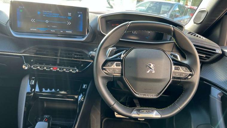Blind spot monitoring, Bluetooth telephone facility, Connected 3D navigation, Driver attention warning, e-Toggle driving selector, Exterior temperature indicator with ice warning, Lane keep assist, Mirror screen with mirror link, apple carplay and android auto, Multi function trip computer, PEUGEOT i-Cockpit with 10" capacitive colour touchscreen, PEUGEOT i-Cockpit with compact steering wheel, PEUGEOT i-Cockpit with configurable 3D headup instrument panel, PEUGEOT SOS and assistance, Smart phone docking station, Smartphone charging plate, Speed limit recognition and recommendation, Start/stop system, Visio Park 1 with 180 degree Colour reversing camera, 2 front USB socket with USB-C, 2 USB sockets in rear, DAB Radio (Digital Audio Broadcasting), Voice recognition for radio, navigation and telephony features, 2 X Rear number plate lights, Acoustic windscreen, Automatic front windscreen wipers, Automatic hazard light activation upon heavy brake application, Black diamond roof, Black front wing trim with gloss black detail and GT badging, Body coloured exterior door handles, Chrome Lion Badge front and rear, Dark tinted rear side and tailgate windows, Diamond black mirror shells, Diamond black rear spoiler (roof), Electric, heated, and power folding door mirrors, Frameless electrochrome interior rear view mirror, Front bumper - Silver lower trim, Full LED headlights with smartbeam assist, Gloss black finish on B pillar, Gloss black longitudinal roof rails, Gloss black rear cluster connecting strip, Gloss black roof bars, Gloss black window surround, GT model designation badging on tailgate, Headlights left on audible warning, LED daytime running lights with 3 claw headlight with distinctive tooth design, LED front fog lamps with remote cornering function, LED side indicator lights integrated into door mirrors, LED third brake light, Model designation badges front and rear, One touch electric front/rear windows with pinch protection, Radiator grille - Dark chrome chequered and gloss black edge trim, Radiator grille - gloss black top edge trim, Rear full LED 3D peugeot signature claw effect lights with daylight function, Rear reversing lights, Rear side wing doors, Rear windscreen wiper triggered automatically in reverse gear, Stainless steel door sill scuff plates, Tailgate with heated rear windscreen and wiper blade, Trailer Stability Programme, Twin chromed exhaust pipes, Variable front intermittent wipers, Welcome lighting, Wheel arch extensions, 1/3 to 2/3 split folding rear seats, 12v power outlet - front, 12V socket, 3 seat bench in 2nd row, 8 Colour personalisable ambient lighting, Aluminium pedals, Automatic air conditioning with pollen and active carbon filter, Central front armrest with storage compartment, Driver and front passenger sport seats, Electric power steering with reach and rake adjustable steering column, Front and rear carpet mats in black with lime green stitch detail, Front centre armrest, Front LED interior light with 2 reading spotlights and rear interior light with timer, Front passenger seat manual adjustment - height, longitudinal and back rest angle, Heated front seats, High centre console, ISOFIX child seat mounting points on passenger seat, Lime green contrast stitching to front centre console, door panels and dashboard facia, Mistral full-grain perforated leather steering wheel with Lime Green stitch detail and satin chrome 'GT' emblem, Modular boot floor, Multifunction steering wheel, Paddle shifts, Piano keys: Gloss black and chrome toggle switches to access main functions of the vehicle and touchscreen functions, Roof lining - Mistral black, Seatbelt unfastened on the move audible and visual alert for front and rear seats, Single front passenger seat, Switch for Push Button Start finished in black with chrome surround, Visibility pack - 2008, 2x 2nd row ISOFIX child seat mountings, ABS (Anti-lock Braking System) with EBD (Electronic Brakeforce Distribution) and EBA (Emergency Braking Assistance), Acoustic vehicle alerting system, Active safety brake with night function/cyclists/pedestrians, Adaptive driver and front passenger airbags with passenger airbag deactivation function, Child locking functionality on rear doors, Driver/front passenger side airbags, Electric parking brake, ESP (Electronic Stability Program) + Hill Start Assist, Front and rear curtain airbags, Front and rear disc brakes, Front and rear three-point retractable seatbelts, with force limiters, Front optimised safety headrests and rear retractable headrests (x3), height adjustable, Tyre pressure sensor, Alarm system with anti-lift sensor, Automatic door locking when moving off, Deadlocks, Electronic code immobiliser, Exterior door lock x1 (Left-hand or passenger’s side), Remote central locking, Carbon effect Dashboard, front and rear door panel finish, 17" Salamanca diamond cut alloy wheels,
