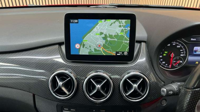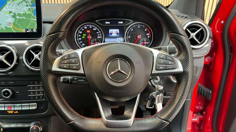 8" colour display screen, Attention assist, Collision prevention assist, Direct steering, Drive mode selector, External temperature gauge, Instrument cluster with 4.5-inch TFT colour display, Low fluid warning light, Mercedes-Benz emergency call, Multi function trip computer, Park assist pilot with front and rear park assist, Reversing camera, Service indicator (ASSYST PLUS), Smartphone integration with Apple CarPlay, Diesel particulate filter, Lowered suspension, Bluetooth audio streaming, USB port, Adaptive brake lights, Aluminium front door sills, AMG body styling, Auto dimming interior and driver's door mirror, Automatic headlamp activation, Body colour bumpers, Body colour door handles, Door sill plates with "Mercedes-Benz" lettering, Electric folding door mirrors, Electric front/rear windows/one touch operation, Electric heated + adjustable door mirrors, Electric sliding panoramic glass sunroof, Heated rear window with timer, Heated windscreen wash system, High beam assist, LED daytime running lights, LED Headlights, LED rear lights, Rain sensor windscreen wipers, Rear wiper, Twin exhaust tailpipes with chrome finishers, 1/3 to 2/3 split folding rear seats, 12 colour Ambient lighting, 12V socket in rear centre console, 2 Position luggage floor, 3 spoke flat bottomed sports leather multi function steering wheel with red contrast stitching, 4 way adjustable lumbar support, AMG brushed stainless steel sports pedals with rubber studs, Auto Mercedes-Benz child seat recognition sensor, Black roof liner, Centre console with cupholders, Door centre panels in dinamica, Driver and passenger underseat storage box, Driver/passenger sunvisors and illuminated vanity mirrors, Dual zone automatic climate control, Electric front seats with memory function, Footwell lights, Front headrests, Heated front seats, Height adjustable headrests, Height/reach adjustable steering column, Isofix rear child seat fastenings, Leather trimmed gearshift with chrome inserts, Load compartment cover, Luggage compartment lighting, Reading lights, Rear armrest with 2 cupholders and load through provision, Rear headrests, Red stitching on steering wheel, Seat cushion angle adjustment, Sliding front centre armrest with storage compartment, Sliding rear seats, Storage compartment in centre console, Storage compartment in front doors, 5 x 3 point seatbelts, ABS with Brake Assist, Brake calipers with Mercedes-Benz lettering + perforated brake discs, Child proof door locks, Crash responsive emergency lighting, Drivers knee airbag, Dual stage driver/passenger airbags, Electronic parking brake, ESP with ASR, Front and rear seatbelt reminder, Front passenger airbag deactivation, Front seat side impact airbags, Hill start assist, Seat occupancy sensor, Tyre pressure monitoring system, Warning triangle and first aid kit, Window airbags, Alarm system/interior protection/immobiliser, Keyless Go access/ignition system, Locking wheel bolts, Remote central locking, Air vents in Silver-chrome, Carbon fibre dash trim, Tirefit sealant with electric air pump,