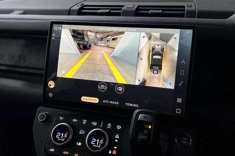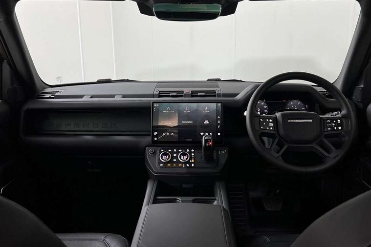 1 x USB-C (power only) & 1 x USB-C (power & data) in Row 1, 2 x USB-C in Row 2, 11.4" touchscreen, 2 x USB-C in Row 3, 360 degree parking aid, 3D Surround Camera with 360 View, 180 Rear View, Front Traffic Detection, Forward Vehicle Guidance, Tow Hitch Assist and clear sight Ground View, Adaptive cruise control, Android Auto, Apple CarPlay, Blind spot assist, Bluetooth system, Brake pad wear indicator, Clear exit monitor, Connected navigation pro, Driver attention monitoring system, Electric power assisted steering (EPAS), Interactive driver display, Lane keep assist, Push button start, Rear collision monitor, Rear traffic monitor, Traffic sign recognition with adaptive speed limiter, Trip computer, Wireless device charging, 8 speed automatic transmission, All wheel drive system, Twin speed transfer box, DAB Radio (Digital Audio Broadcasting), Meridian 700w surround sound audio system with 15 speakers, Pivi pro connected, Automatic headlight levelling, Automatic headlights, Black exposed rear recovery eyes, Body coloured bonnet, Darkened LED tail lights, Electric heated/power fold door mirrors with approach lights and auto dimming driver side, Electric windows with one touch open/close and anti-trap, Follow me home lighting, Front fog lights, Heated rear window with timer, Heated windscreen, LED 3rd brake light, LED tail lights, Matrix LED headlights with signature DRL, Privacy glass, Puddle lights, Rain sensing windscreen wipers, Rear fog lights, Rear side wing doors, Rear wiper, Side hinged tailgate, Sliding panoramic roof, Standard tail door, Trailer stability assist, X-Dynamic badge, 12V power socket in loadspace, 2 seat bench in 3rd row, 3 seat bench in 2nd row, Alpine lights, Configurable cabin lighting, Durable rubber cabin flooring, Durable rubber loadspace flooring, Electric reach + rake adjustable steering column, Electrically adjustable steering column, Extended leather upgrade, Footwell lights, Front head restraints, Front passenger isofix child seat attachment, Heated steering wheel, Loadspace cover, Loadspace Hook, Multifunction steering wheel, No flat load floor storage, Overhead stowage for sunglasses, Rear headrests, Rear ISOFIX, Rear reading lights, Single front passenger seat, Soft close tail door, Storage glovebox, Sunvisors with illuminated vanity mirrors, Twin front cupholders, Air suspension pack - Defender SE/HSE/X-Dynamic SE/X-Dynamic HSE, Non-smoker package, Online pack with data plan - Defender, 7 three point seatbelts, ABS, Brake hold function, Cornering brake control (CBC), Customer configurable autolock, Driver and passenger airbags, DSC - Dynamic Stability Control, EBD - Electronic brakeforce distribution, Electric parking brake (EPB), Emergency brake assist, Emergency braking, ESP + traction control, Front airbags with passenger seat occupant detector, HDC - Hill descent control, Hill launch assist, Low traction launch, Power operated child locks, Remote for (e-Call, Optimised assistance call, InControl app, Climate, beep and flash and door), RSC - Roll stability control, Seat belt reminder, TPMS (Tyre pressure monitoring system), Alarm, Immobiliser, Intrusion sensor, Keyless entry, Locking wheel nuts, Secure tracker pro,