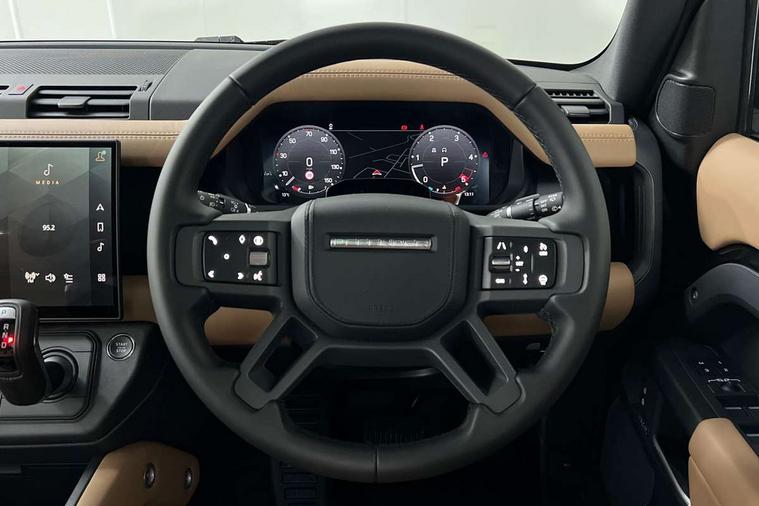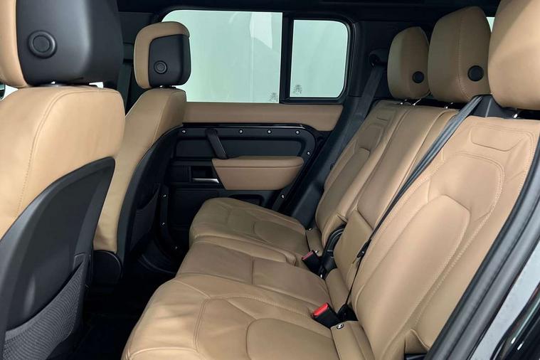 1 x USB-C (power only) & 1 x USB-C (power & data) in Row 1, 2 x USB-C in Row 2, 11.4" touchscreen, 2 x USB-C in Row 3, 360 degree parking aid, 3D Surround Camera with 360 View, 180 Rear View, Front Traffic Detection, Forward Vehicle Guidance, Tow Hitch Assist and clear sight Ground View, Adaptive cruise control, Android Auto, Apple CarPlay, Blind spot assist, Bluetooth system, Brake pad wear indicator, Clear exit monitor, Connected navigation pro, Driver attention monitoring system, Electric power assisted steering (EPAS), Interactive driver display, Lane keep assist, Push button start, Rear collision monitor, Rear traffic monitor, Traffic sign recognition with adaptive speed limiter, Trip computer, Wireless device charging, 8 speed automatic transmission, All wheel drive system, Twin speed transfer box, DAB Radio (Digital Audio Broadcasting), Meridian 700w surround sound audio system with 15 speakers, Pivi pro connected, Automatic headlight levelling, Automatic headlights, Black exposed rear recovery eyes, Body coloured bonnet, Darkened LED tail lights, Electric heated/power fold door mirrors with approach lights and auto dimming driver side, Electric windows with one touch open/close and anti-trap, Follow me home lighting, Front fog lights, Heated rear window with timer, Heated windscreen, LED 3rd brake light, LED tail lights, Matrix LED headlights with signature DRL, Privacy glass, Puddle lights, Rain sensing windscreen wipers, Rear fog lights, Rear side wing doors, Rear wiper, Side hinged tailgate, Sliding panoramic roof, Standard tail door, Trailer stability assist, X-Dynamic badge, 12V power socket in loadspace, 2 seat bench in 3rd row, 3 seat bench in 2nd row, Alpine lights, Configurable cabin lighting, Durable rubber cabin flooring, Durable rubber loadspace flooring, Electric reach + rake adjustable steering column, Electrically adjustable steering column, Extended leather upgrade, Footwell lights, Front head restraints, Front passenger isofix child seat attachment, Heated steering wheel, Loadspace cover, Loadspace Hook, Multifunction steering wheel, No flat load floor storage, Overhead stowage for sunglasses, Rear headrests, Rear ISOFIX, Rear reading lights, Single front passenger seat, Soft close tail door, Storage glovebox, Sunvisors with illuminated vanity mirrors, Twin front cupholders, Air suspension pack - Defender SE/HSE/X-Dynamic SE/X-Dynamic HSE, Non-smoker package, Online pack with data plan - Defender, 7 three point seatbelts, ABS, Brake hold function, Cornering brake control (CBC), Customer configurable autolock, Driver and passenger airbags, DSC - Dynamic Stability Control, EBD - Electronic brakeforce distribution, Electric parking brake (EPB), Emergency brake assist, Emergency braking, ESP + traction control, Front airbags with passenger seat occupant detector, HDC - Hill descent control, Hill launch assist, Low traction launch, Power operated child locks, Remote for (e-Call, Optimised assistance call, InControl app, Climate, beep and flash and door), RSC - Roll stability control, Seat belt reminder, TPMS (Tyre pressure monitoring system), Alarm, Immobiliser, Intrusion sensor, Keyless entry, Locking wheel nuts, Secure tracker pro,