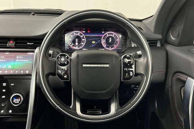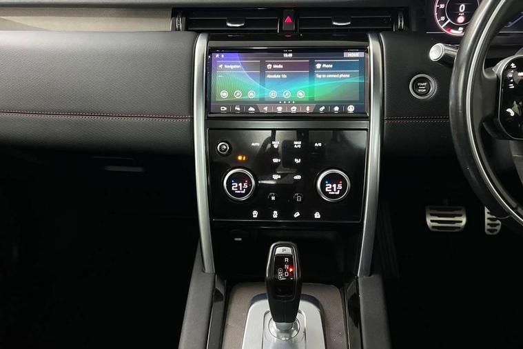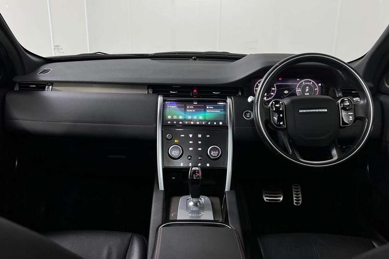 Android Auto, Apple CarPlay, Blind spot assist, Connected navigation pro, Driver condition monitor, InControl remote premium, Interactive driver display, Lane keep assist, PAS, Powered tailgate/boot lid, Service interval indicator, Traffic sign recognition with adaptive speed limiter, Trip computer, All terrain progress control, Coil suspension system, Diesel particulate filter, Terrain Response 2, Bluetooth connectivity including audio streaming, Digital Audio Broadcast radio-DAB, Steering wheel mounted audio controls, Automatic headlight levelling, Door mirror memory, Electric front/rear windows, Power fold, auto-dimming, heated door mirrors with approach lights, Rain sensing windscreen wipers, Rear wiper, Black gearshift paddles, Bright metal pedals, Front passenger isofix child seat attachment, Illuminated vanity mirrors, Third row dual adjustable individual seats, Tilt/reach adjustable steering wheel, Online pack - Discovery sport, 3 point seatbelts on all seats, ABS, Brake hold function, Collision mitigation braking system, Cornering brake control (CBC), Driver/Front Passenger airbags, Drivers knee airbag, Electronic brake force distribution, Electronic parking brake, ESP + traction control, Hill descent control, Hill launch assist, Pedestrian airbag system, Roll stability control, Side and curtain airbags for front and 2nd row seats, Tyre pressure monitoring system, Battery Back Up System (BBUS) with tilt sensor, Intrusion sensor, Locking wheel nuts, Centre stack rails in noble chrome,