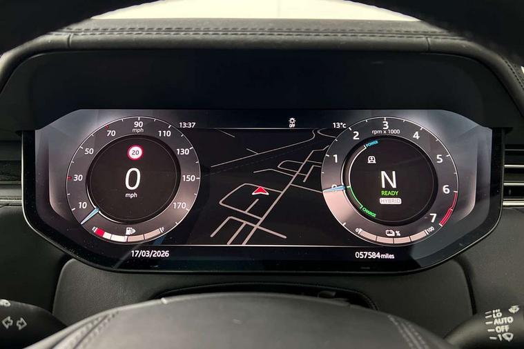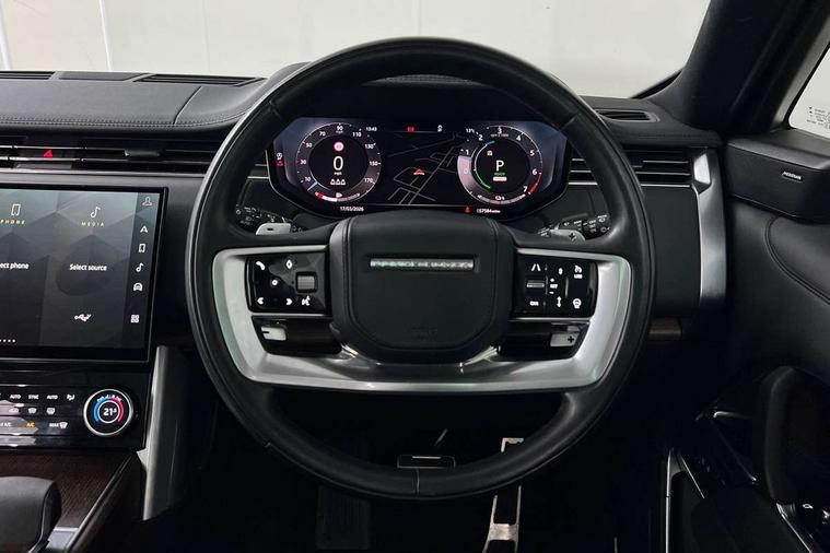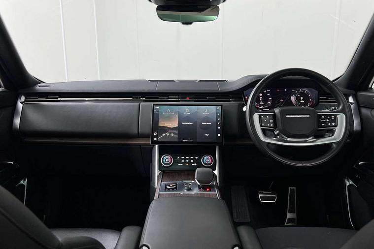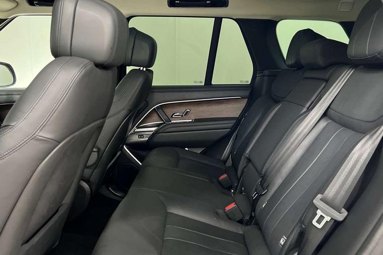 13.1" Touchscreen, 3D surround camera inc frwd traffic detection, vehicle clearance guidance, 3D view, clearsight ground view, manoevure light, 360 parking aid, wade sensing, Adaptive cruise control with steering assist, All Terrain Info Centre, All wheel steering, Android Auto, Apple car play, Blind spot assist, Bluetooth connectivity streaming, Driver condition response, Eco mode, Electric power assisted steering (EPAS), Emergency call service, Interactive driver display, Lane keep assist, Powered gesture tailgate/boot lid, Rear collision monitor, Rear traffic monitor, Remote, Traffic sign recognition with adaptive speed limiter, Wi-Fi Enabled with data plan, Wireless device charging with phone signal booster, 7 kW onboard charger, 8 speed automatic transmission, Active damper technology system, Adaptive dynamics, All terrain progress control, All Wheel Drive (AWD), Automatic access height, Home charging cable 5m Mode 2 including plugs, Public charging cable 5m Mode 2 including plugs, Terrain Response 2 Auto, Twin speed transfer box, Digital Audio Broadcast radio-DAB, Pivi pro including smart settings, Connected navigation pro, nuance speech, USB socket, Acoustic laminated windscreen, Animated directional indicators, Automatic headlights, Automatic levelling headlights, Centre high mounted stop light, Electric windows with one touch open/close and anti trap, Flush deployable exterior door handles, Front and rear recovery eyes, Front fog lights, Headlamp power wash, Heated rear window, Heated washer jets, LED tail lights, Power fold, auto-dimming, heated door mirrors with approach lights, Rain sensing windscreen wipers, Range rover badge, Rear boot, Rear fog lights, Rear side wing doors, Rear wash/wipe, Side repeater indicators in mirror, Trailer stability assist, Winter wiper park position, 12V power sockets, 3 seat bench in 2nd row, Air quality sensor, Bright metal pedals, Cabin lighting, Customer configurable single point entry, Driver and passenger front seat armrests, Easy boot loading, Ebony Carpet, Front and rear cupholders, Front and rear grab handles, Front head restraints, Gearshift paddles, Heated steering wheel, Hook in load space, Loadspace light, Luggage tie down in loadspace, Multifunction steering wheel, Rear centre armrest, Rear head restraints, Rear ISOFIX, Single front passenger seat, Twin blade sunvisors with Illuminated vanity mirrors, Upper and lower glovebox, Online pack with data plan - Range Rover, 3x3 point rear seat belts, Anti-lock braking system (ABS), Brake hold function, Cornering brake control (CBC), Customer configurable autolock, DSC - Dynamic Stability Control, Electronic brake force distribution, Electronic parking brake, Electronic traction control, Emergency brake assist, Emergency braking, Front airbags with passenger seat occupant detector, Front side airbags, Hill descent control, Hill launch assist, Low traction launch, Occupant protection assist, Power operated child locks, Roll stability control, Tyre pressure monitoring system (TPMS), Immobiliser, Intrusion sensor and alarm, Keyless entry, Locking wheel nuts, Remote central locking, Noble chrome controls,