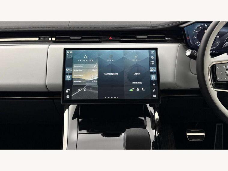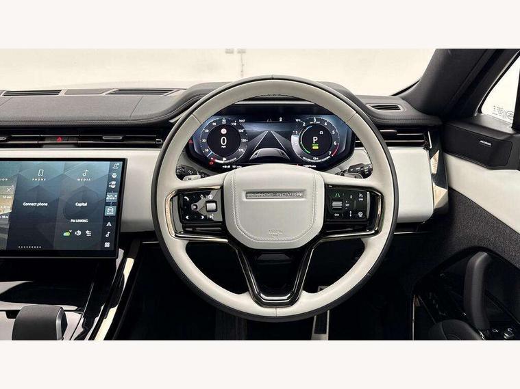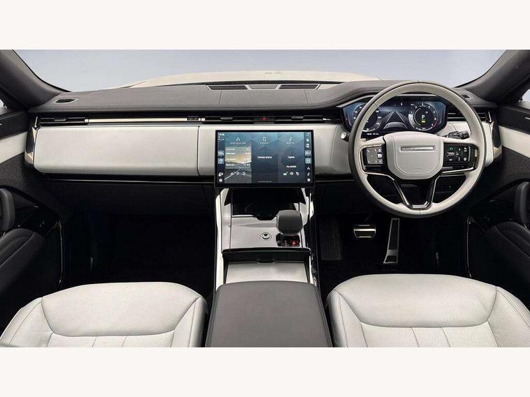 13.1" Touchscreen, 3D 360 degree surround camera with wade sensing, Adaptive cruise control with steering assist, Android Auto, Apple car play, Blind spot assist, Bluetooth connectivity streaming, Driver condition response, Eco mode, Front and rear parking aid, Interactive Driver display instrument cluster, Lane departure warning system, Lane keep assist, Push button start, Rear collision monitor, Rear traffic monitor, Remote, Traffic sign recognition with adaptive speed limiter, Trip computer, Wireless device charging, 8 speed automatic transmission, Adaptive dynamics, All wheel drive system, Automatic access height, Home charging cable, Public charging cable, Terrain Response 2, Twin speed transfer box, DAB Radio (Digital Audio Broadcasting), Incontrol protect - SOS emergency call with automatic collision detection, optimised assistance call and Incontrol remote app essential, Pivi pro connected, USB/aux input socket, Adaptive brake lights, Automatic headlight levelling, Automatic headlights, Centre high mounted stop light, Electric heated/power fold memory door mirrors with approach lights and auto dimming driver side, Electric windows with one touch open/close and anti trap, Flush deployable exterior door handles, Follow me home lighting, Front and rear recovery eyes, Headlight power wash, Heated rear window, Heated washer jets, Heated windscreen, Illuminated aluminium treadplates with Range Rover script, Integrated twin tailpipes, LED tail lights, Metal load space scuff plates, No badges, Rain sensing windscreen wipers, Rear animated directional indicators, Rear fog lights, Rear side wing doors, Rear wash/wipe, Remote window closing, Side repeater indicators in mirror, Trailer stability assist, Winter wiper park position, 3 seat bench in 2nd row, 60:40 seats with power recline and loadthrough, Air quality sensor, Automatic air recirculation system, Bright metal foot pedals, Centre console with armrest, Customer configurable single point entry, Driver's footrest, Easy boot loading, Ebony console door armrests and seatbelts, Electric adjustable steering column, Front and rear cupholders, Front door storage space, Front head restraints, Front map lights, Front seat back map pockets, Front stowage pocket, Front/rear passenger grab handles, Gearshift paddles, Heated steering wheel, Isofix child seat preparation, Loadspace cover, Loadspace Hook, Loadspace light, Loadspace mounting provisions, Lockable glovebox, Luggage tie-downs in loadspace, Multifunction steering wheel, Pollen filter, Power socket, Rear centre armrest, Rear head restraints, Rear ISOFIX, Single front passenger seat, Three 12V accessory power outlets, Upper secondary glovebox, Online pack with data plan - Range Rover Sport, 3 point seatbelts on all seats, Anti-lock braking system (ABS), Brake pre-fill technology, Configurable autolock, Cornering brake control (CBC), DSC - Dynamic Stability Control, EBD - Electronic brakeforce distribution, Electric parking brake, Electronic traction control, Emergency braking, Front seatbelt pretensioners, Front side airbags, Height adjustable front seatbelts, Hill descent control, Hill launch assist, Low traction launch, Occupant protection assist, Passenger seat occupant detector with front airbags, Power operated child locks, Roll stability control, Seatbelt warning, TPMS (Tyre pressure monitoring system), Immobiliser, Intrusion sensor, Keyless entry, Locking wheel nuts, Perimetric and volumetric anti theft alarm, Remote locking,