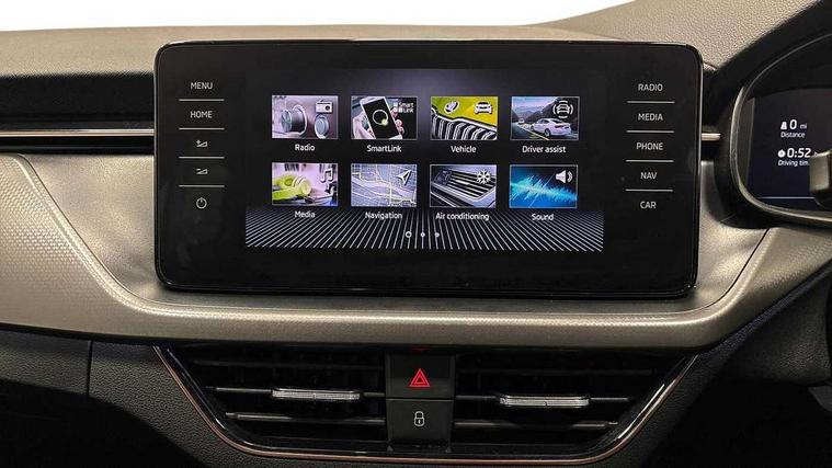 Amundsen satellite navigation with 9.2" glass colour touchscreen with virtual cockpit, web radio, Android Auto, Bluetooth system, Colour multifunction trip computer, eCall emergency system, PAS, Rain and light assist with auto dimming rear view mirror, Rear view camera, Speed limiter, Tailgate, Traffic sign recognition, Virtual cockpit, Voice control system, Wireless SmartLink for Apple Car Play, 2 USB - C ports, 8 loudspeakers, DAB Digital radio, 3rd brake light, Automatic headlamp activation with Coming home and Leaving home feature, Body colour door mirrors and handles, Chrome grille surround, Dimming rear view mirror with black frame, Electric folding door mirrors, Electrically adjustable and heated door mirrors, Front and rear electric windows, Front fog lights with cornering function, LED rear tail lights with dynamic indicators, Privacy glass, Rear side wing doors, Rear wiper, Tinted windows, 12V Accessory socket in centre console, 3 seat bench in 2nd row, Chrome inner door handles, Chrome on gear and handbrake lever, Chrome strip on the dash and door panel, Dual zone climate control, Front head restraints, Glasses storage in roof liner, Instrument cluster with chrome painted decor ring, ISOFIX for rear passenger seat, Leather gearknob and handbrake lever, Manual lumbar support for front seats, Net in centre console, Reading lights for driver and front passenger, Single front passenger seat, Sun visor with make up mirror for front passenger, Textile floor mats, Third rear headrest, Umbrella, 3x3 point rear seatbelts, Curtain airbags, Emergency call and proactive services, Front head and side airbags, Hill hold control, Manual rear child locks, One tone horn, Passenger airbag switch off function, Seat belt reminder for all seats, Alarm, Anti-theft wheel bolts, Keyless entry with start/stop button, Remote central locking with 2 remote folding keys, SAFE function for remote central locking, Latice grey decorative insert with copper hot stamping, Temporary space saver wheel,