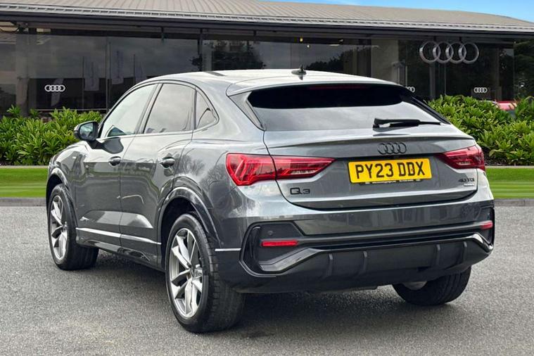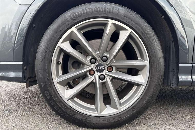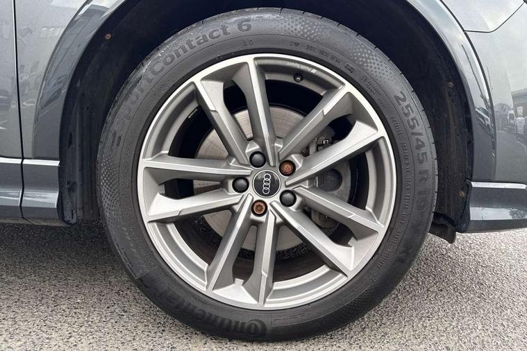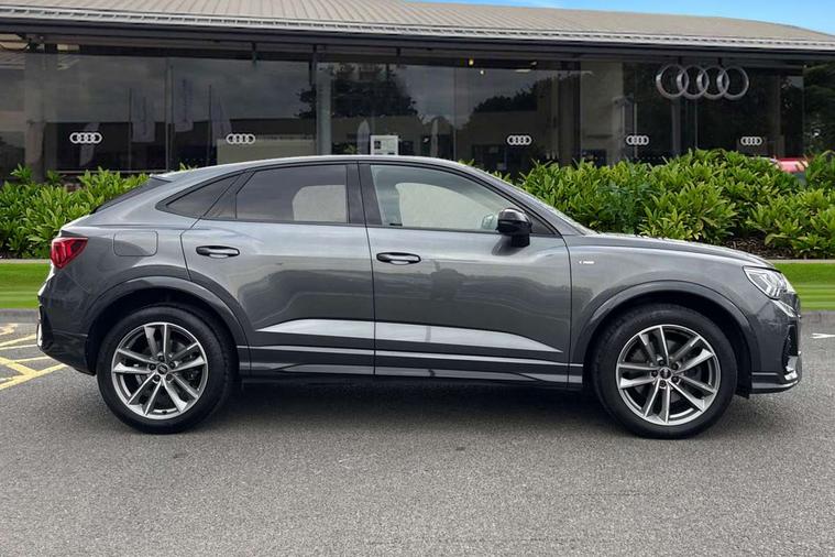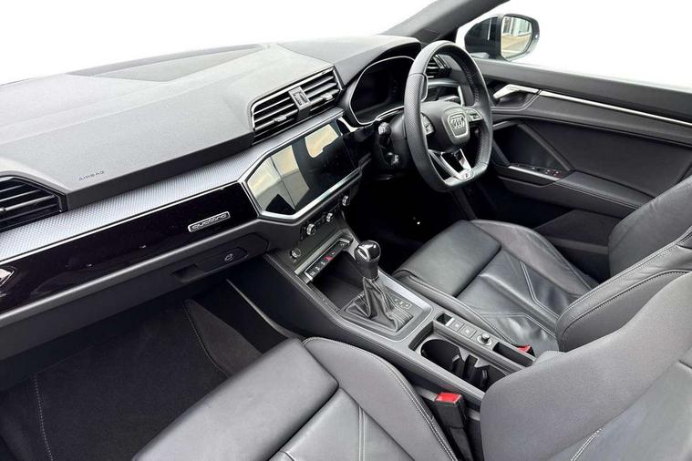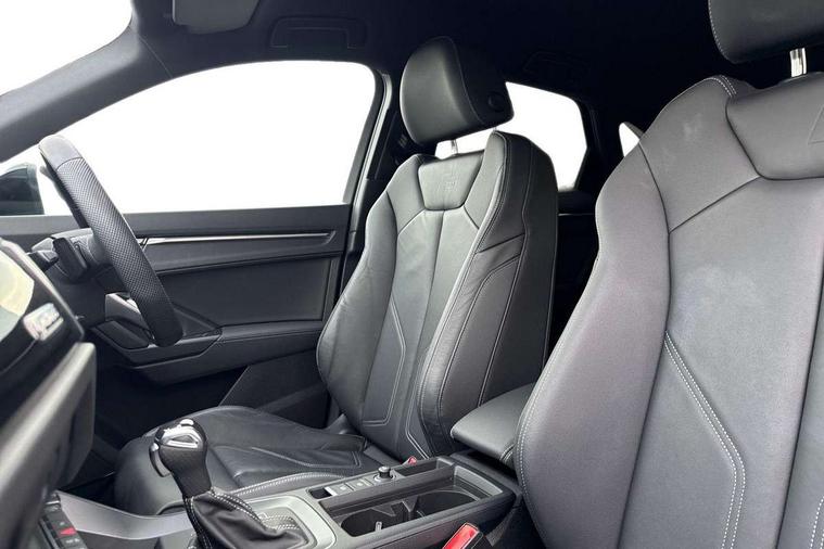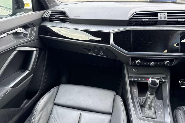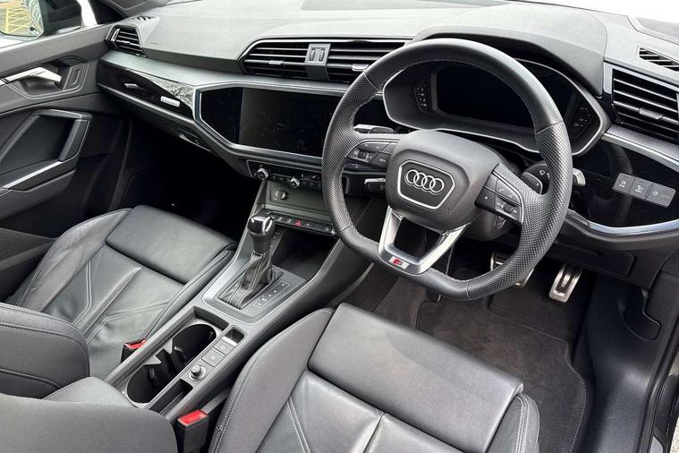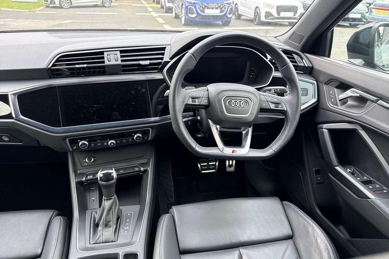 Audi drive select, Audi lane departure warning, Audi Virtual Cockpit - 10.25" display, Bluetooth interface, Camera based traffic sign recognition, Legal emergency call, MMI Navigation Plus with high resolution 10.1 inch touchscreen colour display, Power operated tailgate, Progressive steering, Service interval indicator, Smartphone interface includes wireless Apple carplay/Android Auto, Start stop system with recuperation, Voice control system with natural language interaction, Diesel particulate filter, Sports suspension, 2 USB-C ports with charge and data functions, 6 passive loudspeakers, DAB digital radio module, Acoustic windscreen, Auto dimming frameless rear view mirror, Diffuser grille in grained matt black, Diffuser trim in selenite silver, Electrically folding, adjustable and heated door mirrors with integrated LED side indicators and kerb view function for passenger side, Front and rear electric windows, Front fog lights, Front underbody protection in manhattan grey paint finish, High gloss black finish B and C pillars, LED Dynamic rear indicators, LED headlights with LED daytime running lights, LED rear lights, LED third brake light, Privacy glass dark tinted rear and rear-side windows (from B-pillar backwards), Rain and light sensors, Rear side wing doors, Rear underbody protection in matt black, Rear wiper, Variable front intermittent wipers, 12V socket in rear centre console, 3 seat bench in 2nd row, 40:20:40 folding with manual adjustment for 60:40 forwards/backwards position and backrest angle, Adjustable rear seat bench/backrest with centre armrest and cupholder, Black cloth headlining, Dual zone electronic climate control, Front and rear black floor mats with contrast stitching, Front and rear headrests, Front and rear roof module including reading lights, Front centre armrest, Glove compartment lighting, Height and reach adjustable steering wheel, Illuminated door sill trims with S logo, ISOFIX child seat mounting for front passenger with airbag deactivation and outer rear seat including top tether attachment point for outer rear seats, Luggage compartment light right in white, Luggage compartment sill protection in stainless steel, Manual front seats with height adjustment, Perforated leather gearknob, Single front passenger seat, Stainless steel pedals, Ambient lighting pack - Q3, Black styling pack - Q3, Non smoking pack - Q3, 3x3 point rear seatbelts, 6 airbags - Driver, front passenger, curtain and side windows, Audi pre-sense front with pedestrain and cyclist recognition, Electrically operated child locks on rear doors, Electromechanical parking brake, Electronic stabilisation control including ABS, ASR and EDL, Front seatbelt reminder, Hill descent control, Hill hold assist, Pre sense basic, Seatbelt monitoring, Tyre pressure warning, Warning triangle and first aid kit, Anti theft alarm, Anti theft wheel bolts, Immobiliser, Remote central locking, Aluminium look interior elements, Black dashboard, Detail dashboard around MMI touch colour display in glass look, black with surround in aluminium look, Leatherette door armrest, Piano black inlay, 19" 5 twin arm design diamond cut audi sport alloy wheels in matt grey look,