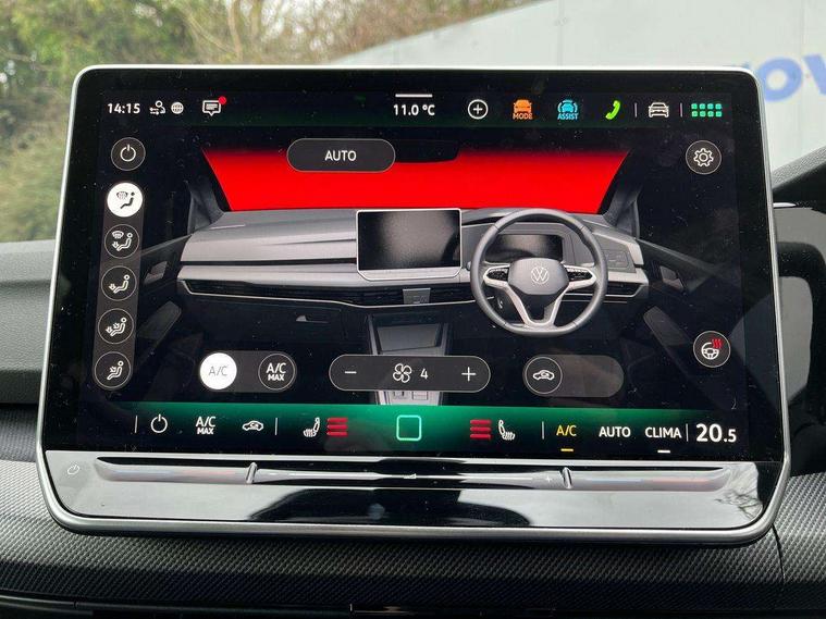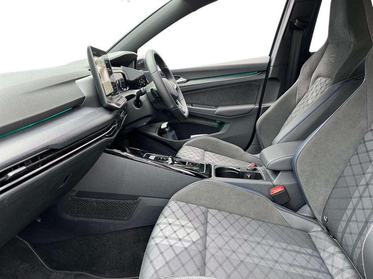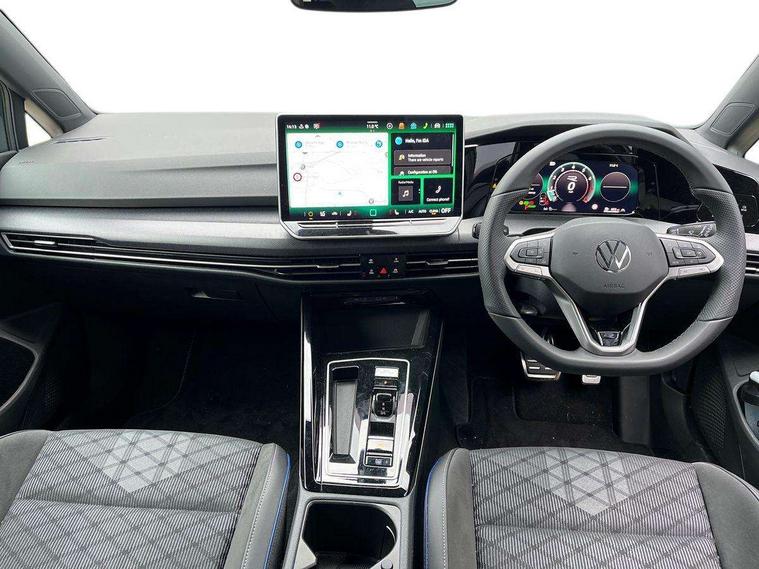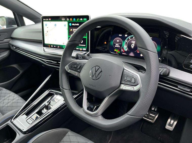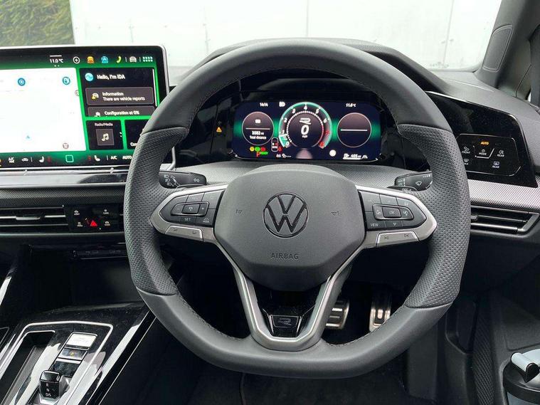 Activated carbon canister, Adaptive cruise control (ACC), Advanced driver attention and drowsiness monitor, Dynamic road sign display, Dynamic steering, E-Sim card for online connectivity, eCall emergency call system, Multi-color Digital cockpit pro, selection of different info profile possible, Multifunction front facing camera for distance control, Navigation system, Oncoming vehicle braking when turning including swerve support, Speed limiter, Speedo, rev counter, electronic odometer, trip, service interval display, exterior temperature and fuel gauge, Traffic jam assist, Voice enhancer and voice control, Warning signal and warning light for front and rear seatbelts not fastened, We connect plus preparation, We connect preparation, Wireless app connect, Hybrid propulsion system, Petrol Particulate Filter, Start-stop system with battery regeneration (recuperation - energy recovery during braking), XDS electronic differential lock for improved traction and handling, 2 USB C ports in front, 2 USB charging sockets on the centre console in the rear charging capacity upto 45W, Digital radio reception (DAB), Diversity antenna for FM reception, Gaming platform via car app, Infotainment system with 12.9" display, Mobile phone interface with inductive charging feature, 3rd brake light, Auto dimming rear view mirror, Automatic headlamp activation with Coming home and Leaving home feature, Body colored bumpers in R-Line style, Body colour door handles, Exterior ambient lighting, Exterior mirrors convex on the left and aspherical on the right, Front and rear electric windows, Heat insulating windshield made of laminated glass, LED separate daytime running light, Rain sensor, Rear exhaust tailpipe, Rear fog light on one side and reversing lights on both sides, Rear side wing doors, Rear windscreen washer and wiper with interval delay, Remote electrically foldable door mirrors, puddle lights and reverse activated passenger's door mirror, Volkswagen logo in front, illuminated lighting animation with wake up/goodbye scenario and illuminated door handles, Welcome light with surround lighting, 12V socket in front centre console, 12V socket in luggage compartment, 3 rear head restraints, 3 seat bench in 2nd row, Ambient lighting with 30 colour including LED light unit in front footwell with selectable light colour, Black roof lining, Brushed stainless steel pedals, Chrome plated radiator grille inserts, air vent surrounds and light switch surrounds, Door insert, side trim panel and arm support in leatherette, Front + rear black carpet mats, Front centre armrest, Front seat lumbar support adjuster, Integrated front head restraints, ISOFIX anchors for child seats on outer rear bench seats and on front passanger seat compatible for i-Size, Luggage compartment lighting, Manual height adjustable front passenger seat, Manually height adjustable driver seat, Plastic gear knob, Premium sports seats in front, Rear cupholder and loadthough, Sardegna cloth upholstery with front and outer rear seats Art Velour inner sides of bolsters, Single front passenger seat, Split folding backrest with centre armrest and unsplit rear seat bench, Sun visors with illuminated vanity mirrors, Titanium black instrument panel, Black exterior Styling package with Matrix LED headlights - Golf, Winter package - Golf DSG Estate/Hatchback, 3 point height adj front seatbelts + pretensioners, 3 rear three point seatbelts, ABS, Autonomous emergency braking front assist with pedestrian and cyclist monitoring, Child locks on rear doors, Driver and front passenger airbag with front passenger airbag deactivation, Electronic parking brake with auto hold, ESC (Electronic Stability Control), Extended pedestrian protection measures, Hill start assist, Rear disc brakes, Two tone horn, Tyre pressure loss indicator, Volkswagen roadside assistance, Anti theft wheel bolts, Preparation for alcohol interlock, Decorative inserts carbon grey for dashboard and front door trim panels, 18" Leeds alloy wheels, Tool kit for tyre mobility set, Tyre mobility kit Includes 12V compressor and tyre sealant,