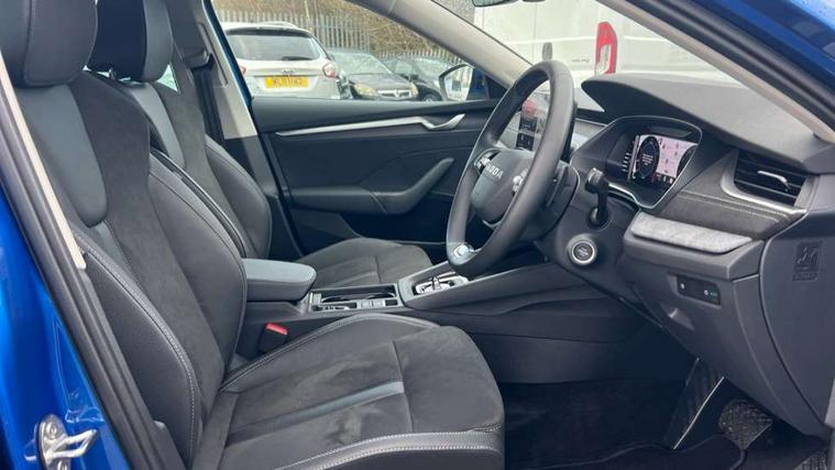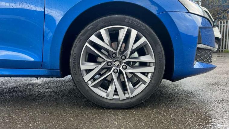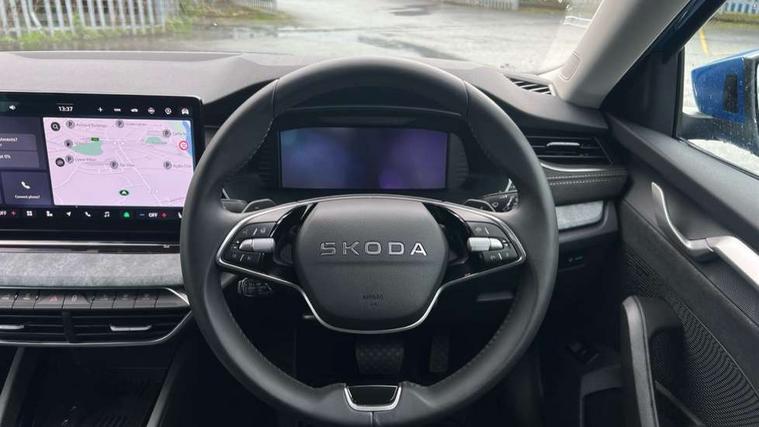 1x USB Typc C port in rear view mirror, 4x USB Type C ports - 2x in front centre console and 2x in rear (45W), Drive mode selection, Driver fatigue sensor, eCall emergency system, Electro-mechanical power steering, Front assist system, Traffic sign recognition, Turn Assist, Virtual Cockpit - 10.25" digital display, Voice control system, Wireless charging (15W) with cooling function, Wireless SmartLink for Apple CarPlay and Android Auto, 13" touchscreen display with navigation, DAB Digital radio, Aero front windscreen wipers with intermittent function, Auto dimming rear view mirror, Body colour bumpers, Body colour door mirrors and handles, Chrome grille surround, Chrome roof rails, Chrome strip in lower front bumper, Chrome window surrounds, Electric front and rear windows, Electrically adjustable, heated, folding and driver side auto-dimming door mirrors, Heated rear windscreen, High level third brake light, Ice scraper in fuel cap, LED daytime running lights, LED Headlights, Logo projection in front doors, Rain and light sensors, Rear fog light on one side and reversing lights on both sides, Rear privacy glass, Rear side wing doors, Rear spoiler, Rear window wiper, 12 volt socket in boot, 3 rear headrests, 3 seat bench in 2nd row, 4 foldable roof handles, Front head restraints, Heated front seats, Illuminated glovebox, Interior door handles in dark chrome, Jumbo Box storage, Luggage compartment lighting x2 lights, Mechanical rear seat release from boot, Single front passenger seat, Steering wheel in black leather with black stitching, Storage compartments in left and right of boot, Sun visors with mirrors, Sunglasses storage, Ticket holder, Two-spoke leather multi function steering wheel with paddles, Umbrella in door panel, Unsplit rear bench seat, split folding backrest with centre armrest with cupholder, Comfort package - Octavia Estate, Simply clever package premium - Octavia, 3x3 point rear seat belts, Alarm with interior monitoring, tilt sensor and back up horn, Curtain airbags and front side airbags, Driver and front passenger airbags, Drivers knee airbag, Electronic parking brake, ESC including ABS, EBV, MSR, ASR, EDS, HBA, DSR, Front central airbag, Hill hold assist, ISOFIX on front passenger seat and outer rear seats, Passenger airbag deactivate switch, Three point seat belts in front and rear, Two tone horn, Tyre pressure monitor, Visual and acoustic seat belt reminder, Warning reflectors in front door, Anti-theft wheel bolts, Keyless entry and start/stop, Remote central locking, Chrome air vent surrounds,