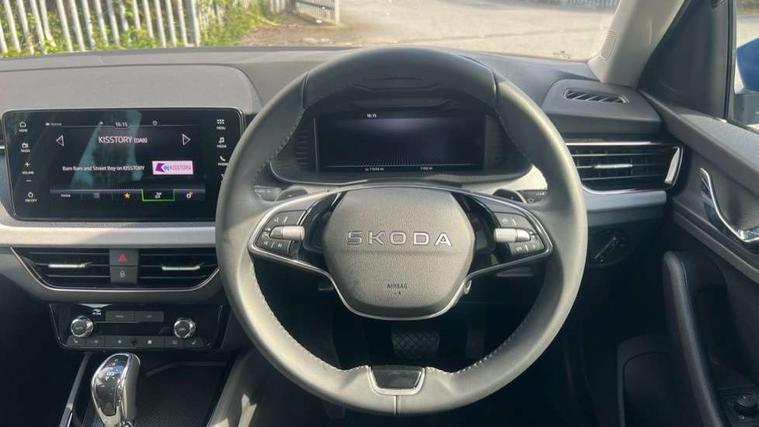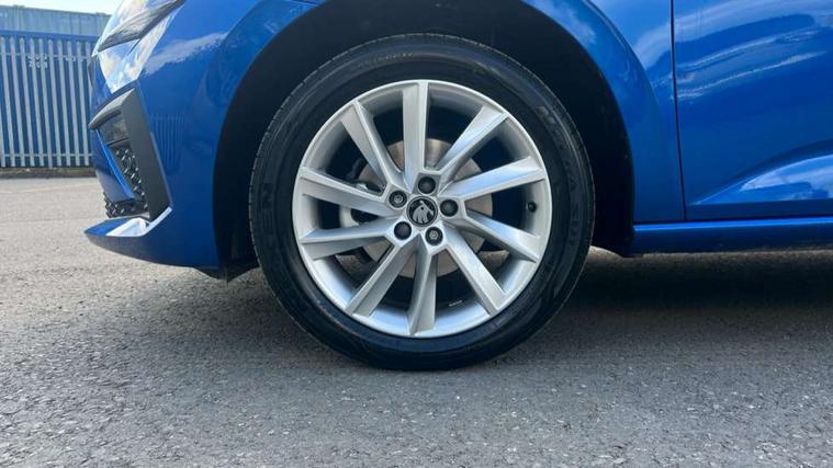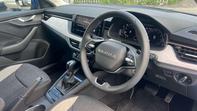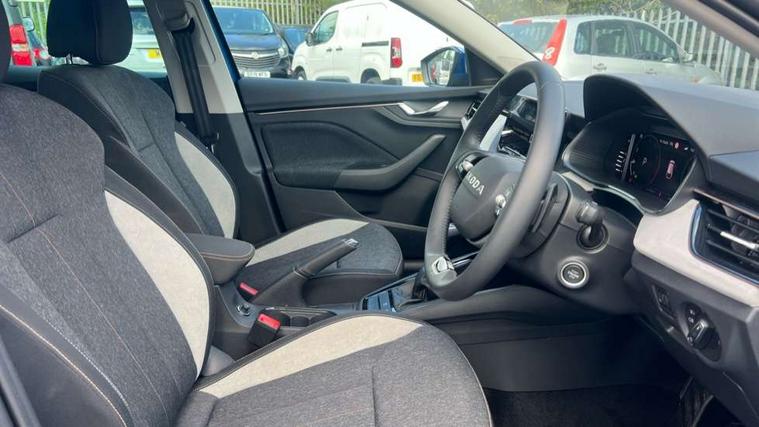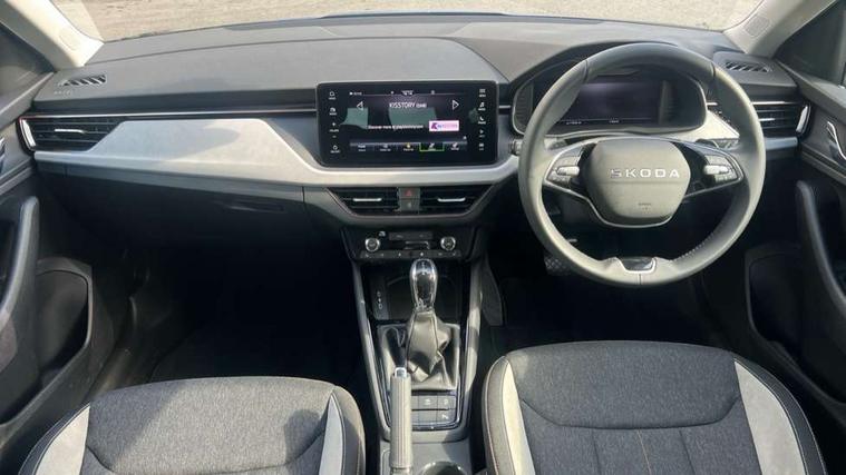 Advanced driver attention and drowsiness monitor, Bluetooth, e-Call (emergency call), Front assist system, PAS, Rear parking sensors, Rear view camera, Speed limiter, Tailgate, Traffic sign recognition, Virtual Cockpit - 10.25" digital display, Voice control system, Wireless smartlink, 4 USB C ports, 8 Speakers, 9.2" Skoda navigation display, DAB radio, Auto dimming rear view mirror, Automatic headlight control with manual coming and leaving home feature, Automatic intermittent wipers, Body colour bumpers, Body colour door mirrors and handles, Chrome moulding around grille, Chrome window frames, Front and rear electric windows, Heated rear window, LED 3rd brake light, LED daytime running lights, LED high beam, LED low beam, Light sensors, Privacy glass, Rear LED fog light, Rear side wing doors, Rear wiper, Tinted windows, Unique dark chrome design logo on alloy wheels, 12V socket in luggage compartment, 3 seat bench in 2nd row, Ambient lighting in white/red, Black / Copper armrest stitching, Cargo elements, Chrome inner door handles, Copper hotstamping, Door inserts in accent black, Driver and passenger sun visors with vanity mirror, Dual zone climate control, Front and rear roof lights, Front centre armrest, Front head restraints, Glasses storage in roof liner, Height adjustable driver seat, Height adjustable passenger seat, Ice scraper, Illuminated glove compartment, Inner circulation control with pollen filter, ISOFIX for front passenger seat, Isofix preparation for back seats, Leather gearknob and handbrake lever, Lodge cloth upholstery, Luggage net under rear parcel shelf, Manual lumbar support for front seats, Net package and top tether hooks in boot space, Pocket on the back of both front seats, incl. mobile phone pockets, Rear centre armrest, Single front passenger seat, Skoda lettering on steering wheel, Textile floor mats, Third rear headrest, Ticket holder, Top tether for front passenger seat, Umbrella in driver's door, Convenience pack without rear camera - Scala, 3x3 point rear seatbelts, ABS, Child locks, Curtain airbags and front side airbags, Disc brakes, Driver and front passenger airbags, ESP, Hill hold control, Manual leather parking brake, One tone horn, Passenger airbag switch off function, Seatbelt reminder for driver and front passenger, Tyre pressure monitoring system, Anti theft alarm system with interior monitoring, backup horn and towing protection, Anti-theft wheel bolts, Remote central locking with 2 remote folding keys, SAFE function for remote central locking, Decorative inserts,