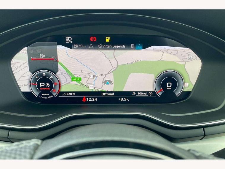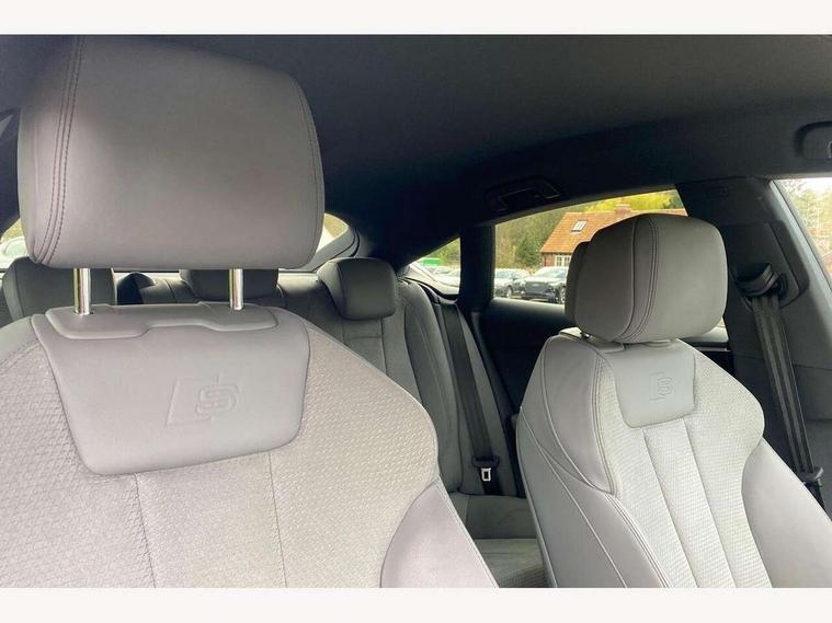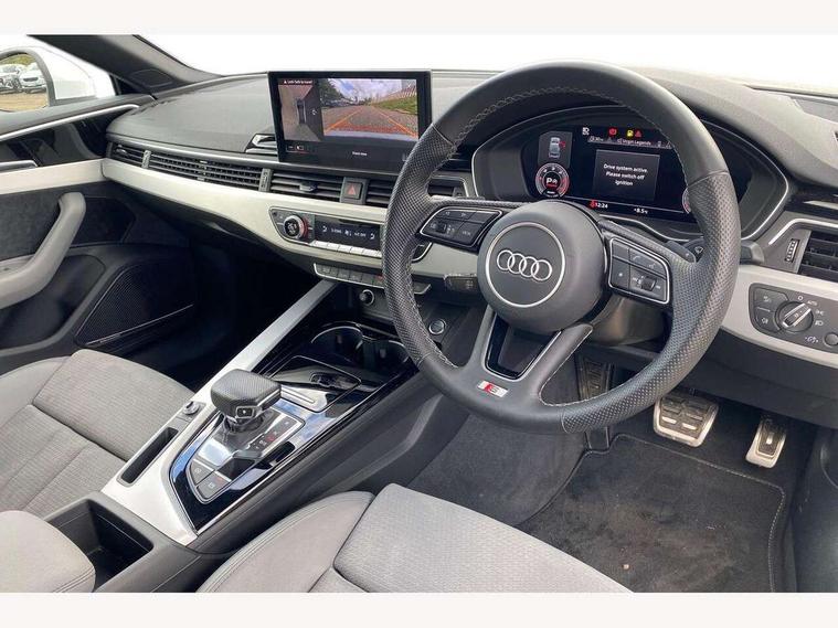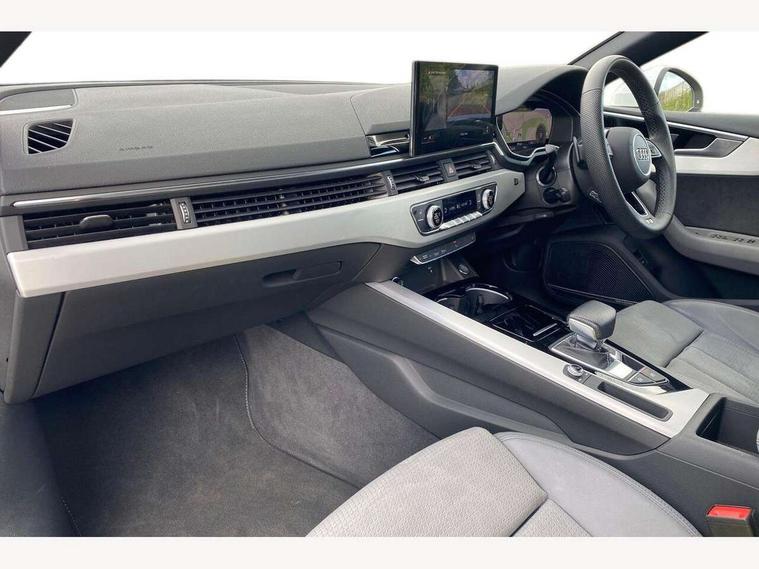 Audi connect safety and service (e-call), Audi drive select (Auto, Comfort, Dynamic, Efficiency and Individual), Audi smartphone interface, Audi virtual cockpit - 12.3" full colour digital instrument cluster, vehicle/engine speed, Radio/media information+Driver assistance systems, Automatic start-stop system with coasting functionality and efficiency programme, Bluetooth interface, Camera based traffic sign recognition, Electro-mechanical power steering, Email, calendar and text messages displayed via MMI, Front and rear parking sensors, Lane departure warning, MMI nav+ with MMI touch - 10.1" high resolution MMI display, touch sensitive, 3D map, route/country info, dynamic route guide, personal route assist, Power operated tailgate, Rear view camera, Service interval indicator, Voice control system, Diesel particulate filter, Sports suspension lowered by 23mm, 8 passive loudspeakers, CD player, DAB digital radio reception, Two additional USB ports for rear passenger in rear centre console, Two SDXC card slots, Auto dimming door mirrors, Auto dimming rear view mirror, Body colour bumpers, Body colour door handles, Body colour front spoiler lip, Body colour side sill trim, Body coloured door mirrors, Electric adjustable heated door mirrors, Electric folding door mirrors, Electric front windows, Front fog lights, Honeycomb structure radiator grille in grained matt black, Kerb-view function for passenger side, LED headlights and rear lights with LED daytime running lights, LED side indicator lights integrated into door mirrors, LED third brake light, Matt aluminium silver tailpipe trim, Privacy glass, Rain and light sensors, Rear side wing doors, Rear wiper, S line badges on front wings, S line front and rear bumpers with side skirts, S Line rear diffuser in matt anthracite black with trim strip in matt aluminium silver, Side air inlets in grained matt black with matt aluminium silver inlay, Variable front intermittent wipers, Windscreen with acoustic glazing, 3 seat bench in 2nd row, 3 spoke high multifunction leather sport steering wheel with paddle shfit and S badging perforated leather grips, 4 way electric lumbar support for driver and front passenger, 40/20/40 split folding 3 seater rear bench seat, Adjustable steering column, Black cloth headlining, Black perforated leather gearknob, Contrast stitching on seats, steering wheel and gear lever gaiter, Deluxe 3 zone electronic climate control, Front centre armrest, Front head restraints, Front/rear floor mats, Heated front seats, Illuminated door sill trim with S logo, ISOFIX child seat mounting and top tether, Luggage compartment mat, Manual seat adjustment, Rear centre armrest, Rear headrests, Single front passenger seat, Stainless steel pedals and footrest, Sunvisors with vanity mirrors, LED interior light pack - A5/RS5, 3x3 point rear seatbelts, 6 airbags - Driver, front passenger, curtain and side airbags, Attention and drowsiness assist, Electromechanical parking brake, Electronic Stabilisation Control (ESC) including ABS, ASR and EDL, Front passenger airbag deactivation, Height adjustable front seatbelts, Hill hold assist, Manual child lock in rear doors, Multi collision brake assist, Pop-up bonnet for pedestrian protection, Pre sense city, Seatbelt monitoring, Tyre pressure warning, Variable restraint system, Warning triangle and first aid kit, Anti theft alarm system, Anti theft wheel bolts, Immobiliser, Keyless Go, Remote central locking, Matt brushed aluminium inlays, Tool kit, Tyre repair kit,