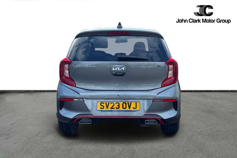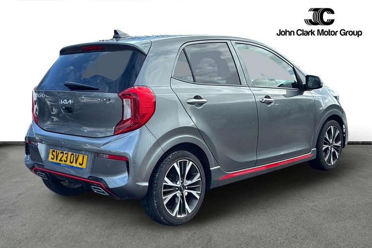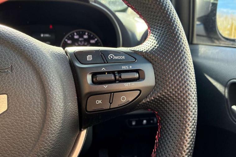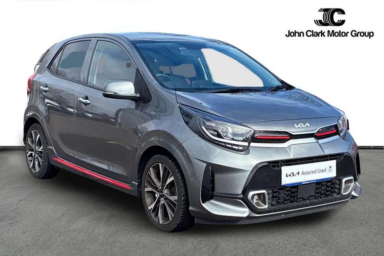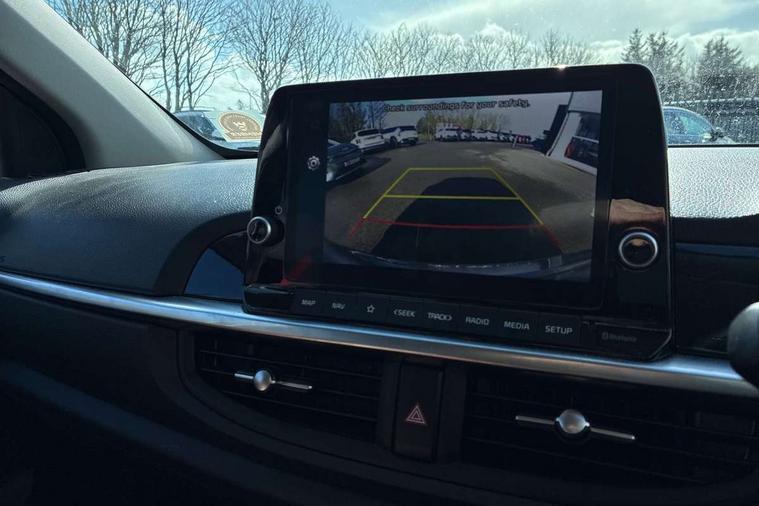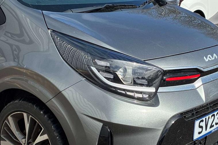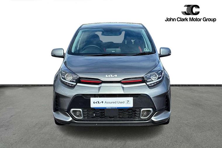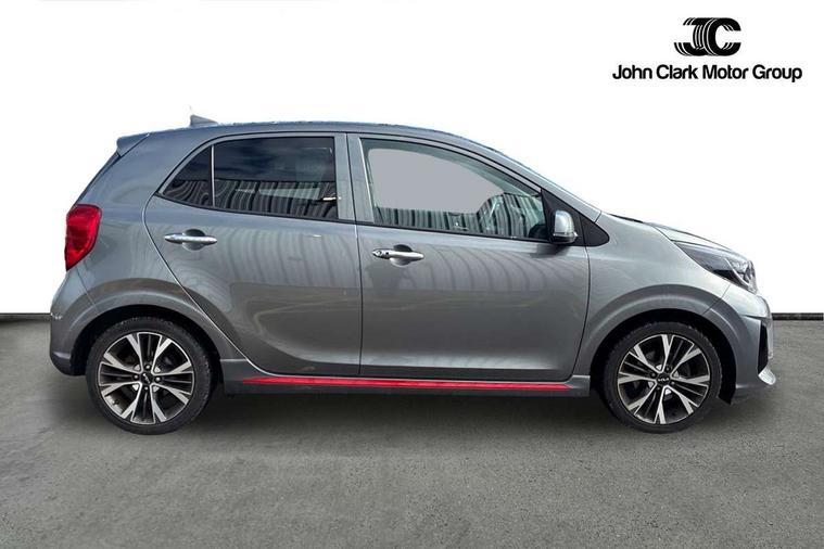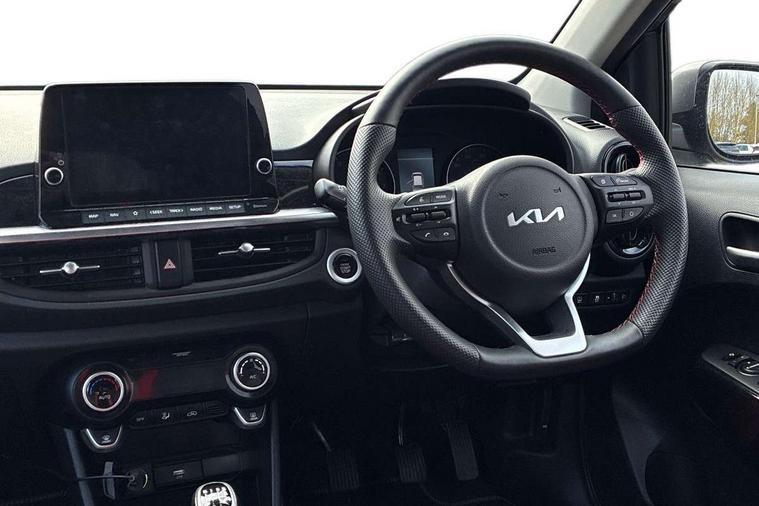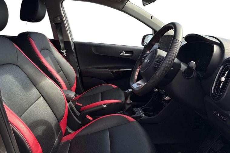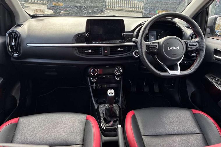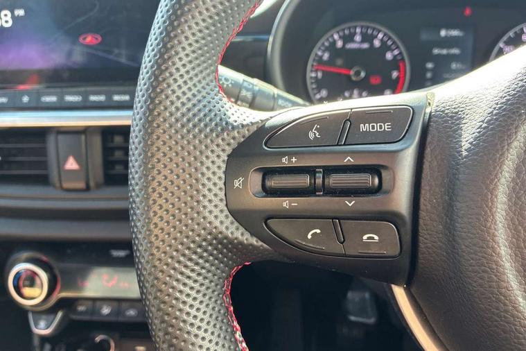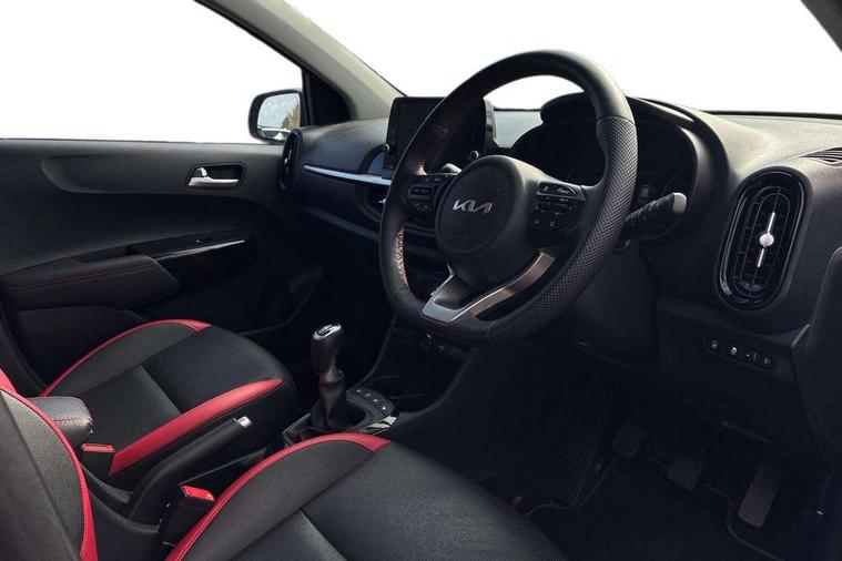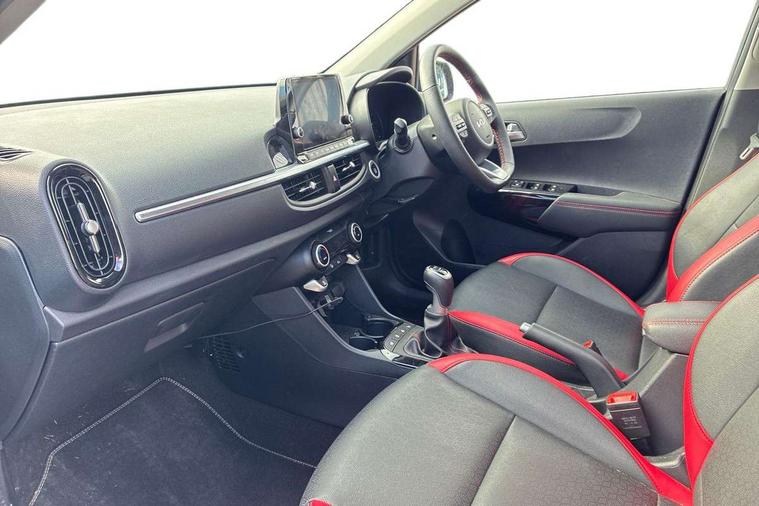 8" touch screen satellite naviagtion with RDS and DAB with telematics, Apple car play/Android Auto with voice control, Cruise control + speed limiter, Emergency call service, Emergency stop signalling system, External temperature gauge, Kia Connect (UVO), Motor driven power steering, Rear parking sensors, Reversing camera system with dynamic guidelines (Integrated into centre fascia screen), Tachometer, Trip computer, Wireless Smartphone charger, 6 speaker audio system, Bluetooth with music streaming, Steering wheel mounted controls, USB ports for connection of a media device, Automatic headlight control system, Bi-function projection headlights, Black beltline mouldings, Black grille with silver surround, Body colour B pillars, Body colour bumpers, Body colour side sill mouldings, Body coloured mirrors and chrome exterior handles, Day/night rear view mirror, Electric adjustable/heated/folding door mirrors with LED indicators lights, Front and rear electric windows with drivers's auto up/down function, Front fog lights, Headlamp levelling, Heated rear window, High mount brake light, LED daytime running lights, LED rear fog lights, Privacy glass - Rear windows and tailgate, Rain sensor, Rear side wing doors, Rear wash/wipe, Speed variable front wipers, Sports front and rear bumpers with gloss black skid plates twin exhaust, Tinted glass, Visible VIN plate, Welcome and follow-me home light functionality, 1 x rear coat hook, 12V power point front, 2 seat bench in 2nd row, 3 x passenger assist grips, 60/40 split/folding 2nd row of seats, All round height adjustable headrests, Automatic air conditioning, Black and red accents front door armrest, Centre Console with Storage Box and Sliding Armrest, Cupholders in centre console, D-cut steering wheel with red stitching, Driver and front passenger sunvisors with driver's side illuminated vanity mirrors, Driver seat height adjust, Faux leather upholstery, Front cabin lights, Glovebox, Heated front seats, Heated steering wheel, High gloss lower centre fascia trim, door armrest and air vents, ISOFIX Child seat top tethers and anchor fixings, Leather trimmed steering wheel and gearshift, Luggage area light, Luggage area parcel shelf, Passenger front seatback pockets, Satin chrome interior door handles, Single front passenger seat, Slide/reclining front seats, Tilt adjustable steering wheel, Advanced Driver Assistance Pack - Picanto, 2 x 3-point rear seatbelts, ABS/EBD, Automatic unlocking of doors in case of impact, Dual front airbags, ESC + BAS + VSM + HAC, Front passenger airbag cut-off switch, Front seatbelt height adjusters, Front seatbelt pretensioners + load limiters, Hill hold control, Knee airbags, Rear child proof door locks, Seatbelt warning, Side impact protection, Torque vectoring brake based and straight line stability (SLS), Traction control, Twin curtain airbags, Twin front side airbags, Tyre pressure monitoring system, Anti theft alarm, Engine immobiliser, Locking wheel nuts, Smart key with engine start/stop button, 16" alloy GT-Line wheels, Tyre mobility kit,