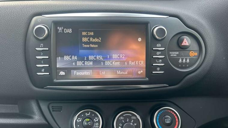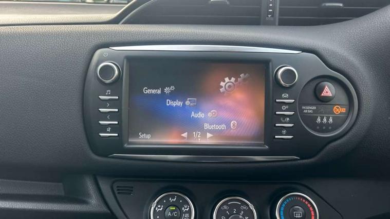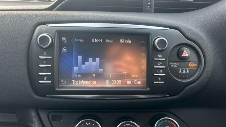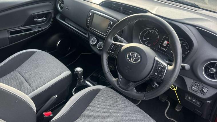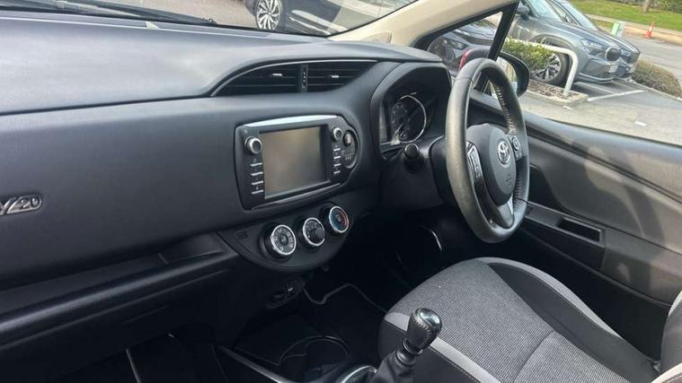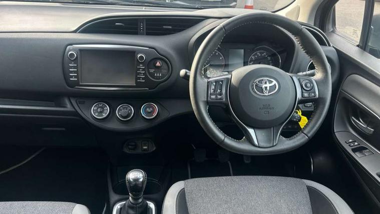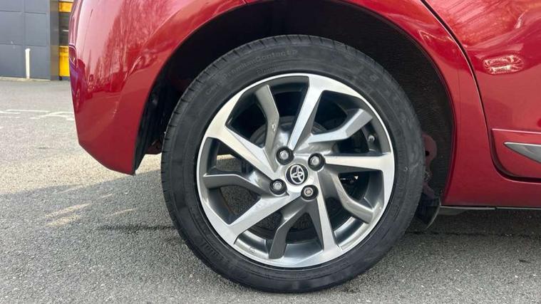 4.2" coloured LED TFT multi information display, Analogue speedometer, Analogue tachometer, Auto speed limiter, Bluetooth connectivity, Cruise control, External temperature gauge, Fuel indicator with low level warning, Key reminder warning, Lights on warning, Multi information display switches on steering wheel, Power Steering, Reversing camera, Trip computer, 6 speakers, Auxiliary input socket, Steering wheel mounted audio/telephone switches, Toyota Touch 2 with DAB, USB connection, Auto up and down function on drivers window, Automatic wipers, Bi-tone grey roof, Black lower front grille, Body colour bumpers, Body colour door handles, C pillar decal, Daytime running lights, Electric adjustable heated door mirrors, Electric front windows, Follow me home headlights, Front fog lights, Grey contrasting colour door mirrors, Grey door moulding, Grey door side sills, Grey front grille and fogs, Headlight cut-off reminder, LED High mounted stop lamp, Manual dimming rear view mirror, Privacy glass, Projector headlights, Rain sensitive windscreen wipers, Rear combination lights bulb type, Rear window defogger, Rear wiper, Turning signal integrated indicators in door mirrors, Y20 Badging, 12v power outlet - front, 3 adjustable rear headrests, 3 spoke leather steering wheel, 60/40 split folding rear seat, Active headrests, Boot light, Data Communication Module (DCM) connected services, Driver and front passenger personal light, Driver and front passenger Whiplash Injury Lessening seats, Fabric upholstery, Front and rear cup holders, Front map reading lights, Front seats with lumbar support, Glovebox, Height adjustable driver's seat, Height adjustable front head restraints, Illuminated entry system, Isofix seat fixing, Leather gearshift, Manual air conditioning, Map pockets on the backs of the front seats, Pollen filter, Removable rear parcel shelf, Sliding front seats, Soft touch inner door garnish, Tilt/telescopic steering column, Y20 badge interior and in seat trim, 3 point seatbelts on all rear seats, ABS+EBD+Brake assist, Collision mitigation braking system, Emergency brake light system (EBS), Front passenger airbag on/off switch, Front seatbelt reminder, Height adjustable front seatbelts with pre-tensioners and load limiters, Hill start assist control (HAC), Rear child proof door locks, Rear seat belt reminder, Road sign information display, Seatbelt warning lamp and buzzer, Supplemental restraint system (SRS) airbags - 7 airbags including driver, front passenger, curtain, side and knee airbags, Toyota safety sense including Road sign assist, Pre collision system, auto high beam and lane departure alert), Tyre pressure warning system, Vehicle stability control VSC + traction control, Engine immobiliser, Power and remote door locking, Interior satin accents, Soft touch instrument panel, 16" 10 spoke grey machined alloy wheels, Space saver spare wheel,