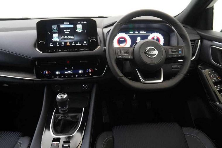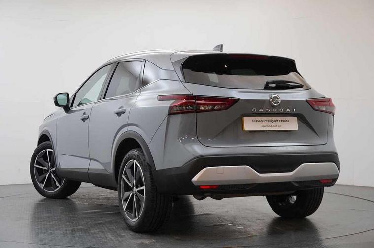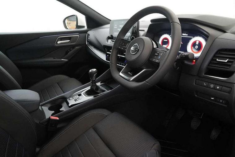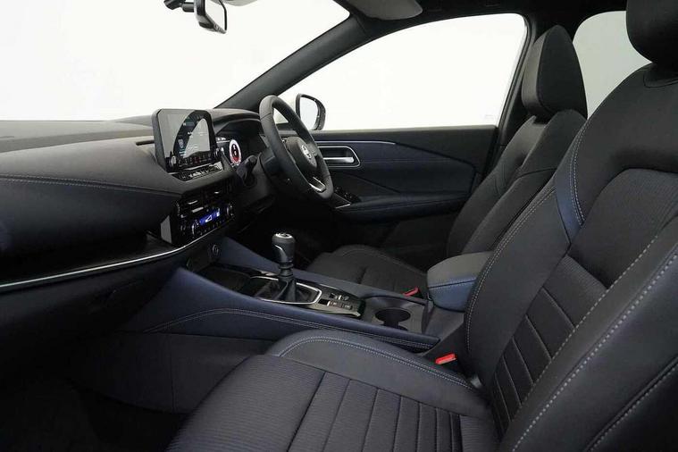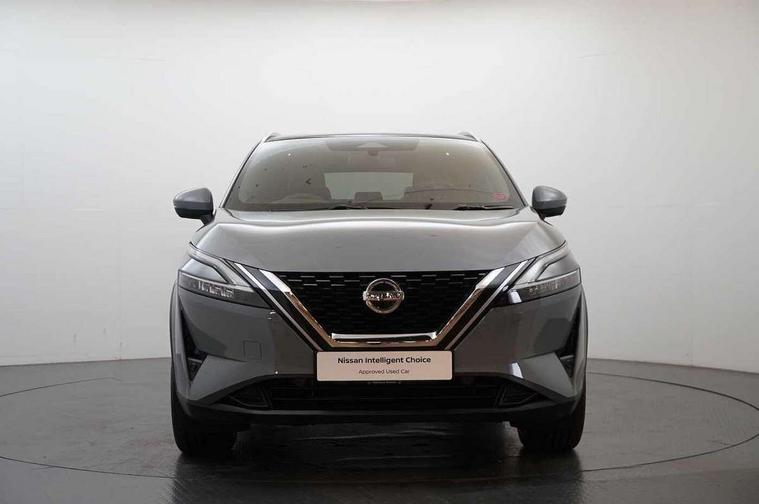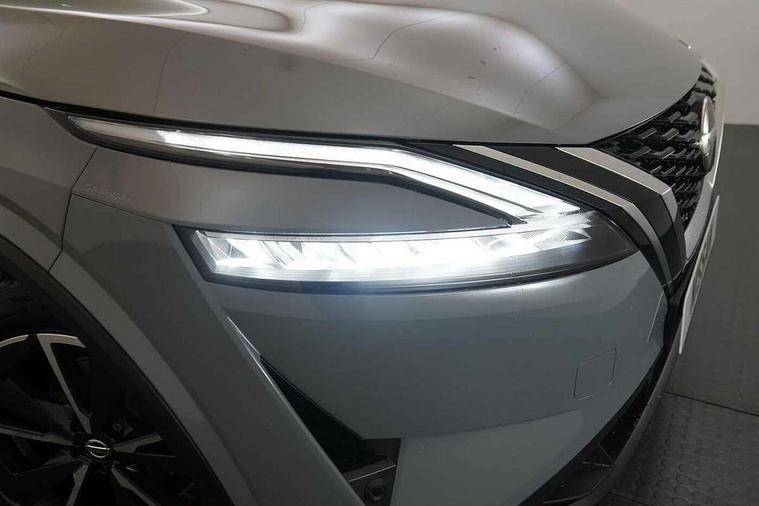 Blind spot warning, Drive modes (sport, normal, eco), Electric speed sensitive power steering, Emergency and breakdown call, Front and rear parking sensors, Full Digital 12.3" TFT Digital Combimeter, Google maps services - search, weather, 3D maps and Google street view, Hands free power tailgate, Idle stop/start system, Intelligent around view monitor, Intelligent Cruise control (ICC), Intelligent driver alert system, Intelligent forward collision warning, Intelligent lane intervention, Lane departure prevention, Lane departure warning system, Moving object detection, Nissan connect 9" touchscreen infotainment system, Nissan connect navigation, Push button starter, Rear cross traffic alert, Remote control services - door locks, lights, horn and car locator, Telematics - notifications and connectivity services, TomTom live traffic services, Traffic sign recognition with legal speed adjustment, Trip computer, Virtual personal assistant and firmware over the air capability, Wireless Apple CarPlay and wired Android Auto, Wireless charging pad, 6 speakers, AM/FM audio system with DAB, Bluetooth audio streaming, Front USB connections (Type-A and Type-C), Rear USB charging only ports (Type-A and Type-C), Auto dimming rear view mirror, Auto rear wiper when reversing, Body colour mirror caps, Body coloured door handles, Bodyside mouldings, Chrome side window finisher, Door handle with button, Dusk sensor, Electric auto folding door mirrors, Electrically adjustable and heated door mirrors with LED turn indicator, Fixed panoramic glass roof with electric sunshade, Follow me home headlights, Front and rear LED turning signals, Intelligent auto headlights, LED daytime running lights, LED rear lights, One touch front and rear electric windows with remote opening and closing, Partially body coloured bumpers, Privacy glass, Rear roof spoiler, Rear side wing doors, Rear styling plate, Roof rails, Shark fin antenna, Splash free rain sensing wipers, Super UV and infrared cut glass, Three blink turn signal, 12v power socket in dashboard and luggage, 2 way electrical driver lumbar adjustment, 2x Rear coat hooks, 3 bench rear seats in 2nd row, 3 rear headrests, 4 folding assist grip, 6 Luggage hooks - 4 on floor, 2 on side, 60/40 split folding rear seat bench, 8 way electric adjustable drivers seat, Ambient lighting around centre console, Ambient lighting in front doors, Centre console storage tray, Chrome interior door handles, Cloth/syntech leather monoform upholstery, Dark headlining, Driver and front passenger sunvisors with illuminated vanity mirrors, Driver seat back pocket, Dual zone automatic climate control with pollen filter, Front and rear door storage, Front cupholders x 2, Front door with bottle holders, Glovebox with light, Hard trunk cover, Height adjustable front headrests, Leather shift knob, Leather steering wheel, Luggage board system, Luggage space lighting, Manual lumbar support on passenger seat, Manually adjustable passenger (slide recline + lifter), Multifunction steering wheel, Passenger seat back pocket, PVC front centre console and armrest, Rear armrest with 2 cupholders, Rear door bottle holders, Single front passenger seat, Soft PVC kneepad, Steering wheel switches, Tilt/telescopic adjustable steering wheel, Two rear isofix child seat anchorage points with top tether, Welcome light and doors with console tray ambient lighting, Drive assist pack - Qashqai, Heat pack - Qashqai, Tech Pack (Drive Assist + HUD), 3x3 point rear seatbelt pretensioners + load limiters, ABS, ESP, EBD and brake assist, Active brake limited slip, Auto hold function, Child locks on rear doors, Curtain and front side, far side airbags, Driver and passenger airbags, Driver, passenger and 2nd row rear seat belt reminder, Electronic parking brake, Front seatbelt pretensioners + load limiters, Height adjustable front seatbelts, Hill start assist, Intelligent blind spot intervention, Intelligent front emergency braking with pedestrian, cyclist recognition and junction assist, Intelligent rear automatic braking, Tyre pressure monitoring system, Vehicle dynamic control, Capless fuel filler, Engine immobiliser, Nissan i-key, Rear bumper with silver insert, Remote central door locking with deadlocking, Thatcham Cat.1 alarm, 19" Alloy wheels,
