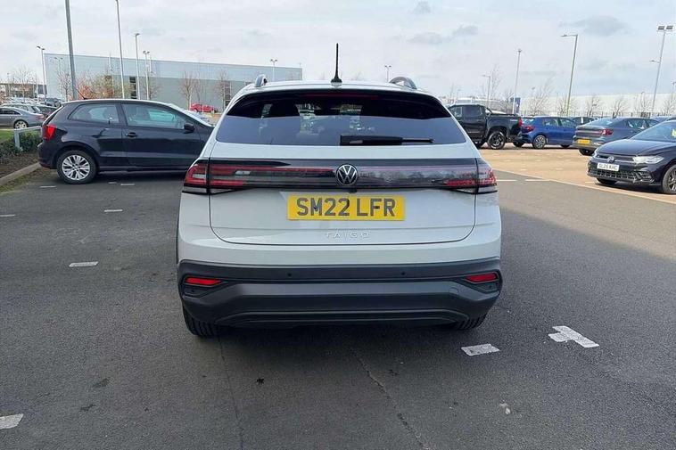 App-Connect including App-Connect Wireless, Driver alert system, e-Call (emergency call), Power Steering, Travel assist including emergency assist, Washer fluid level indicator, Wireless Charging including Bluetooth, Start-stop system with battery regeneration (recuperation - energy recovery during braking), Digital radio reception (DAB+), Diversity antenna for FM reception, WeConnect plus, Ambient lighting with logo projection, Aspherical driver's exterior mirror, Auto headlights, Body coloured bumpers, Body coloured exterior mirror housings and door handles, Electric windows, External USB type C socket and charging sockets, Front fog lamps with cornering function, Headlight range control, Heat insulating glass windscreen, LED headlamps, LED rear combination lamp, LED third brake light, Left convex exterior mirror, Power folding adjustable/heated exterior mirrors and front passenger exterior mirror lowering function, Rear fog light on one side, reversing light on both sides, Rear side wing doors, Rear wash/wipe with intermittent wipe setting, 'Slash/ Austin' Cloth upholstery, 12V socket in centre console, 2 front reading lights, 3 rear head restraints, 3 seat bench in 2nd row, Black carpets, Child seat anchor for child seat system i-Size, 2x top tether and child seat anchor in front on front passenger side, Door and side trim panels in titan black, Driver and front passenger seat height adjustment, Front centre armrest, Handbrake lever handle in leather, Height and reach adjustable steering wheel, Leather trimmed gear knob, Leather wrapped multifunction steering wheel, Luggage compartment floor, Luggage compartment light, Lumbar support for driver's and front passengers seat, Seat covers in titanium black, Single front passenger seat, Split folding backrest with centre armrest and unsplit rear seat bench, Storage compartment under front seats, Sun visors with illuminated vanity mirrors, Chrome Package - Taigo, Drivers assistance pack - Taigo, Light and Sight pack including High beam assist - Taigo, 2 x 3-point seatbelts/outer rear seats with ECE label, 3-point seat belts in front with pretensioner and height adjustment, 3-point seatbelt for centre rear seat, Driver and front passenger airbags with front passenger airbag de-activation, front side and curtain airbags, Driver and front passenger safety-optimised head restraints, Electronic stability control, Extended and predictive pedestrian/ cyclist protection, Front and rear disc brakes, Front curtain and side airbags with center airbag, Hill start assist, Manual rear child locks, Single tone horn, Tyre pressure loss indicator, Anti-theft alarm system with interior monitoring, backup horn, and towing protection, Anti-theft wheel bolts, Lava stone black gloss/matt decorative inserts in dash and front door panels, Low rolling resistance tyres,