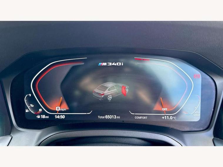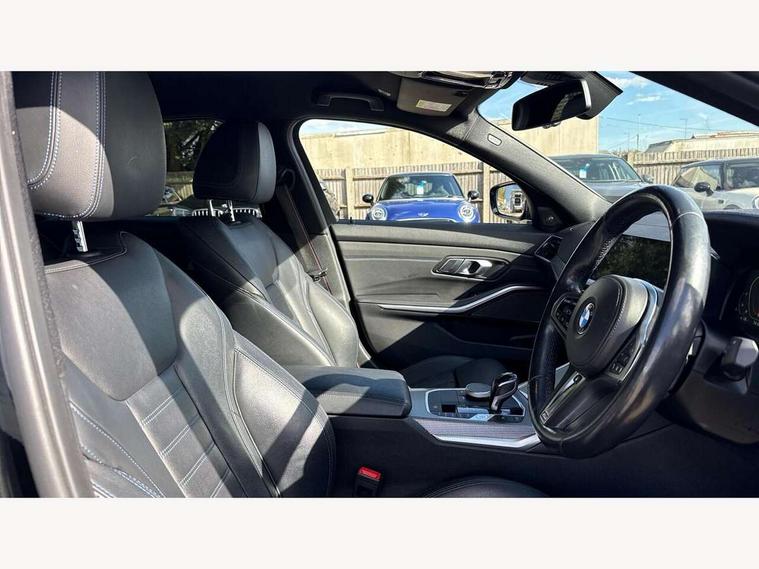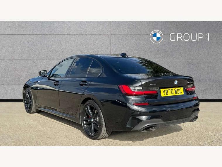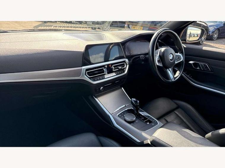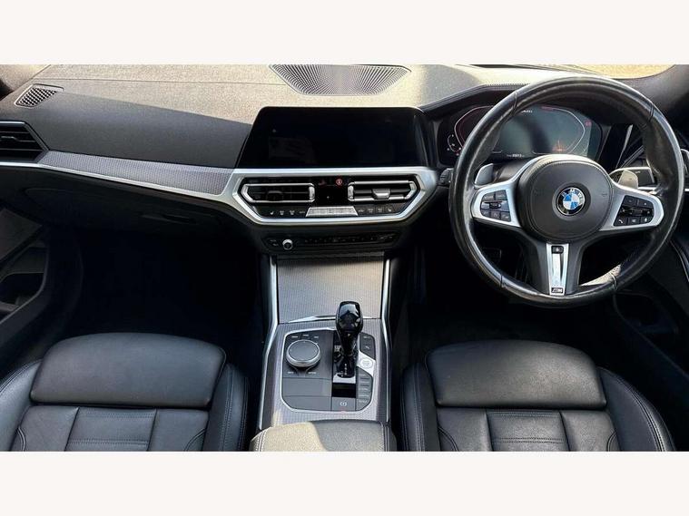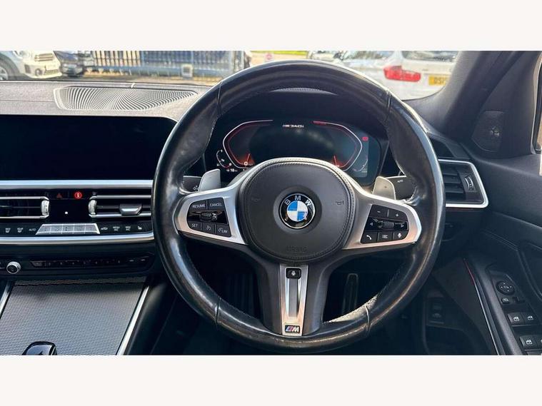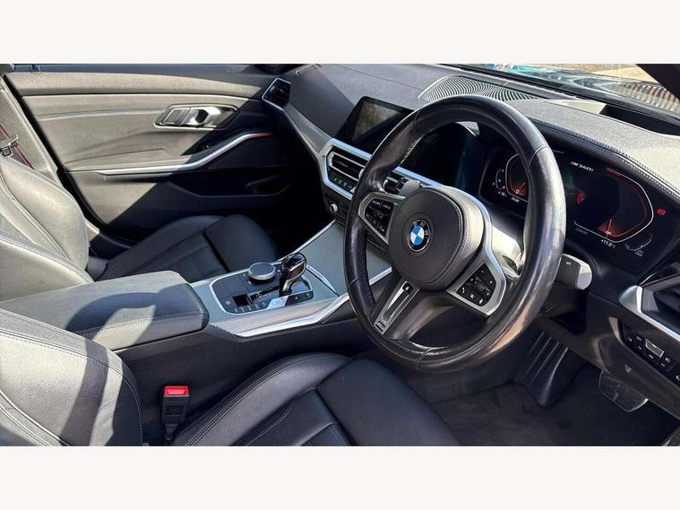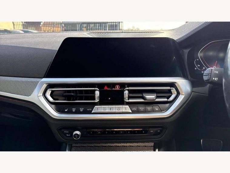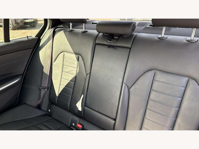Active guard plus, Attentiveness assist, Auto start-stop, BMW Live Cockpit Professional Nav with 12.3" instrument display + 10.25" display, Intelligent Voice Assist, BMW OS 7, HDD, 2USB, 4G LTE connect, BMW service history, BMW Teleservices, Brake pad wear indicator in front and rear, Check Control warning system for monitoring of lights and door/luggage compartment open warning, Condition based service, Electric power steering with Servotronic steering optimised at all speed ranges, iDrive controller on centre console, Instrument cluster with speedometer with mph readout, tachometer, fuel gauge and oil temperature gauge, Integrated owners handbook, Oil sensor for level and grade, warning by check control system, On board computer - average speed+fuel consumption, service interval, clock/date, odometer/trip meter, outside temperature display and ice warning, Optimum shift indicator, Personal Profile - automatic lock when driving away selectable, Variable sport steering, 48V Mild hybrid technology, Adaptive M suspension, Balanced 50/50 weight distribution, Battery cut-out switch, Drive performance control - ECO PRO, comfort and sport modes, Larger capacity fuel tank, M Sport differential, Petrol Particulate Filter, Sport automatic transmission with steering-wheel mounted gearshift paddles and launch control, Stroke dependent dampers, DAB tuner, Electronic service booklet, 2 x square exhaust tailpipes, Acoustic glazing, Automatic headlight beam throw control with load dependent regulating reaction, dynamic compensation of braking dive and acceleration squat, Black roof mouldings, Body colour door handles, Body colour fuel filler flap, Dynamic brake lights, Electric windows - front and rear, with open/close fingertip control, anti-trap facility and comfort closing, Exterior mirrors - electrically folding with anti-dazzle, Fading support, Front and rear bumper system with replaceable deformation elements, Front black door sill finishers with BMW designation, Green tinted heat protection glazing, High gloss shadow line exterior trim, Interior rear view electrochromatic mirror with automatic anti dazzle function, LED daytime running lights, LED front fog lights, Lightweight engineering, M designation on front side panels, left and right, M rear spoiler, Matt black exterior B pillar, Rain sensor with automatic headlight activation, Shark fin antenna, Sun protection glass, Two part LED tailights in L-shape with components in smoked glass, brake light, LED turn indicator and rear fog light, Visible VIN plate, Welcome lights in interior and door handle area, Windscreen wipers with integrated washing jets, xDrive designation on left tailgate, 12V power socket in front storage compartment, 2 front cupholder in centre console with clamping elements and matt black inlay, 3 rear seats with non folding headrests with 3 point seat belts, 3 zone automatic air conditioning, 4 pieces lashing eyelets in luggage compartment, 40:20:40 split folding rear seat with loading system, Ambient lighting with welcome carpet light, Anthracite headlining, Armrest integrated in front and rear door trim + front centre console armrest, Centred top Luggage compartment lights, Four grab handles integrated in roof lining, Front and rear door exit lighting (left / right), Front and rear door pockets, Front and rear reading lights, Front and rear velour floor mats, Front head restraints, Heated driver and front passenger seats, Height adjustable mechanically and infinitely variable steering column, Illuminated armrest storage compartment, Illuminated glove compartment with separate small compartment, Interior lighting - front centre over interior mirror with soft light, rear centre and front and rear footwell lighting, M Sport multifunction leather steering wheel, Make-up mirror lights, Rear centre armrest with 2 cupholders, Rear centre console with storage compartment and ventilation grille, Sunvisors with vanity mirrors and ticket pocket, Toolkit located in luggage compartment, Connected pack professional - 3 Series Saloon/Touring, M Aerodynamics pack - 3 Series Saloon/Touring, 2 tone horn, BMW emergency call, Brake energy regeneration, Braking pre-tensioning, Child proof locking system in rear door, Child seat ISOFIX attachment rear outer seats, Coasting in idle in ECO PRO mode, Crash sensor activating of airbags, Unlocking doors, hazard warning lights, fuel cut off, interior lighting+activation of safety battery terminal clamp, Driver and front passenger side airbags, integrated in the door side seat backrest bolsters for all seat variants, Driver/Front Passenger airbags, Dry braking, Dynamic brake control, Dynamic stability control + (DSC+) - Anti-lock Braking System (ABS) with brake assist and cornering brake control + Automatic Stability Control (ASC), Dynamic Traction Control - DTC, Electromechanical parking brake including automatic hold function and automatic release of the parking brake when pulling away, Electronic differential lock control (EDLC), Front passenger manual airbag deactivation, Head airbags for all 4 outer seats, Hill start assist, M sport seatbelt, Seat belt security check for driver and front passenger, Side impact protection, Three 3 point seat belts on all seats including front belt stopper, pyrotechnic belt tensioners and belt force limiters, Tyre pressure monitoring with three level warning strategy, Ventilated front and rear disc brakes, Warning triangle and first aid kit, Alarm system (Thatcham 1) with remote control and electronic engine immobiliser, Central locking switch for all doors, fuel filler cap and luggage compartment, Remote control with integrated key one button open/close vehicle and windows, sole opening of the luggage compartment lid and panic mode, Start/stop button with Comfort Go keyless engine start and auto Start/stop deactivation button, Vehicle key with M specific designation, Reduced rolling resistance tyres,