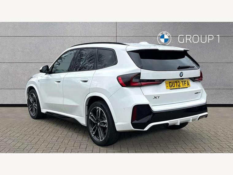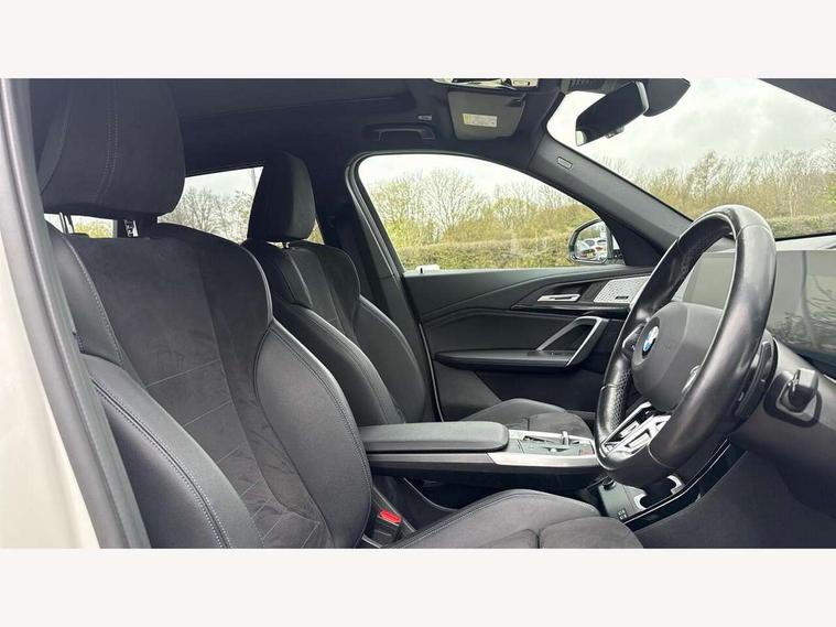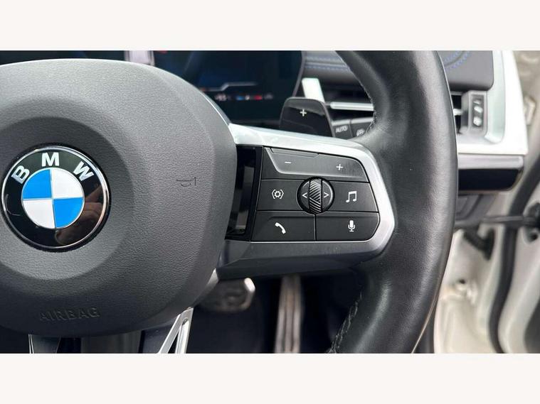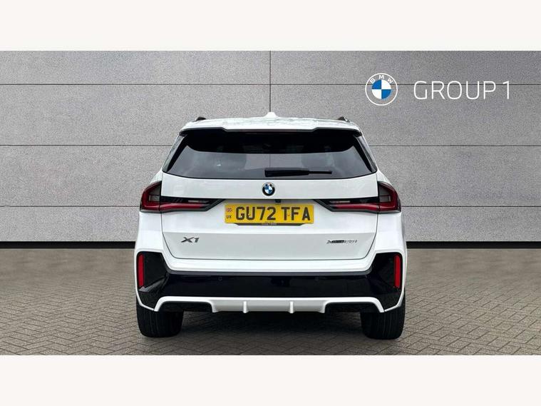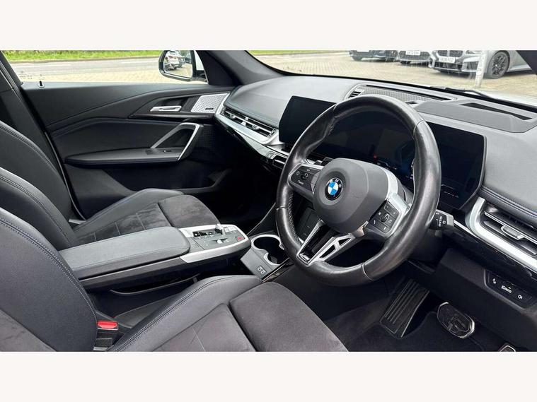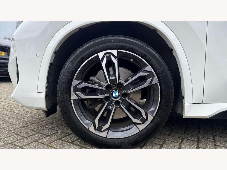Active Guard + lane departure warning, speed limiting, front collision warning, Left turn warning with brake function and evasion assist, Attentiveness assist, Bluetooth / Wi-Fi interface with hands free system, BMW Intelligent Personal Assistant (natural voice control by voice command "Hey BMW"), BMW Online services, BMW Teleservices, Brake pad wear indicator, Drive off assistant, Electrically opening/closing tailgate with opening/closing with remote control and contactless opening and closing, Head up Display, Language version English, My Modes, Personal Profile - automatic lock when driving away selectable, Servotronic PAS, Tyre puncture warning system, Widescreen display, M Adaptive suspension, Performance Control, Steptronic transmission with double clutch and gear shift paddles, Stop/start function, xDrive intelligent four wheel drive system, DAB Digital radio, Tuner with diversity reception and RDS, AM radio and FM radio, Badge on engine compartment lid and tailgate, Body colour door mirrors, Body coloured bumpers, Contoured rear roof spoiler in vehicle colour with side aeroblades in black high-gloss, Dynamic brake lights, Electric adjustable heated door mirrors, Electric windows - front and rear, with open/close fingertip control, anti-trap facility and comfort closing, Folding door handles integrated flush with surface, Front and rear bumper panel with M specific design, in body colour with inserts in black high gloss, Front bumper panel with air inlet in matt black, Front door exit lights, Front entry sills aluminium inserts with M inscription, Heated rear window, High gloss shadow line roof rails, Invisible exhaust tailpipe, Key with M identification, LED 3rd brake light integrated in rear roof spoiler, LED number plate light, M specific radiator grille in satinated aluminium, Mirror caps painted in contrasting colour dark grey, Model inscription on right tailgate, Radiator grille struts in aluminium matt, Rain sensor including auto headlights activation, Rear bumper panel with two L-shaped trims In pearl chrome, Rear side wing doors, Rear wiper, Roof trim strips painted in body colour, Side sill covers with M specific design in body colour, Trailer stabilisation logic, Window washer nozzle for rear view camera, Windscreen wipers with front and rear heated washer nozzles, 2 cup holders in front, 2 x 12 V (in luggage compartment and front centre console), 2 x USB Type C ports for charging and data transmission (front centre console) and 2 x USB Type C ports for charging (rear centre console), 3 rear headrests, 3 seat bench in 2nd row, 3 upper retaining strap clips integrated into rear panels of seat backrests, 40:20:40 split folding rear bench seat, Ambient interior lighting, Anthracite headlining, Anthracite Velour front and rear floormats, Bottle trays in all doors, Child seat ISOFIX attachment for two outer rear seats and front passenger seat with anchorage points, Clothes hook rear, Driver and front passenger heated seats, Dual zone automatic air conditioning, Front and rear door pockets, Front centre console storage compartment, Front sports seats, Front/rear adjustable head restraints, Glove compartment, M Sport nappa leather 3-spoke steering wheel, Manual steering column height and depth adjustment, Map pockets, Middle centre console storage compartment, Rear armrest in door trim panel, Single front passenger seat, Sliding rear seats - Mechanical fore and aft adjustment 130mm, Sport leather multifunction steering wheel with thumbrests and operation of instrument display, audio, telephone and driver assistance, Storage compartment with folding cover under centre console armrest cushion, Connected Package Professional - X1, Premier pro pack - X1, Technology plus pack - X1, ABS/EBD, Automatic hold function, Automatic Stability Control (ASC), Black belt painted in contrasting colour dark grey, BMW emergency call, Braking readiness, Cornering brake control (CBC), Crash Sensor - activates hazard/interior lighting + unlocks doors, Driver/Front Passenger airbags, Driver/front passenger side airbags, Dynamic stability control + (DSC+), Electromechanical parking brake, Energy recovery system, Front and rear brake discs, Front and rear head airbags, Front passenger airbag deactivation, Integrated brake system, PC iBrake PostCrash approach control warning with light braking function, Rear door child safety locks, Three point seat belt with belt buckle pre loading and belt force limiter, Three point seat belts in all seats, Tyre pressure monitor, Warning triangle and first aid kit, Alarm system with interruption of battery voltage, acoustic alarm, activation of hazard warning lights, Closing system with central locking including 2 vehicle keys with integrated emergency key, Immobiliser, Locking wheel bolts, Luxury instrument panel, Tyre repair kit (including Tyre sealant and 12V Compressor),