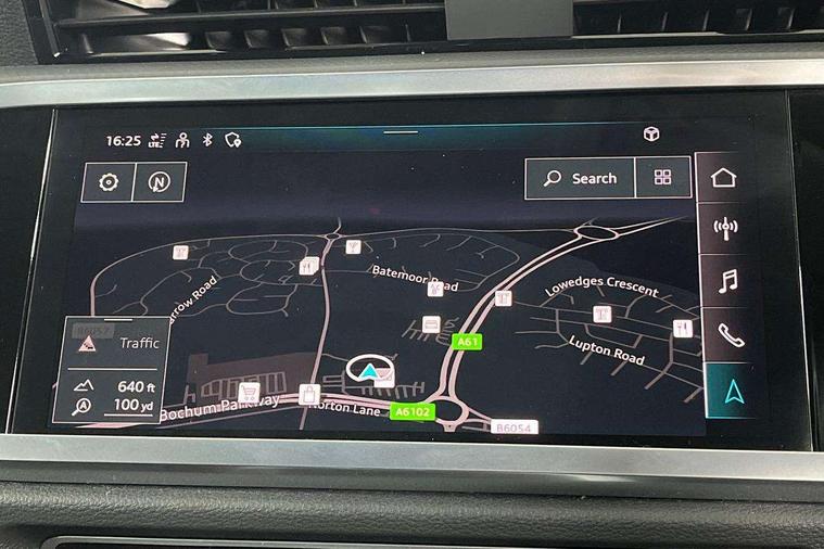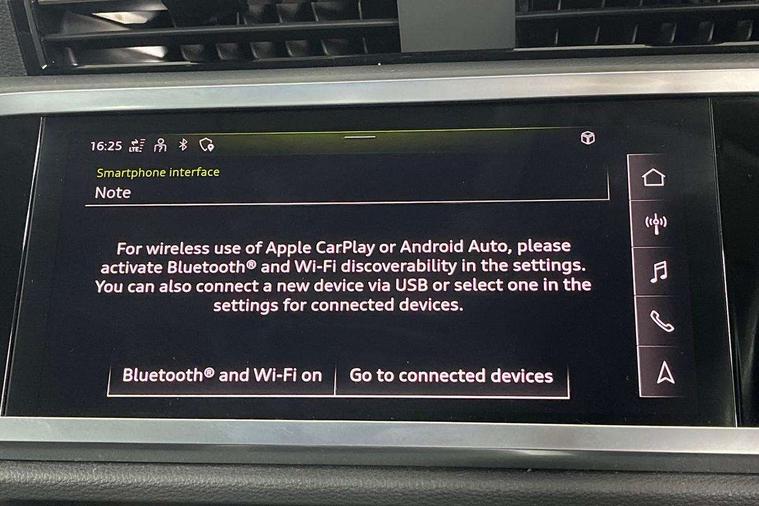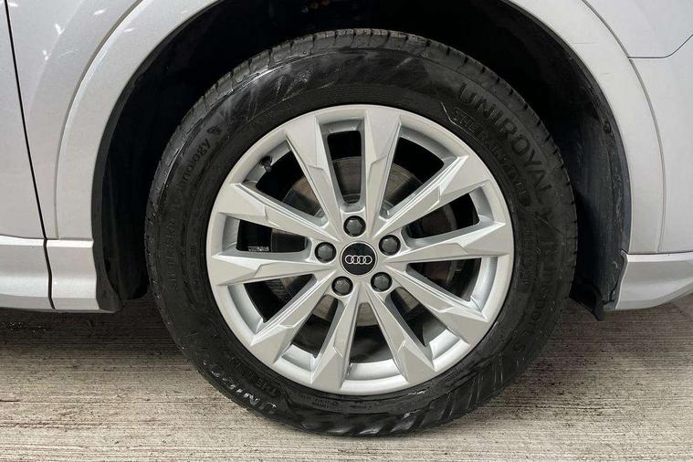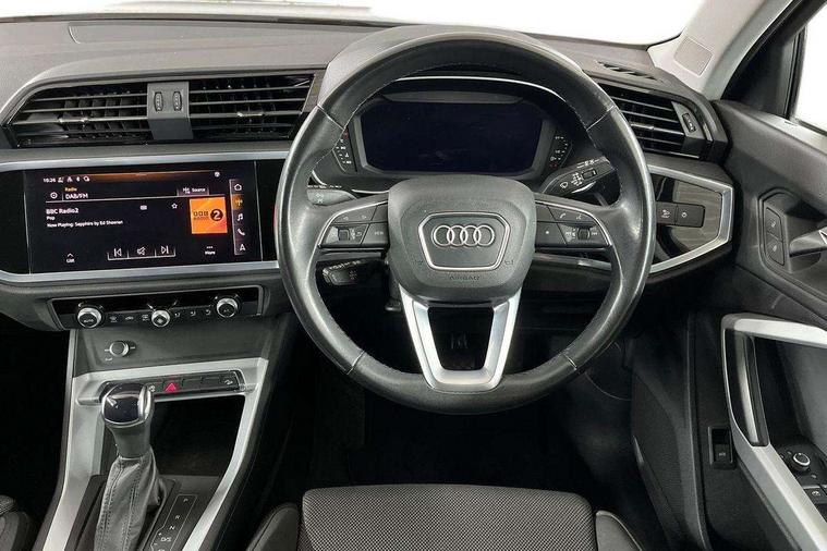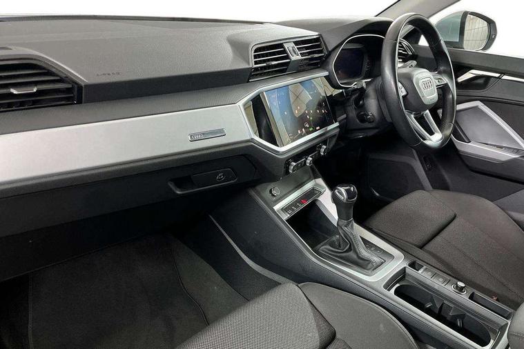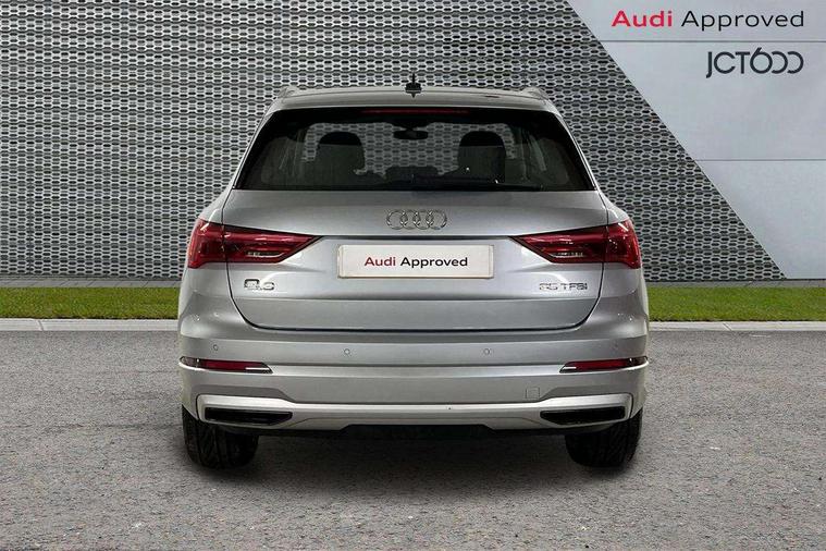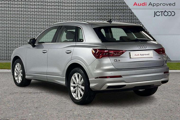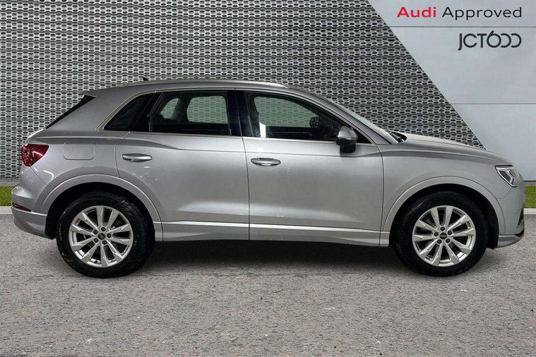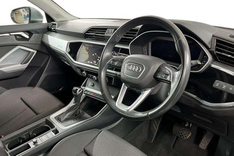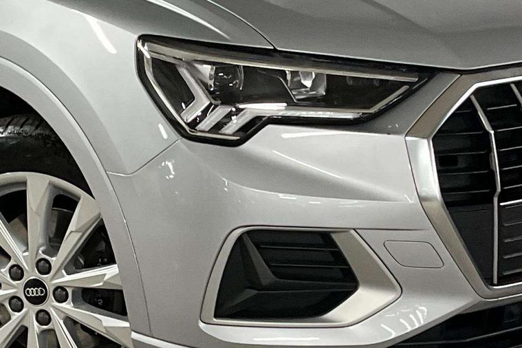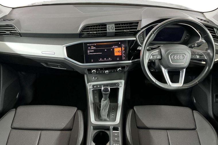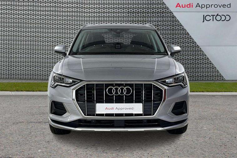 Amazon alexa Integration, Audi drive select, Audi lane departure warning, Audi Virtual Cockpit - 10.25" display, Bluetooth interface, Camera based traffic sign recognition, Legal emergency call, MMI Navigation Plus with high resolution 10.1 inch touchscreen colour display, Power operated tailgate, Progressive steering, Service interval indicator, Smartphone interface includes wireless Apple carplay/Android Auto, Start stop system with recuperation, Voice control system with natural language interaction, Standard suspension, 2 USB-C ports with charge and data functions, 6 passive loudspeakers, DAB digital radio module, Acoustic windscreen, Aluminium roof rails, Aluminium window trim, Auto dimming frameless rear view mirror, Body coloured bumpers, Electrically folding, adjustable and heated door mirrors with integrated LED side indicators and kerb view function for passenger side, Front and rear electric windows, Front fog lights, Front side air inlets in matt selenite silver, Front spoiler in matt selenite silver, Grille vertical bars in aluminium silver/Matt, High gloss black finish B and C pillars, LED Dynamic rear indicators, LED headlights with LED daytime running lights, LED rear lights, LED third brake light, Rain and light sensors, Rear diffuser strip in matt selenite silver, Rear side wing doors, Rear wiper, Titanium black radiator grille, Variable front intermittent wipers, 12V socket in rear centre console, 3 seat bench in 2nd row, 3 spoke multi-function leather steering wheel, 40:20:40 folding with manual adjustment for 60:40 forwards/backwards position and backrest angle, Door sill trims with aluminium inlay, Dual zone electronic climate control, Front and rear floor mats, Front and rear headrests, Front and rear roof module including reading lights, Front centre armrest, Glove compartment lighting, Height and reach adjustable steering wheel, ISOFIX child seat mounting for front passenger with airbag deactivation and outer rear seat including top tether attachment point for outer rear seats, Luggage compartment light, Lunar silver cloth headlining, Manual front seats with height adjustment, Single front passenger seat, Stainless steel luggage compartment sill finisher, Non smoking pack - Q3, 3x3 point rear seatbelts, 6 airbags - Driver, front passenger, curtain and side windows, Audi pre-sense front with pedestrain and cyclist recognition, Electrically operated child locks on rear doors, Electromechanical parking brake, Electronic stabilisation control including ABS, ASR and EDL, Front seatbelt reminder, Hill descent control, Hill hold assist, Pre sense basic, Seatbelt monitoring, Tyre pressure warning, Warning triangle and first aid kit, Anti theft alarm, Anti theft wheel bolts, Immobiliser, Remote central locking, Detail dashboard around MMI touch colour display in glass look, black with surround in aluminium look, Micrometallic silver inlay,
