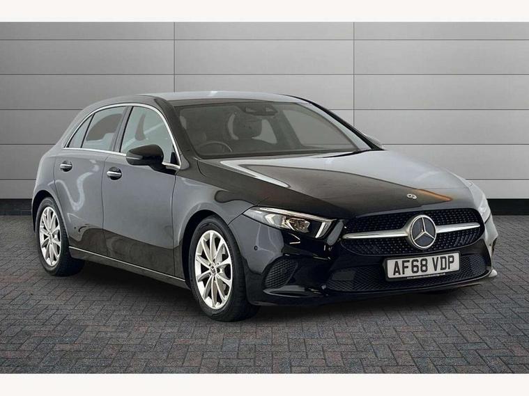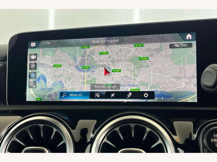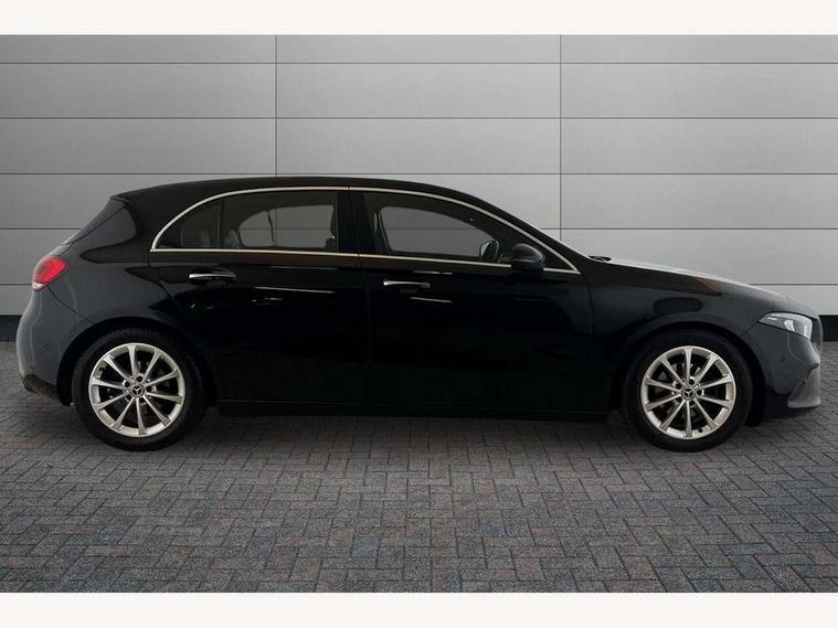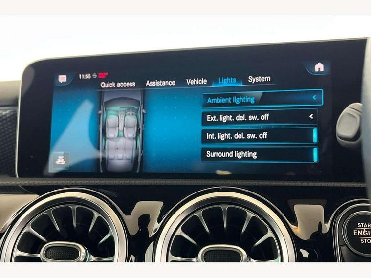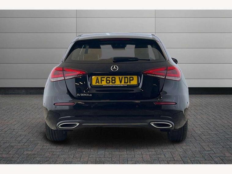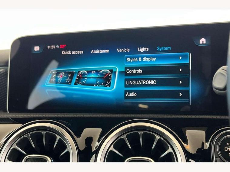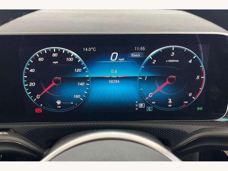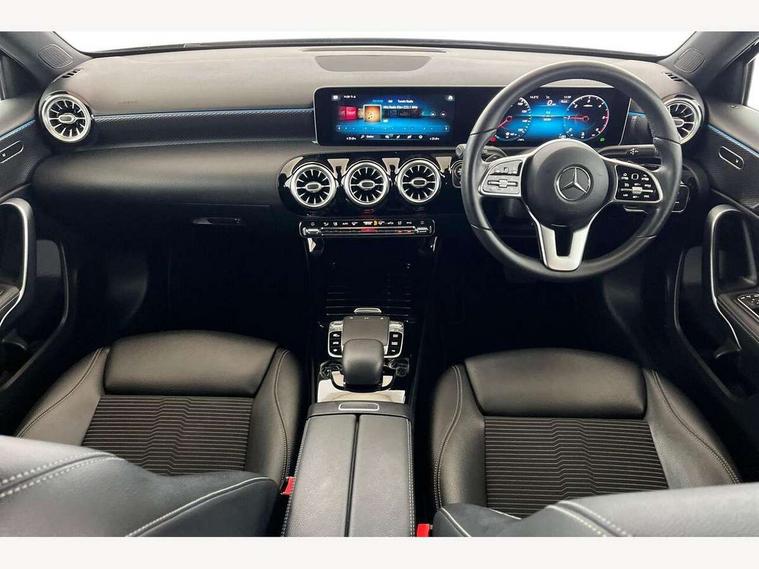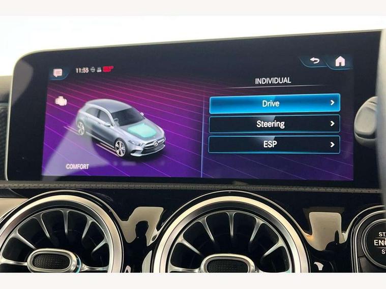 10.25" Digital instrument cluster display screen, 10.25" media display, Active lane keep assist, Active park assist with parktronic system, Attention assist, Bulb failure indicator, Cruise control + speed limiter, Direct steering, DYNAMIC SELECT with a choice of driving modes (ECO, Comfort, Sport, Sport+ and Individual), External temperature gauge, Low fluid warning light, Mercedes connect me with remote online services, Radio aerial integrated into roof spoiler, Reversing camera, Service indicator (ASSYST PLUS), Speed sensitive power steering, Stop/start system, Trip computer, Voice control system, Warning lamp for direction indicators, Lowered comfort suspension, 2 USB ports in centre console, DAB Digital radio, MBUX Multimedia system including digital instrument cluster and phone mirroring, Mid-range sound system, Adaptive brake lights, Auto dimming driver's door mirror, Auto dimming rear view mirror, Body colour bumpers, Body colour door handles, Body colour side skirt, Body coloured door mirrors, Chrome beltline trim, Chrome weather strip, Diamond radiator grille with black pins with one louvre in silver + chrome insert, Electric adjustable heated door mirrors, Electric folding door mirrors, Electric front windows, Electric rear windows, Headlamp assist, Heated rear window with timer, High beam assist, High level third brake light, LED daytime running lights, LED Headlights, LED rear lights, Rain sensor windscreen wipers, Rear fog lights, Rear wiper, Twin Trapezoidal tailpipes, 1/3 to 2/3 split folding rear seats, 12V socket, 3 spoke leather multifunction sports steering wheel, Adjustable head restraints, Artico man-made leather upholstery, Auto Mercedes-Benz child seat recognition sensor, Black headlining, Controller on centre console with chrome surround, Dual zone automatic climate control, Exit lights, Floor mats, Footwell lights, Front and rear reading lights, Front centre armrest with storage compartment, Front door sills with Mercedes Benz lettering, Front head restraints, Front seat backs luggage nets, Gearshift paddles on steering wheel, Heated front seats, Height adjustable front seats, Height/reach adjustable steering column, Illuminated cup holders, Illuminated door sills, Illuminated glovebox, Illuminated storage compartment, Interior door handle illumination, Interior lighting - 64 colour Ambient lighting, Isofix rear child seat preparation, Load securing rings in luggage compartment, Luggage compartment cover, Oddments tray lighting, Reading lights, Rear armrest, Rear head restraints, Storage compartment under load area floor, Sunvisors with illuminated vanity mirrors, Touchpad, Twin front cupholders, Seat comfort pack - A Class, 3 rear 3 point seatbelts, ABS with Brake Assist, Active bonnet, Child proof door locks, Crash responsive emergency lighting, Drivers knee airbag, Dual stage driver/passenger airbags, Electronic parking brake, ESP with ASR, Front and rear seatbelt reminder, Front head airbags, Front passenger seat occupancy sensor, Front side airbags, Hill start assist, Tyre pressure monitoring system, Warning triangle and first aid kit, Window airbags, Alarm system/interior protection/immobiliser, Keyless Go access/ignition system, Remote central locking, Carbon fibre interior trim finishers, Chrome air vent surrounds, 17" 10 spoke light alloy wheels painted in vanadium silver, Tirefit sealant with electric air pump,