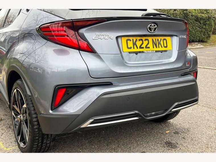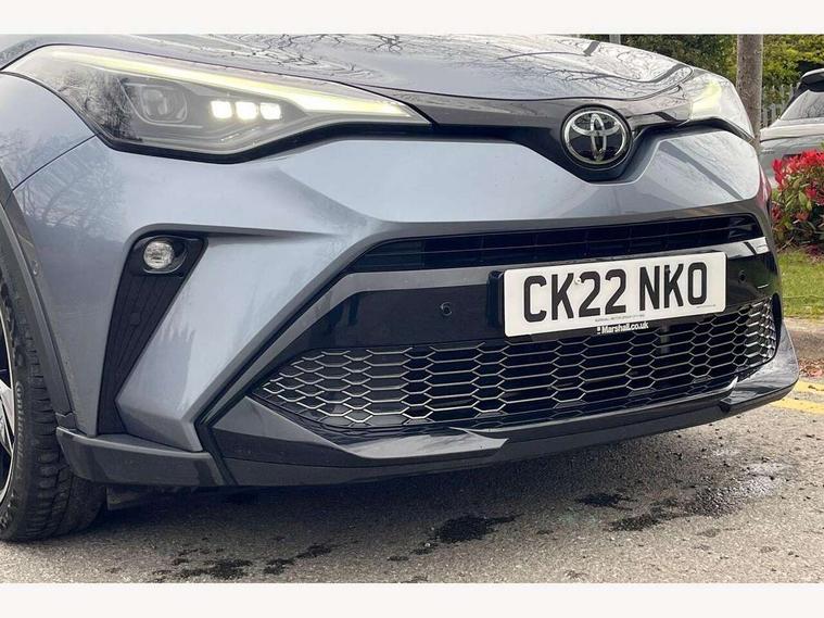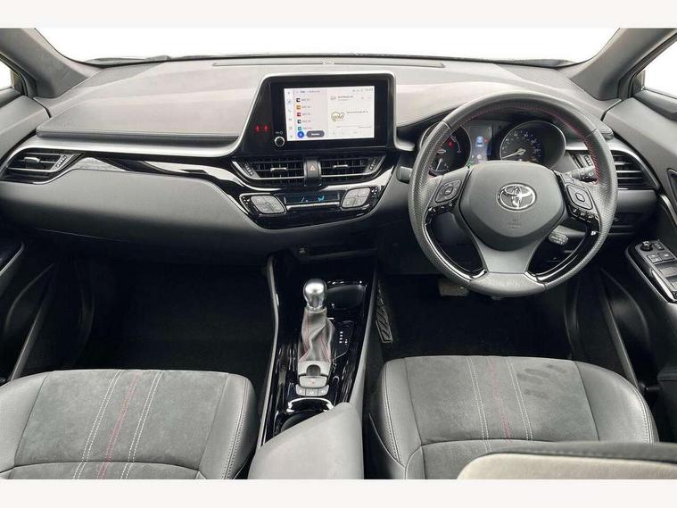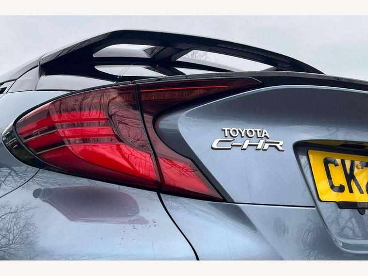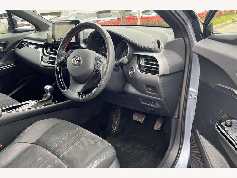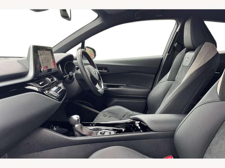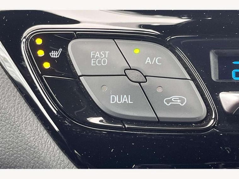 4.2" coloured TFT screen for multi-information display, Adaptive cruise control, Bluetooth connectivity, E-call, Electric power steering, Hybrid system indicator, Lane departure alert with steering control, Remote boot door release in cabin, Remote boot door release in key, Reversing camera, Road sign assist - RSA, Simple Intelligent parking assist, Touch 2 Go navigation system, Trip computer, Voice recognition, Vehicle Stability Control (VSC), 6 speakers, AM/FM radio, DAB Radio (Digital Audio Broadcasting), Toyota touch 2 multimedia system with 8" display, USB connector, Wi-fi connectivity, Adaptive front light system, Adaptive LED Headlights, Anti-jam protection on power windows, Auto high beam, Auto up and down function on all power windows, Automatic headlight levelling, Automatic headlights, Automatic headlights cut-off, Black and body coloured rear bumper, Black upper front grille, Body colour door handles, Body colour door mirrors, Body coloured front bumper, Boot door release with push button, Chrome front lower bumper, Electric heated door mirrors, Follow me home headlights, Front and rear power windows, Front spoiler lip in black, Honeycomb lower front grille, LED daytime running lights, LED fog lights, LED front light guide, LED High mounted stop light, LED rear brake lights, LED rear combination lights, Noise reduction layer on front windows and windscreen, Power adjustable door mirrors, Privacy glass, Rain sensor, Rear sequential indicators, Rear side wing doors, Rear spoiler, Rear tailgate, Rear window defogger, Rear window wiper, Shark fin antenna, UV-filter on driver and passenger windows, UV-filter on rear windows, 12v power outlet - front, 3 rear headrests, 3 seat bench in 2nd row, 3 spoke perforated leather steering wheel, 60/40 split folding rear seat, Adjustable rear headrests, Adjustable speed limiter switch on steering wheel, Assist grips front and centre pillar, Audio and telephone switches on steering wheel, Black front door assist grips, Blue ambient lighting on front cup holders, Blue ambient lighting on front doors, Boot light, Chrome interior door handles, Driver and front passenger personal light, Driver and front passenger Whiplash Injury Lessening seats, Driver and passenger seatback pockets, Dual zone automatic air conditioning, Fabric upholstery, Floor mats, Front cupholders, Front head restraints, Front sports seats, Glovebox with internal light, Hard tonneau cover, Heated driver and front passenger seats, Hooks for luggage holding net, Humidifying Nanoe air purifier, Illuminated entry system, Isofix attachments on outer rear seats, Leather gearshift, Light on driver sun visor, Light on passenger sun visor, Manual telescopic steering wheel, Manual tilt steering wheel, Manually height adjustable driver seat, Manually height adjustable front passenger seat, Manually reclining driver seat, Manually reclining front passenger seat, Manually sliding driver seat, Manually sliding front passenger seat, Microphone on front personal light, Mirror on driver sun visor, Mirror on passenger sun visor, Multimedia switches on steering wheel, Pollen filter, Power adjustable lumbar support on driver seat, Shopping bag hooks, Single front passenger seat, Slow opening on lower glovebox, Voice recognition switch on steering wheel, Tech with parking sensor pack - C-HR, 16 Disk front wheel brake, 3x3 point rear seatbelts, ABS+EBD+Brake assist, Electronic parking brake, Front and rear seatbelt reminder, Front passenger airbag on/off switch, Hill start assist control (HAC), Pre collision system with pedestrian detection, Pre-tensioners and force limiters, Rear door child safety locks, SRS Airbags - Driver + Front passenger, front side, front and rear curtain and driver's knee airbags, Toyota safety sense, Tyre pressure monitoring system, Acoustic vehicle alert system (AVAS), Glass-breaking alarm sensors, Immobiliser, Intrusion alarm, Intrusion sensor, Motion sensor alarm, Power passenger window lock, Remote central locking, Black lower dashboard, Black upper dashboard, Piano black console, Silver deco line on upper dashboard, 19" Black machined alloy wheels, Tyre repair kit,