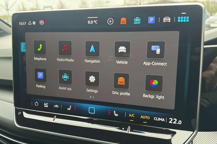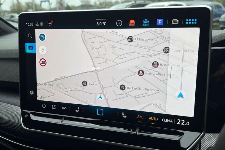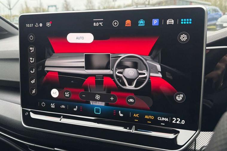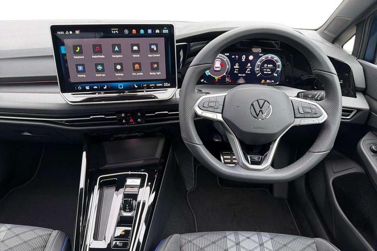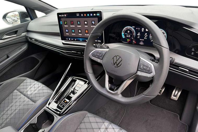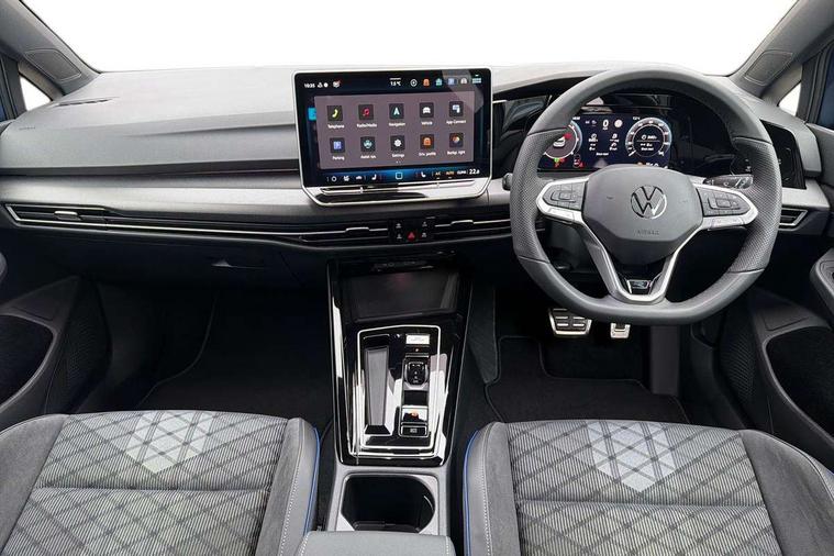 Activated carbon canister, Adaptive cruise control (ACC), Advanced driver attention and drowsiness monitor, Dynamic road sign display, Dynamic steering, E-Sim card for online connectivity, eCall emergency call system, Multi-color Digital cockpit pro, selection of different info profile possible, Multifunction front facing camera for distance control, Navigation system, Oncoming vehicle braking when turning including swerve support, Speed limiter, Speedo, rev counter, electronic odometer, trip, service interval display, exterior temperature and fuel gauge, Traffic jam assist, Voice enhancer and voice control, Warning signal and warning light for front and rear seatbelts not fastened, We connect plus preparation, We connect preparation, Wireless app connect, Diesel particulate filter, Start-stop system with battery regeneration (recuperation - energy recovery during braking), XDS electronic differential lock for improved traction and handling, 2 USB C ports in front, 2 USB charging sockets on the centre console in the rear charging capacity upto 45W, Digital radio reception (DAB), Diversity antenna for FM reception, Gaming platform via car app, Infotainment system with 12.9" display, Mobile phone interface with inductive charging feature, 3rd brake light, Auto dimming rear view mirror, Automatic headlamp activation with Coming home and Leaving home feature, Body colored bumpers in R-Line style, Body colour door handles, Exterior ambient lighting, Exterior mirrors convex on the left and aspherical on the right, Front and rear electric windows, Heat insulating windshield made of laminated glass, LED separate daytime running light, Rain sensor, Rear exhaust tailpipe, Rear fog light on one side and reversing lights on both sides, Rear side wing doors, Rear windscreen washer and wiper with interval delay, Remote electrically foldable door mirrors, puddle lights and reverse activated passenger's door mirror, Volkswagen logo in front, illuminated lighting animation with wake up/goodbye scenario and illuminated door handles, Welcome light with surround lighting, 12V socket in front centre console, 12V socket in luggage compartment, 3 rear head restraints, 3 seat bench in 2nd row, Ambient lighting with 30 colour including LED light unit in front footwell with selectable light colour, Black roof lining, Brushed stainless steel pedals, Chrome plated radiator grille inserts, air vent surrounds and light switch surrounds, Front + rear black carpet mats, Front centre armrest, Integrated front head restraints, ISOFIX anchors for child seats on outer rear bench seats and on front passanger seat compatible for i-Size, Luggage compartment lighting, Plastic gear knob, Premium sports seats in front, Rear cupholder and loadthough, Single front passenger seat, Split folding backrest with centre armrest and unsplit rear seat bench, Sun visors with illuminated vanity mirrors, Titanium black instrument panel, Black exterior Styling package with Matrix LED headlights - Golf, 3 point height adj front seatbelts + pretensioners, 3 rear three point seatbelts, ABS, Autonomous emergency braking front assist with pedestrian and cyclist monitoring, Child locks on rear doors, Driver and front passenger airbag with front passenger airbag deactivation, Electronic parking brake with auto hold, ESC (Electronic Stability Control), Extended pedestrian protection measures, Hill start assist, Rear disc brakes, Two tone horn, Tyre pressure loss indicator, Volkswagen roadside assistance, Anti theft wheel bolts, Preparation for alcohol interlock, Decorative inserts carbon grey for dashboard and front door trim panels, 18" Leeds alloy wheels,