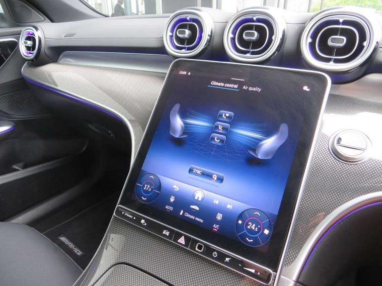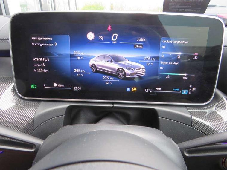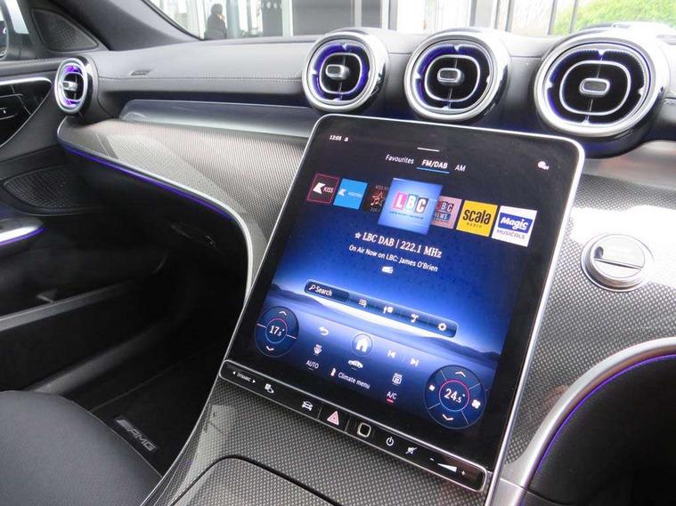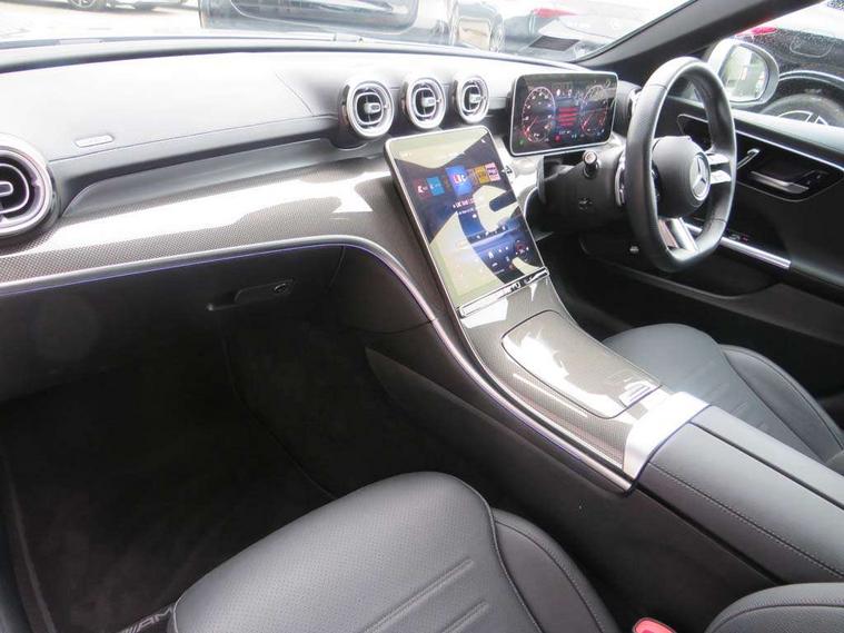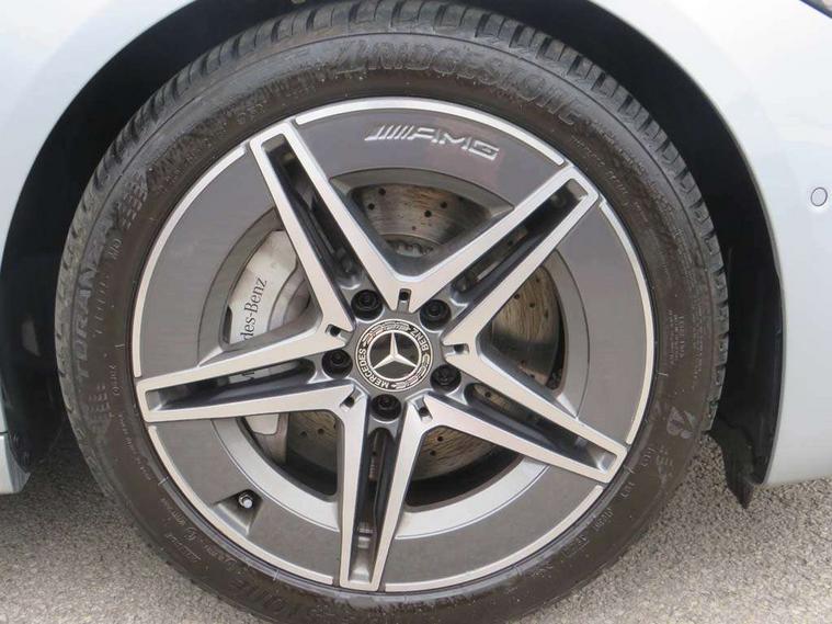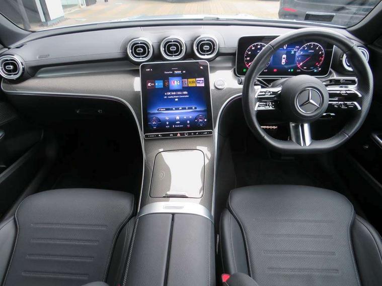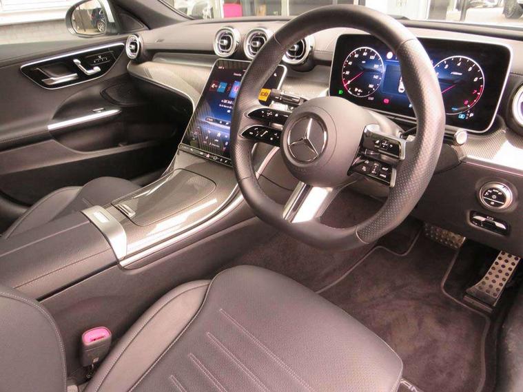 11.9" high resolution multimedia colour display, 12.3" digital instrument cluster display, Active lane keeping assist, Active parking assist with PARKTRONIC, Attention assist, Blind spot assist, Cruise control with speedtronic variable speed limiter, DYNAMIC SELECT with a choice of driving modes (Comfort, ECO, Sport, Sport+, Individual), E-call, Extended MBUX functions, Finger print sensor, Fluorescent jacket for driver, Hard disc navigation, MBUX navigation premium, Mercedes me remote services, Outside temperature gauge, Service indicator (ASSYST), Smartphone integration, Sports direct steer speed sensitive steering, Status display for rear seat belts in instrument cluster, Traffic sign assist, Wireless charging system for mobile devices, 66 litre fuel tank, 9G TRONIC 9 speed automatic transmission, Petrol Particulate Filter, Sport suspension, DAB Digital radio, MBUX multimedia system, Adaptive brake lights, Adaptive high beam assist, AMG body styling front apron, rear apron and side skirts, AMG Line exterior, Body coloured bumpers, Body coloured door mirrors, Electric windows with one touch opening/closing and obstruction sensors, Electrically adjustable and heated door mirrors, Heat insulating dark tinted glass, LED daytime running lights, LED high performance headlamps, LED Indicators, LED tail lights, LED third brake light, Radiator diamond grille with integrated Mercedes Benz star with chrome pins, Rain sensor with automatic windscreen wiper activation, Rear boot, Rear side wing doors, Two visible exhaust pipes integrated into rear bumper, 3 seat bench in 2nd row, 40:20:40 split folding rear bench seat, Ambient lighting premium, Ambient lighting with projection of brand logo, AMG floor mats, AMG line interior, Artico man-made leather upholstery, Auto Mercedes-Benz child seat recognition sensor, Black roof liner, Double cupholder in centre console, Electrically height/reach adjustable steering column, Folding rear seat backrest, Front and rear head restraints, Gearshift paddles on steering wheel, Heated front seats, Illuminated door sills with Mercedes Benz lettering, Illuminated glove compartment stowage, Multifunction sports steering wheel in nappa leather, Rear top tether child seat ISOFIX attachment, Single front passenger seat, Sports seats, Sunvisors with illuminated vanity mirrors, THERMATIC 2 zone automatic climate control, Interior light package - C Class, Memory package - C Class, Mirror package - C Class, Parking package with reversing camera - C Class, Stowage space pack - C Class, USB package plus - C Class, 3 rear 3 point seatbelts, Active bonnet pedestrian safety measure which detects an impact and raises bonnet, Active brake assist, Adaptive brake system with HOLD function and brake drying in the wet, Anti-lock braking system (ABS), Black seat belts, Brake calipers with Mercedes-Benz lettering + perforated front brake discs, Child proof door locks, Drivers knee airbag, Drivers pelvis airbag, Dual stage driver/passenger airbags, Electric parking brake, Electronic Stability Programme (ESP), Front centre airbag between driver and front passenger seats, Front side airbags, Tyre pressure monitoring system, Warning triangle and first aid kit, Window airbags for driver, front passenger and rear passenger, Antitheft alarm system, Interior monitoring system and Increased antitheft protection, Central locking with interior switch, automatic locking and crash sensor with emergency opening function, Chrome surround in electric key, Urban guard vehicle protection plus, Dashboard, instrument panel and beltlines in ARTICO man made leather in nappa look, Metal structure trim element with centre console in metal structure finish, 18" AMG 5 spoke light-alloy wheels painted in tantalite grey with high sheen finish, TIREFIT with tyre inflation compressor,