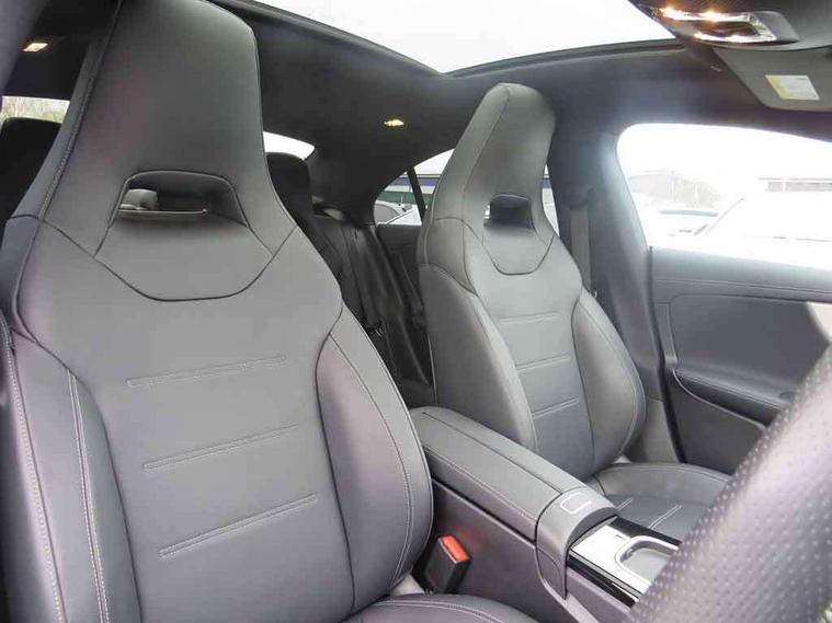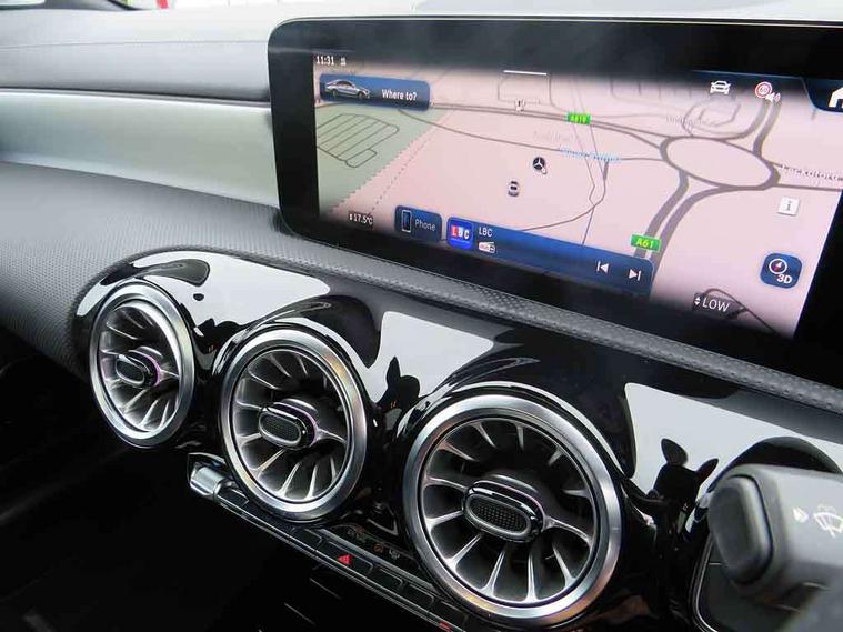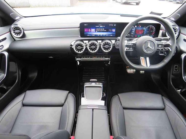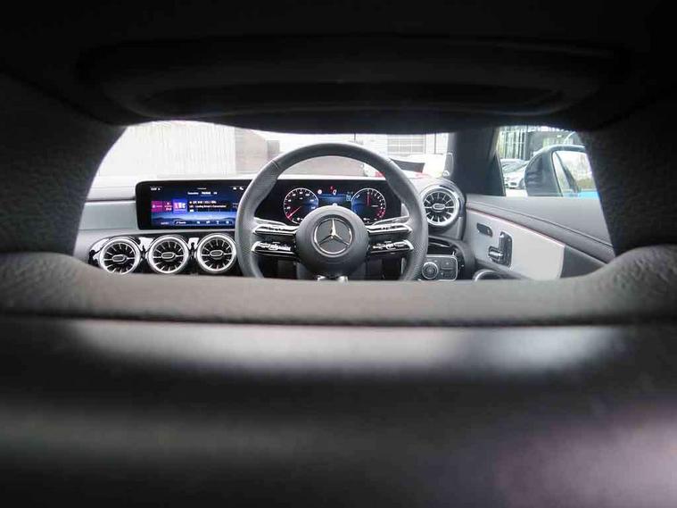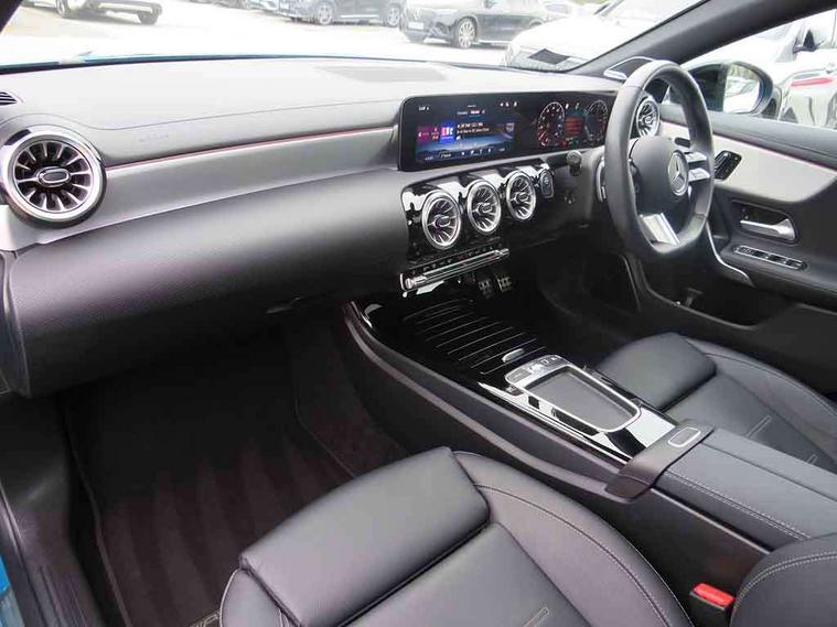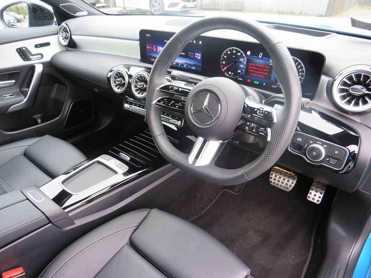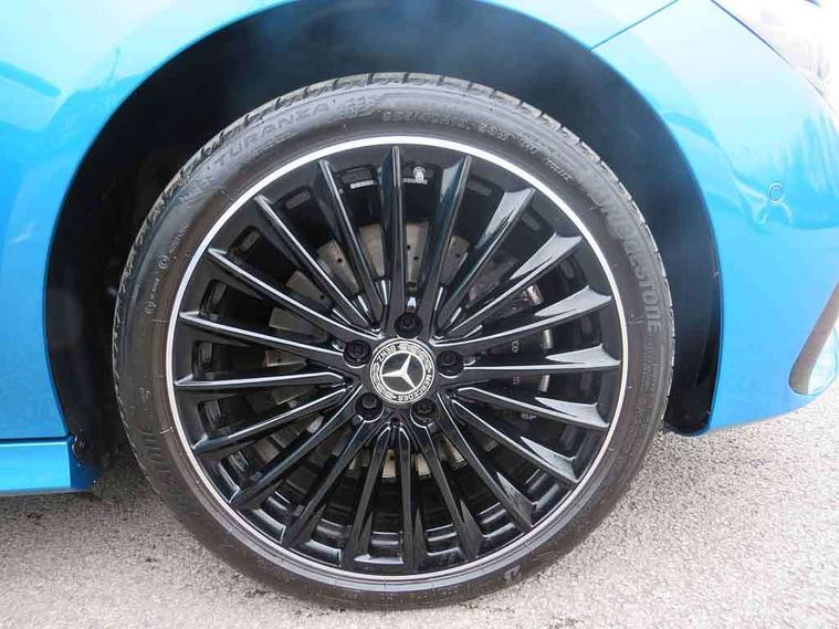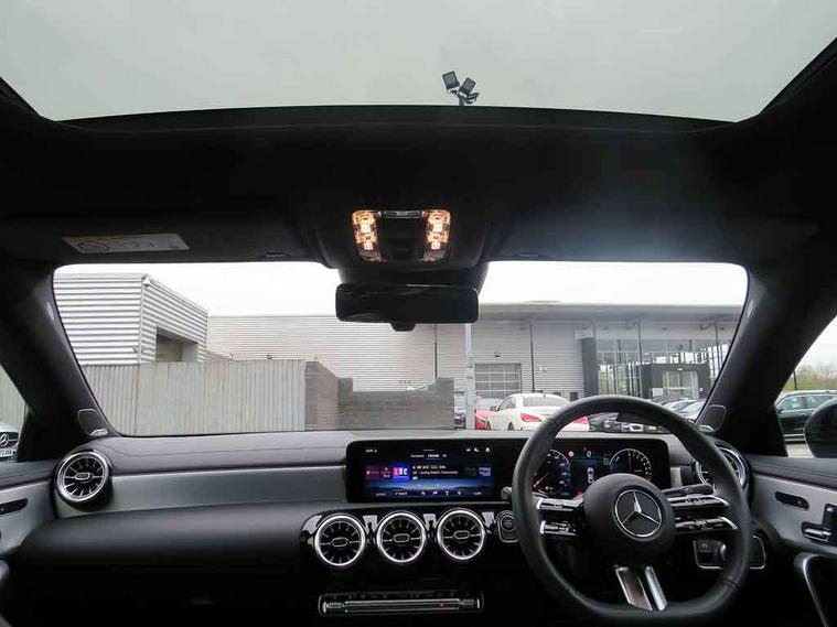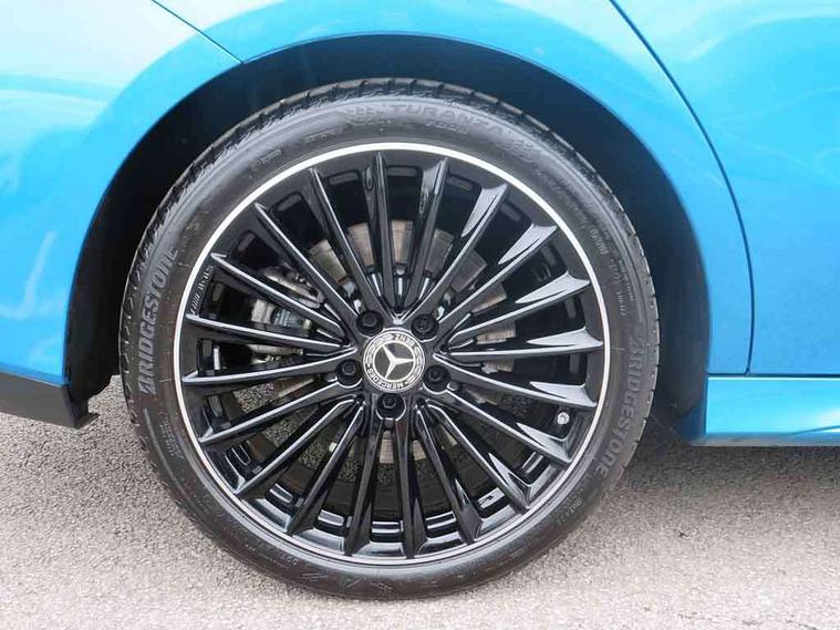 10.25 inch Instrument display with digital cockpit, 10.25 inch touchscreen central media display, Acoustic ambient protection, Active lane keeping assist, Attention assist - Monitors steering behaviour and long journey fatigue, Bluetooth connection, Car wash mode, Cruise control with limiter, Direct steer system, DYNAMIC SELECT with a choice of driving modes (ECO, Comfort, Sport and Individual), ECO start/stop function, Fingerprint sensor, Fluid level warning indicator for fuel, oil, coolant and washer fluid, Hard-disk navigation, Head up Display, Hey Mercedes Voice activation, Lamp failure indicator, Mercedes me connect including emergency call system, accident recovery, breakdown and maintenance management, Mercedes me remote and charging services plus, Outside temperature gauge, Owners manual in English, Pre-installation of private car share, Radio aerial integrated into front and rear windshields, Service indicator (ASSYST), Smartphone integration with Apple CarPlay and Android auto, Traffic sign assist, Trip computer in multifunction display with current consumption indicator, Wireless charging in the front centre console, Charging system - AC charging system rated at 11kW, Charging system - DC charging system rated at 22kW, Comfort suspension, Mode 3 charging cable for wallbox and public charging stations with 5m upto 11kW, Rear axle torsion beam, Burmester lettering on the speakers, Burmester surround sound system (710W) with dolby atmos, speakers - 1 central, 1 woofer, 1 tweeter, 1 subwoofer with 60W, 2 in C pillar, DAB digital radio tuner, MBUX multimedia system, Pre installation for Mercedes Benz Link, Adaptive brake lights, AMG body styling with AMG front apron and rear apron and visible exhaust tailpipe in chrome trim elements, Body colour door handles, Electric panoramic sunroof with automatic tilt and convenience closing fuinctions, rain sensor auto closing and electronic roller sunblind, Electric windows, Electrically adjustable and heated door mirrors with integrated LED indicators, Exhaust system with 2 Visible tailpipe trim elements and rear apron with trim in chrome, Hand free access, Headlamp assist automatic headlamp activation, Heated glass rear windscreen + timer control, High level LED third brake light, Integrated LED daytime running lights, Interior mirror with black reading lamps and frameless, LED tail lamp, Multibeam LED headlamps with adaptive highbeam assist plus, Privacy glass with dark tinting on rear side windows and rear window, Radiator grille with Mercedes-Benz pattern in chrome and central Mercedes star, single louvre in high-gloss black with chrome inserts, Rain sensing windscreen wipers with two sensitivity settings, Rear boot, Rear fog lamp, Rear side wing doors, Variable front intermittent wipers, 3 seat bench in 2nd row, 3 twin spoke flattened multifunction steering wheel in nappa leather - horizontal twin spoke in high gloss black, vertical twin spoke in silver chrome, 40:20:40 split folding rear seat backrests, Air conditioning - Two zone thermotronic luxury automatic climate control with display, Air vents with surround in silver chrome, Automatic child seat recognition sensor, Black roof lining, Brushed stainless steel sports pedals with rubber studs, Charging socket, Electrically adjustable front memory seats including 4 way lumbar support, Floor mats with stitched AMG lettering, Fluorescent jacket, Front centre armrest with stowage, Galvanished gear shift paddles in silver chrome, Interior lighting - 64 colour Ambient lighting, Luggage net on driver/front passenger seat backrest, Manually height and reach adjustable steering column, Pre-entry climate control, Rear armrest with two integral cup holders for drinks, Rear head restraints, Single front passenger seat, Sport seats with fixed head restraints, Stowage compartment in centre console with retractable cover, Sunvisors with illuminated vanity mirrors, Twin front cupholders, Two outer rear seat isofix and top tether child seat fixing points, Drive parking assist pack with 360 degree camera - CLA, Keyless go comfort pack - CLA, Light and sight pack - CLA, Mirror pack - CLA, Night package - CLA, Seat comfort pack - CLA, USB package plus - CLA, Winter pack - CLA, Active bonnet pedestrain safety measure which detects an impact and raises bonnet by 65mm, Adaptive brake assist with hold function and hill start assist, Anti lock braking system (ABS) with brake assist, Black seat belts, Bonnet with power domes, Brake calipers with Mercedes-Benz lettering, Brake pad wear warning indicator, Childproof locks manually operated for rear doors and electrically operated for rear power windows, Crash responsive emergency lighting, Driver and front passenger head and sidebags, Driver and front passenger windowbags, Drivers knee airbag, Dual stage driver and front passenger airbags, Electric parking brake, Electronic stability programme with acceleration skid control, ESP curve dynamic assist, Exit warning, Front and rear seatbelt reminder, Front passenger seat occupancy sensor, Perforated front brake discs, Radar-based recuperation, Sports braking system, Three point rear seat belts, Tyre pressure monitoring system, Warning triangle and first aid kit, Alarm system with immobiliser and interior protection -Thatcham category 1, Guard 360 deg vehicle protection - tow away protection with visual, acoustic warning, interior monitoring, preinstallation for parking damage, Remote central locking and crash sensor with emergency opening function, Light aluminium with longitudinal grain interior trim, 19" AMG multi-spoke black painted light alloy wheels with high sheen rim flange, Summer tyres, Tirefit tyre sealant kit,