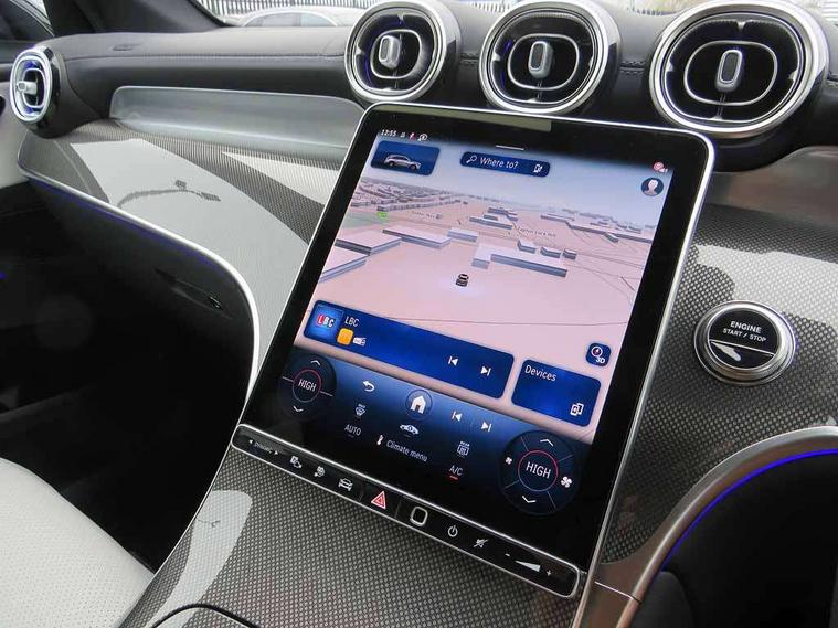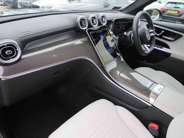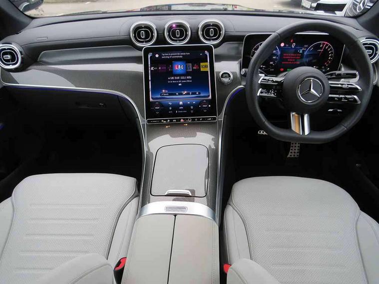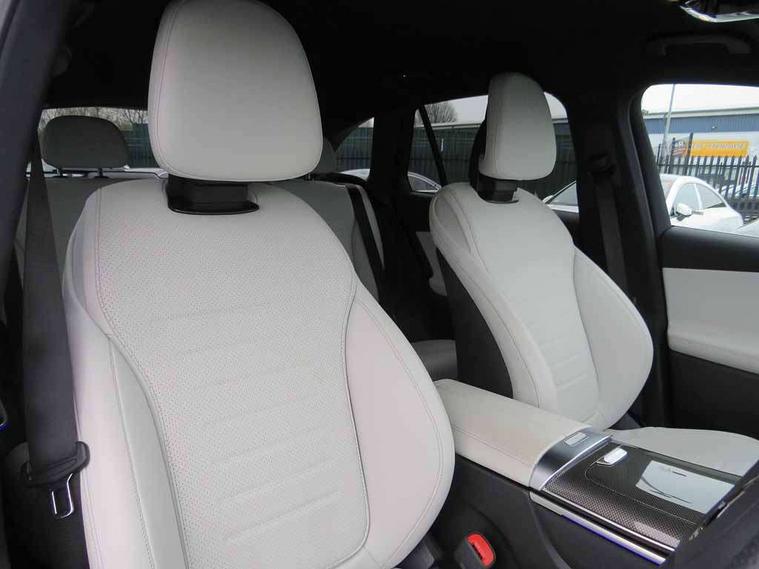11.9" high resolution multimedia colour display, 12.3" Digital individually configurable instrument display, Acoustic presence indicator, Active lane keeping assist, Attention assist, Blind spot assist, Bluetooth interface for hands free telephone, Collision prevention assist plus, Cruise control with speedtronic variable speed limiter, Direct steer speed sensitive steering, DYNAMIC SELECT with a choice of driving modes (ECO, Comfort, Sport and Individual), eCall emergency call system, ECO start/stop function, Fingerprint scanner, Fluorescent jacket for driver, Hard disc navigation, Instrument display in miles with English lettering, MBUX navigation premium, MBUX voice control activated by keywords "Hey Mercedes", Mercedes me connect, Multi function trip computer, Outside temperature display, Remote and charging services plus, Remote boot release, Service indicator (ASSYST), Smartphone integration, Speed limit assist, Status display for rear seat belts in instrument cluster, Tailgate, Traffic sign assist, Wireless charging system for mobile devices in the front, 1 x type 2 and 3 phase 4m straight wallbox cable, 49 litre fuel tank, 4MATIC permanent four wheel drive, 7.4 kW monophase on board charger, 9G TRONIC plus automatic transmission, Alternating current charging system (AC charging), Comfort suspension, DC Charging system, Petrol Particulate Filter (PPF), Self levelling suspension, DAB digital radio tuner, MBUX extended functions, Mercedes benz sound system, Pre installation for Mercedes Benz Link, Adaptive brake lights, Adaptive high beam assist, Aluminium look running boards with rubber studs, Aluminium roof rails, AMG bodystyling front apron, rear apron and side skirts, AMG Line exterior, Auto headlights, Body colour bumpers, Body colour door mirrors, Electrically adjustable door mirrors, EQ Hybrid badging on front wings, Front and rear electric windows, Headlight washers, Heat insulating dark tinted glass, Heated rear window, High level LED brake light, LED high performance headlamps with integrated LED daytime running lights, LED indicator lights, LED rear fog lights, LED tail lamp, Radiator grille with Mercedes Benz pattern and integreated Mercedes star and louvre in dark grey matt with chrome inlay and black frame, Rain sensor windscreen wipers, Range adjustable headlights, Rear side wing doors, Rear wiper, Two chrome plated tailpipe trim elements, Variable front intermittent wipers, Welcome and follow-me home light functionality, Wheel arch liners in the vehicle colour, 3 seat bench in 2nd row, 4 way lumbar support, 40:20:40 split folding rear seats, Ambient lighting premium with projection of brand logo, AMG floor mats, AMG line interior, Artico man-made leather upholstery, Audio and onboard settings control on multifunction steering wheel, Automatic child seat recognition sensor, Black fabric roof lining, Double cup holder in centre console, Easy-pack removable load compartment cover, Electrically height/reach adjustable steering column, Front centre armrest with stowage compartment, Front head restraints, Galvanised steering wheel gearshift paddles, Heated front seats, Illuminated door sill panels with Mercedes Benz lettering, Illuminated glove compartment, Instrument panel and beltlines in ARTICO manmade leather in nappa look, Multifunction sports steering wheel in nappa leather, Partition net, Rear centre headrest, Rear head restraints, Rear top tether child seat ISOFIX attachment, Single front passenger seat, Sports pedals with stainless steel surfaces and rubber studs, Sports seats, Sun visors, THERMATIC automatic climate control, Anti theft protection package - GLC, Boot comfort package - GLC, Easy tailgate pack - GLC, Exterior chrome package - GLC, Interior chrome package - GLC, Interior lighting pack - GLC, Memory pack - GLC, Mirror pack - GLC, Parking package with reversing camera - GLC, Stowage space package - GLC 300e/300de, USB Plus Pack - GLC, 3 rear 3 point seatbelts, Active braking assist, Anti-lock braking system (ABS), ASR traction control, Automatic front passenger airbag deactivation, Black seat belts, Brake calipers with Mercedes-Benz lettering + perforated brake discs, Child proof door locks, Dual-stage airbags - driver and front passenger, driver knee bag and window bags for driver, front passenger and rear passengers, Electronic parking brake, Electronic stability programme (ESP) with curve dynamic assist and cross wind assist, Front and rear seatbelt reminder, Front passenger seat occupancy sensor, Front seatbelt pretensioners, Hill start assist, Tyre pressure monitoring system, Warning triangle and first aid kit, Automatic door locking, Guard 360 degree vehicle protection plus, Interior protection/immobiliser, Keyless Go starting function, Remote central locking, Metal structure trim element with centre console in metal structure finish, 19" AMG 5 spoke aerodynamically optimised light alloy wheels in painted black with high sheen flange, Summer tyres, TIREFIT with tyre inflation compressor,
