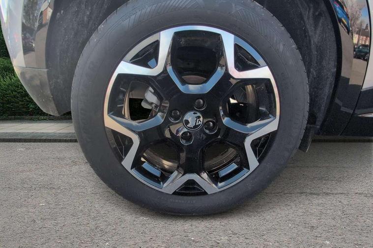 10" digital instrument cluster, Active drive assist, Adaptive cruise control, Digital instrumentation with digital speedometer, rev counter, fuel and water temperature gauge, Driver attention alert, Driver drowsiness alert system, Driver information display with multi function trip computer, audio info, digital clock and outside air temperature with ice warning function, Front and rear parking distance sensors, Lane keep assist system (LAS) with Lane departure warning system (LDWS), Lights on audible warning, Panoramic rear view camera, Power assisted speed sensitive steering, RDS with traffic programme, Side blind spot alert and flank guard, Speech recognition, Start/stop system, Vauxhall connect with e-Call, WiFi connectivity, Wireless phone projection with Apple CarPlay and Android Auto, Sports chassis, 2 rear USB connection, 6 speakers, AM/FM stereo radio with 36 station presets, DAB Digital radio, Front USB connection, Mobile phone portal - bluetooth connect, vehicle microphone, handsfree calls, SMS read out and reply, phone book access, Multimedia pure panel navigation system with 10" colour touchscreen and 15W wireless charger, Steering wheel mounted controls, Adaptive brake lights, Automatic headlamp levelling, Automatic lighting control with tunnel detection, Black DLO, Black door mirror housings, Black Griffin logo and vizor frame, Black lettering and emblems, Black upper window moulding, Body colour door handles, Body colour front and rear bumpers, Body colour skid plates, Dark tinted rear side windows, Electrically adjustable and heated door mirrors, Electrically foldable door mirrors, Electrically operated front and rear windows with safety auto reverse and one touch up/down facility, Electrochromatic frameless auto dimming rear view mirror, Hazard warning lights, Heated rear window+rear wash/wipe, High gloss black front and rear bumper inserts, High gloss black painted claddings, lower grille and front lateral inserts, High gloss black painted lateral moulding, Integrated black tailgate spoiler, IntelliLux matrix headlights with advanced forward lightning and anti glare beam, LED 3rd brake light, LED daytime running lights, LED side repeat indicators, Rain sensitive windscreen wipers, Rear side wing doors, Reversing light, Shark fin antenna, Solar heat absorbing windscreen and windows, Windscreen and side window demist vents, 12V Accessory socket, 3 seat bench in 2nd row, 4 speed fan with illuminated controls, 4 way electrical driver lumbar adjustment, 6 way adjustable front passenger seat including height adjustment, 60/40 split folding rear seat, Air recirculation system, Ambient lighting, Black headliner, Cabin particulate filter - removes dust, airborne particles and pollen, Chrome effect interior door handles, Door pockets with two litre capacity, Driver and passenger heated seats, Driver and passenger sun visors with vanity mirror, Driver seat massage function, Electronic climate control (ECC), Four adjustable facia vents, Four load restraint lashing eyes, Front centre armrest with storage, Front driver and co-driver side articulated grab handles, Front head restraints, Front map reading lights, Front seat back storage pockets, Fully carpeted load area, Heated steering wheel, Interior courtesy light, Interior tailgate handle, Luggage compartment cover, Luggage compartment lighting, Moveable boot floor, Reach + rake adjustable steering column, Rear Reading Lamps, ReNewKnit fabric/leather upholstery, Single front passenger seat, Three height adjustable rear seat head restraints, Twin gas assisted tailgate struts, 2x Isofix child seat fitting on outer rear seats, 3x3 point rear seat belts, Anti-lock braking system (ABS), Child proof locks on rear doors, Cornering brake control, Deactivation switch for front passenger front and side impact airbags, Drag torque control, Driver and front passenger airbags, front seat side impact airbags, full size curtain airbags, Electronic brake force distribution, Electronic Stability Programme (ESP), Emergency brake assist, Enhanced automatic emergency braking with pedestrian and bicycle detection, Forward brake assist, Forward collision alert at all speed, Hill start assist, Inertia reel lap and diagonal seatbelts for all seats, Manual parking brake, Seatbelt unfastened audible warning and warning light, Straight line stability control, Traction control, Tyre pressure monitoring system, Electronically protected audio equipment, Engine deadlock immobiliser, Freewheeling door locks, Key left in ignition audible warning, Keyless entry and start, Locking wheel nuts, Remote control central locking, Remote control ultrasonic security alarm system, Visible vehicle identification number, Black facia with silver trim insert, Light grey trim inserts on front doors, Vegan door inserts, 18" Black diamond cut alloy wheels,