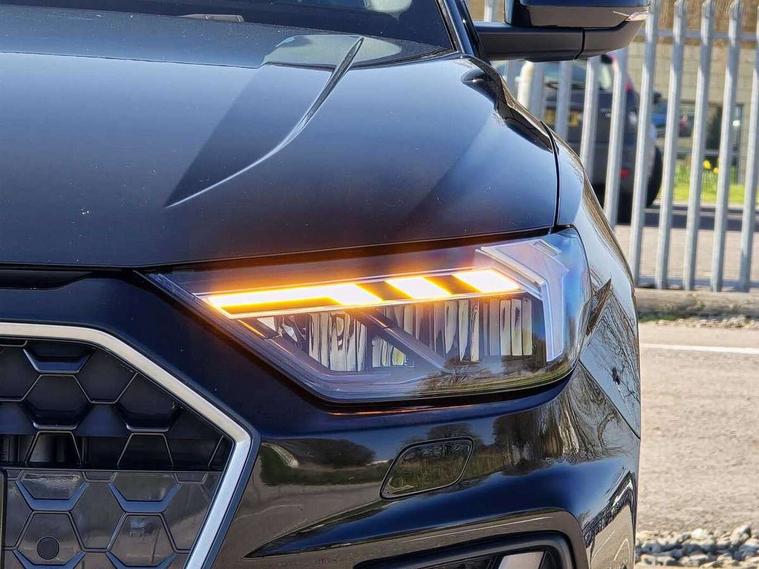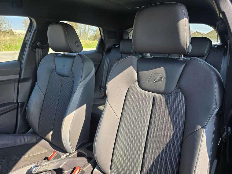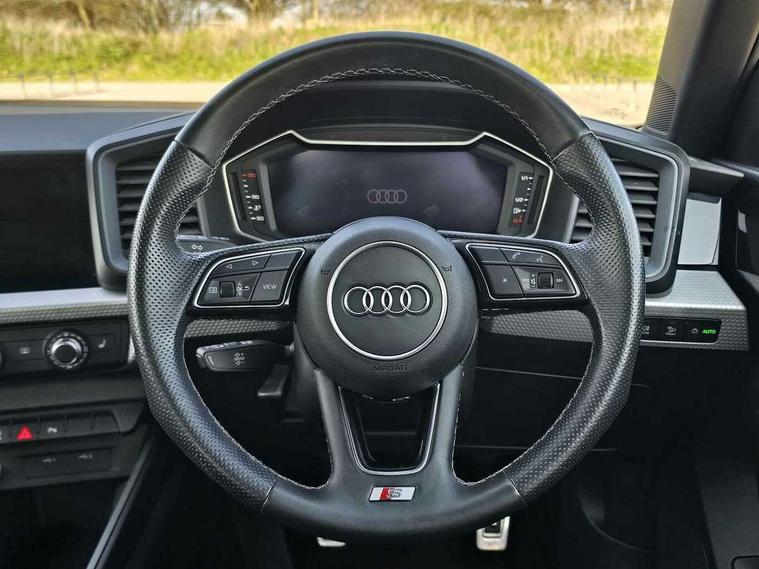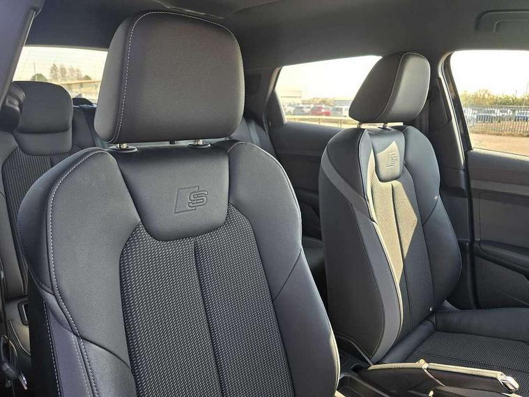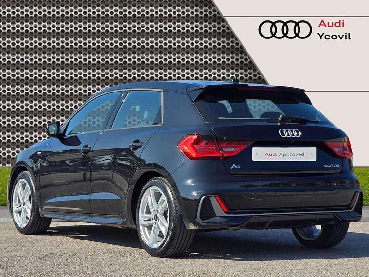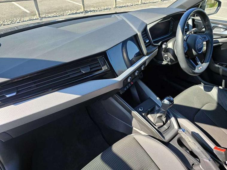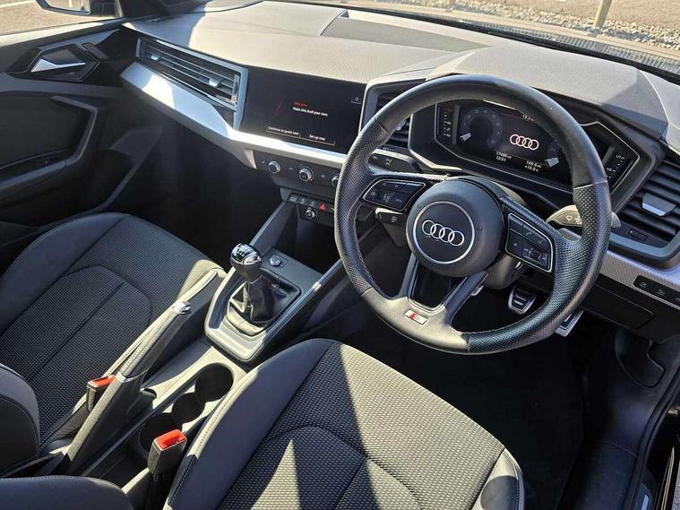 10.25" Digital instrument cluster display classis style instrument dials + speed, odometer, time, outside temperature, telephone menu + fuel level warning, Audi drive select - power steering assistance + engine, Audi smartphone interface with connect compatible smartphone via USB directly MMI display + Nav, music, third party apps controlled via MMI controller, Automatic start/stop system, Bluetooth interface, Cruise control, Driver's information system, Electromechanical power steering, Emergency e-call, Emergency services call system, Lane departure warning system, Service interval indicator, Speed limiter, Voice control system, Washer fluid level indicator, Sports suspension, 1 x SDXC card reader, 2 x USB type C connection points, DAB Digital radio, MMI radio plus with 8.8" colour MMI display screen and MMI touch, Auto dimming rear view mirror, Body coloured door mirrors, Door sills with aluminium inlays and S Line logo, Electric front and rear windows, Electrically adjustable, heated, folding door mirrors with integrated LED side indicator, Front side air inlets in grained matt black and C frame in anthracite black, Heat insulating glass windscreen and side windows, Heated rear windscreen, High level LED brake light, LED headlights with LED rear lights + dynamic rear indicators + headlight adjustment and high beam, turning light + LED daytime running lights, Radiator grille and rear diffuser in matt anthracite black, Radiator protective grille frame in matt aluminium silver, Rain and light sensors, Rear fog lights, Rear side wing doors, Rear wing door, Rear wiper, S line badges on front wings, Side front spoiler lips in grained matt black, 12V socket in centre console with two cup holders, 3 rear seats with headrests, 3 seat bench in 2nd row, 3 spoke leather multi-function plus steering wheel features S badging and grips in perforated leather with contrast stitching, 40:60 Split folding rear seat or folded fully, Black cloth headlining, Driver and passenger seat with manual height adjust with forward and backwards adjustment, Front and rear black floor mats with contrast stitching in fine silver, Front head restraints, Front passenger seat, Height and reach adjustable steering wheel, ISOFIX child seat mounting for front passenger and outer rear seats including top tether attachment point of outer rear seats, Leather gear knob with aluminium trim, Luggage compartment light with front and rear reading lights, Manually adjustable lumbar support in front seats, Stainless steel pedals, LED interior lighting pack - A1, Luggage compartment pack - A1, S line exterior styling pack - A1 Sportback, 3x3 point rear seatbelts, Audi pre-sense front with pedestrain and cyclist recognition, Brake assist function, Driver and front passenger airbag with front side and head airbags, Electronic Stability Control including ABS, EBD, ASR and EDL, Front passenger airbag deactivation switch, Hill hold assist, Manual rear child locks, Seatbelt height adjustment for front seats, Seatbelt monitoring, Tyre pressure warning light, Warning triangle and first aid kit, Anti theft alarm, Anti theft wheel bolts and loose wheel warning, Immobiliser, Remote central locking with 2 foldaway keys, Aluminium trim for control switches, air vents and digital instrument cluster, Silver grey inlays polygon structure in diamond paint finish, Structured grey accent areas including air vents, door handle recesses and centre console in quartz paint finish,