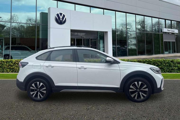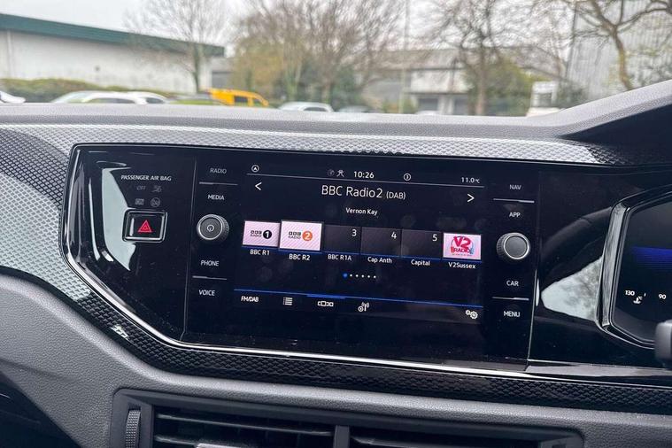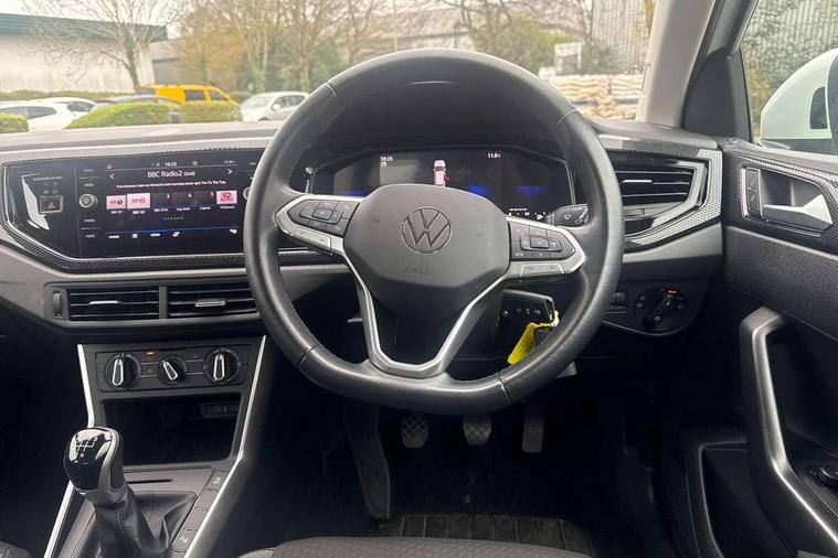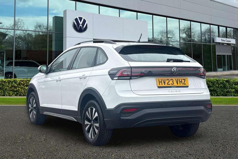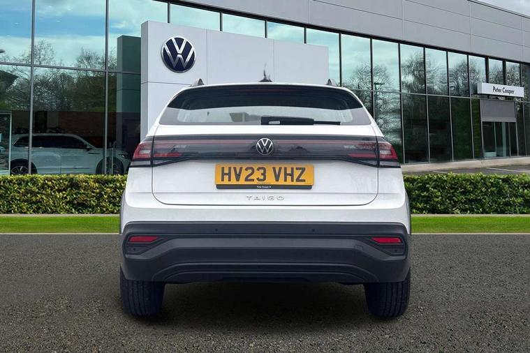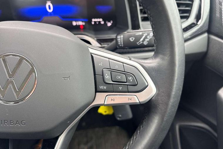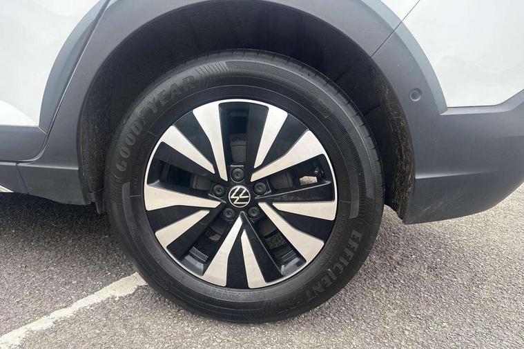 Driver alert system, e-Call (emergency call), Power Steering, Travel assist including emergency assist, Washer fluid level indicator, Wireless Charging including Bluetooth, Start-stop system with battery regeneration (recuperation - energy recovery during braking), WeConnect plus, Ambient lighting with logo projection, Aspherical driver's exterior mirror, Auto headlights, Body coloured bumpers, Body coloured exterior mirror housings and door handles, Electric windows, External USB type C socket and charging sockets, Front fog lamps with cornering function, Headlight range control, Heat insulating glass windscreen, LED headlamps, LED rear combination lamp, LED third brake light, Left convex exterior mirror, Power folding adjustable/heated exterior mirrors and front passenger exterior mirror lowering function, Rear fog light on one side, reversing light on both sides, Rear side wing doors, Rear wash/wipe with intermittent wipe setting, 'Slash/ Austin' Cloth upholstery, 12V socket in centre console, 2 front reading lights, 3 rear head restraints, 3 seat bench in 2nd row, Black carpets, Child seat anchor for child seat system i-Size, 2x top tether and child seat anchor in front on front passenger side, Door and side trim panels in titan black, Driver and front passenger seat height adjustment, Front centre armrest, Handbrake lever handle in leather, Height and reach adjustable steering wheel, Leather trimmed gear knob, Leather wrapped multifunction steering wheel, Luggage compartment floor, Luggage compartment light, Lumbar support for driver's and front passengers seat, Seat covers in titanium black, Single front passenger seat, Split folding backrest with centre armrest and unsplit rear seat bench, Storage compartment under front seats, Sun visors with illuminated vanity mirrors, Chrome Package - Taigo, Drivers assistance pack - Taigo, Light and Sight pack including High beam assist - Taigo, 2 x 3-point seatbelts/outer rear seats with ECE label, 3-point seat belts in front with pretensioner and height adjustment, 3-point seatbelt for centre rear seat, Driver and front passenger airbags with front passenger airbag de-activation, front side and curtain airbags, Driver and front passenger safety-optimised head restraints, Electronic stability control, Extended and predictive pedestrian/ cyclist protection, Front and rear disc brakes, Front curtain and side airbags with center airbag, Hill start assist, Manual rear child locks, Single tone horn, Tyre pressure loss indicator, Anti-theft alarm system with interior monitoring, backup horn, and towing protection, Anti-theft wheel bolts, Lava stone black gloss/matt decorative inserts in dash and front door panels, Low rolling resistance tyres,